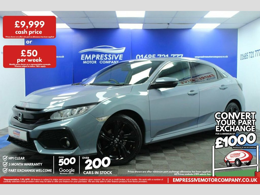 ****CRACKING CIVIC**** Just in! This Stunning 2018 HONDA CIVIC 1.0 VTEC Turbo SR Hatchback 5dr Petrol Manual Euro 6 (s/s) (126 ps) Finished In Grey! 72,698 miles - 1.0L petrol - 6 speed manual - Insurance group 15 - Up to 68 mpg - 17" gloss black wheels - Reverse camera - Parking sensors - Auto headlights - Touch media screen with sat nav - Bluetooth connectivity - USB - Start stop - Eco mode - Electric handbrake - Voice control - Adaptive Cruise control - Speed limiter - Lane assist - Auto wipers - Traction control - Electric folding mirrors 17in Alloy Wheels, 2x USB Jack and HDMI Jack, ABS - Anti Lock Braking System, Accessory Socket - Front, Accessory Socket - Rear, Airbag - Front Side, Airbag - Passenger SRS with Cut Off Swit, Alloy Pedals, Ambient Lighting, Black Grille, Bluetooth Hands Free Telephone - HFT, Brake Assist, Centre Console with Sliding Armrest and , Chrome Window Garnish Surround, Climate Control Dual Auto Air Conditioni, Collision Mitigation Braking System - CM, Courtesy Light - Front and Rear, Daytime Running Lights - LED, Deflation Warning System - DWS - Indirec, Digital Audio Broadcast - DAB, Door Handles - Body Coloured, Door Mirrors - Body Coloured with Integr, Door Mirrors - Electric-Retractable, Driver
