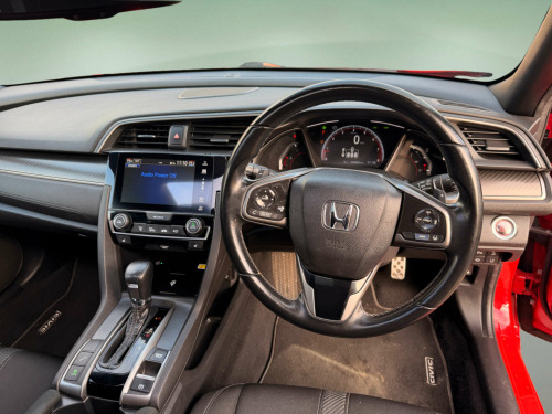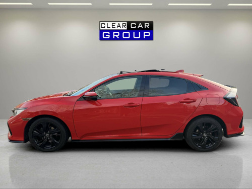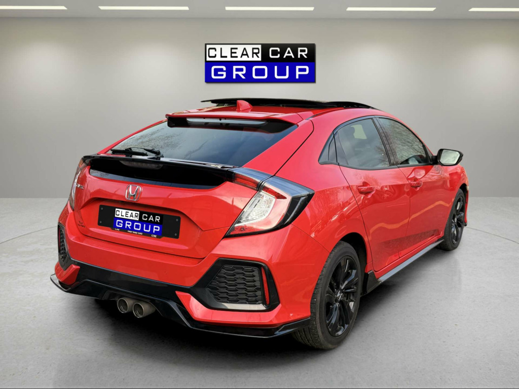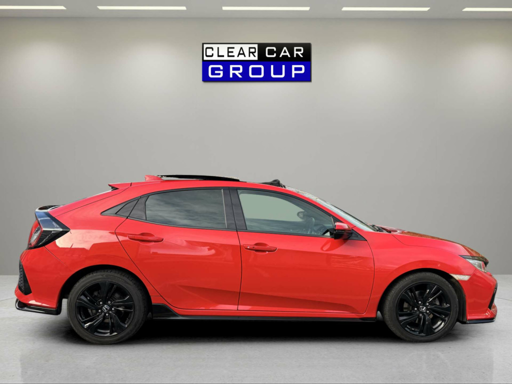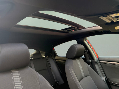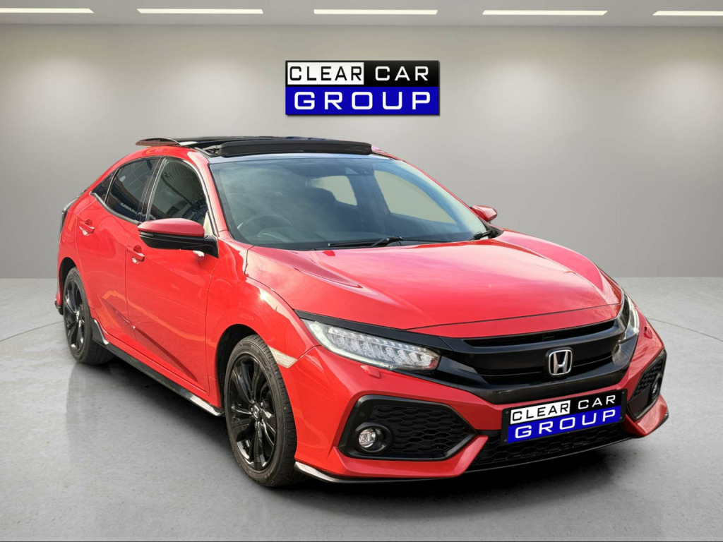 Clear Car Group Are Proud To Present A Stunning Example Of The 2019 (19) Honda Civic 1.5 VTEC Turbo GPF Sport Plus Hatchback 5Dr Petrol Euro 6 (S/S) (182 Ps) Edition, Finished In Red With a Rare Panoramic Glass Roof, Covered an Easy 78,000 Miles Accompanied By A Full Service History, Just Been Fully Serviced And Supplied With 12 Months MOT, Only 2 Previous Owners Fom New.Contrasting Sport Plus Styling, This Civic Combines Strong Performance, Massive Spec Accompanied With Hondas Known Reliability. It's The Desirable 1.5 VTEC Turbo GPF Sport Plus With An Automatic Gearbox, Giving Brisk Performance With Around 8.4 Seconds 0-62 Mph And Combined Economy Of About 42.2 Mpg, While Being Euro 6 Compliant.High Sport Plus Spec Including: Panoramic Glass Roof With Tilt/Slide Function And Interior Blind, 17'' Gloss Black Alloy Wheels,Body Kit, Dual Exhaust, Black Grille And Window Surrounds, Privacy Glass And Rear Spoiler, LED Headlights With High?Beam Assist+ LED Daytime Running Lights +LED Front Fog Lights, Front And Rear Parking Sensors And Reverse Camera Assistor Easy, Honda Connect 7'' Touchscreen Infotainment With Navigation, DAB, Bluetooth, USB, Smartphone Integration And Steering?Wheel Audio Controls, Dual?Zone Climate Control, Auto?Dimming Rear?View Mirror, Electric Folding Heated Mirrors, Keyless Entry And Start, Electronic Parking Brake With Auto?Hold, Heated Front Seats, Sports Interior With Cloth Upholstery, Leather Steering Wheel And Gear Knob, Ambient Interior Lighting, Honda Sensing Safety Pack: Collision Mitigation Braking, Lane Keep Assist, Lane Departure Warning, Adaptive Cruise Control, Traffic Sign Recognition, Road Departure Mitigation, Tyre Deflation Warning, Multiple Airbags This Is A Well?Looked?After, High?Spec Automatic Civic That's Ready To Drive Away Today!! in alloy wheels, 2x usb jack and hdmi jack, abs - anti lock braking system, accessory socket - front, accessory socket - rear, adaptive damper system - front and rear, airbag - front side, airbag - passenger srs with cut off switch, alloy pedals, ambient lighting, auto dimming rear view mirror, black grille, blind spot information, bluetooth hands free telephone - hft, brake assist, centre console with sliding armrest and storage compartment, centre dual exhaust with finisher, climate control dual auto air conditioning, collision mitigation braking system - cmbs, courtesy light - front and rear, daytime running lights - led, deflation warning system - dws - indirect tyre pressure monitoring system, digital audio broadcast - dab, door handles - body coloured, door mirrors - body coloured with integrated indicator, door mirrors - electric-retractable, driver information interface with colour display, driver seat manual height adjustment, driver seat power lumbar adjustment, driver i-srs airbag, drivers seat back pocket, ebd - electronic brakeforce distribution, econ mode, electric power steering with variable ratio, electric windows - dr-as one touch up-down, electric windows - remote key fob, electronic parking brake with automatic brake hold, emergency stop signal, exterior sport garnish - front-rear-side sill, forward collision warning - fcw, front fog lights - led, front map light, front seat belts with 2 stage emergency locking retractor - elr, front seats - heated, fuel filler - capless, glass roof - opening, glove box light, headlights - auto on-off timer - coming-leaving home function, headlights - dusk sensor, headlights - washers, high beam support system - hss, high mount brake light, high power audio - 11 speakers, hill start assist - hsa, honda connect with garmin navigation, isofix points - outer rear seats, immobiliser system, intelligent adaptive cruise control, intelligent speed limiter, led headlights, lane departure warning - ldw, lane keep assist system, leather shift knob, low speed following, multiplex meter red illumination, paddle shift, parking sensors - front and rear, passenger seat back pocket, piano black window garnish surround, power windows - front and rear, privacy glass, rr one touch power window up-down, rain sensing windscreen wipers, rear parking camera, rear seat armrest with cupholder, rear seat belts with emergency locking retractor - elr, rear wiper - intermittent, remote retractable door mirrors, road departure mitigation, seats - passengers power lumbar adjustment, security alarm system, selectable door unlock, shark fin antenna, shift indicator light, side curtain airbags, smart entry and start, steering wheel - leather, steering wheel - remote audio controls, steering wheel - tilt and telescopic adjustment, sunvisor vanity mirrors with illumination, super locking, tonneau cover, traffic sign recognition system, trunk cargo hook x4, trunk light, tyre repair kit, ultrasonic sensor, vsa - vehicle stability assist, whiplash lessening front headrests, wireless charging