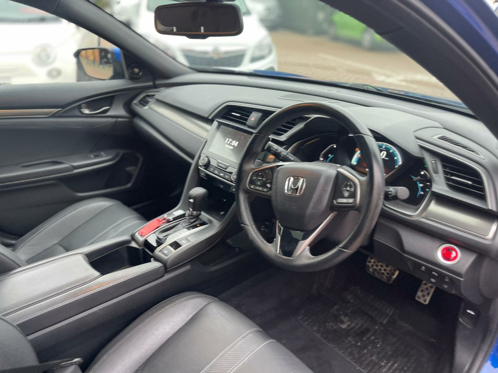 This 2018 Honda Civic VTEC Turbo Prestige offers a compelling blend of performance and advanced technology.  Powered by a 1.5 litre petrol engine, this Euro 6 compliant model delivers an impressive 0-62mph in just 8.5 seconds, showcasing its dynamic capabilities.  The Prestige trim level ensures a premium experience, featuring sophisticated LED headlights for enhanced visibility and dual zone automatic climate control to keep all occupants comfortable.  Practicality is also a strong suit, with generous boot space designed to accommodate your needs, and the convenience of wireless phone charging and heated front seats adding to the refined driving environment.Beyond its impressive acceleration, this Honda Civic Prestige stands out with its advanced safety features, including Blind Spot Information with Blind Spot Assistance, providing an extra layer of awareness on the road. These notable features, combined with the efficient 1.5L VTEC Turbo engine and spacious interior, demonstrate how this vehicle offers a superior driving experience compared to others in its class. in alloy wheels, 2x usb jack and hdmi jack, abs - anti lock braking system, accessory socket - front, accessory socket - rear, adaptive damper system - front and rear, airbag - front side, airbag - passenger srs with cut off switch, alloy pedals, ambient lighting, auto dimming rear view mirror, blind spot information, bluetooth hands free telephone - hft, brake assist, centre console with sliding armrest and storage compartment, chrome grille, chrome window garnish surround, climate control dual auto air conditioning, collision mitigation braking system - cmbs, courtesy light - front and rear, daytime running lights - led, deflation warning system - dws - indirect tyre pressure monitoring system, digital audio broadcast - dab, door handles - chrome, door mirrors - body coloured with integrated indicator, door mirrors - electric-retractable, driver information interface with colour display, driver seat manual height adjustment, driver seat power lumbar adjustment, driver i-srs airbag, drivers seat back pocket, ebd - electronic brakeforce distribution, econ mode, electric power steering with variable ratio, electric windows - dr-as one touch up-down, electric windows - remote key fob, electronic parking brake with automatic brake hold, emergency stop signal, forward collision warning - fcw, front fog lights - led, front map light, front seat belts with 2 stage emergency locking retractor - elr, front seats - heated, fuel filler - capless, glass roof - opening, glove box light, headlights - auto on-off timer - coming-leaving home function, headlights - dusk sensor, headlights - washers, high beam support system - hss, high mount brake light, high power audio - 11 speakers, hill start assist - hsa, honda connect with garmin navigation, isofix points - outer rear seats, immobiliser system, intelligent adaptive cruise control, intelligent speed limiter, led headlights, lane departure warning - ldw, lane keep assist system, leather shift knob, low speed following, multiplex meter blue illumination, paddle shift, parking sensors - front and rear, passenger seat back pocket, power windows - front and rear, privacy glass, rr one touch power window up-down, rain sensing windscreen wipers, rear heated seats, rear parking camera, rear seat armrest with cupholder, rear seat belts with emergency locking retractor - elr, rear wiper - intermittent, remote retractable door mirrors, road departure mitigation, seats - passengers power lumbar adjustment, security alarm system, selectable door unlock, shark fin antenna, shift indicator light, side curtain airbags, smart entry and start, steering wheel - leather, steering wheel - remote audio controls, steering wheel - tilt and telescopic adjustment, sunvisor vanity mirrors with illumination, super locking, tonneau cover, traffic sign recognition system, trunk cargo hook x4, trunk light, tyre repair kit, ultrasonic sensor, vsa - vehicle stability assist, whiplash lessening front headrests, wireless charging