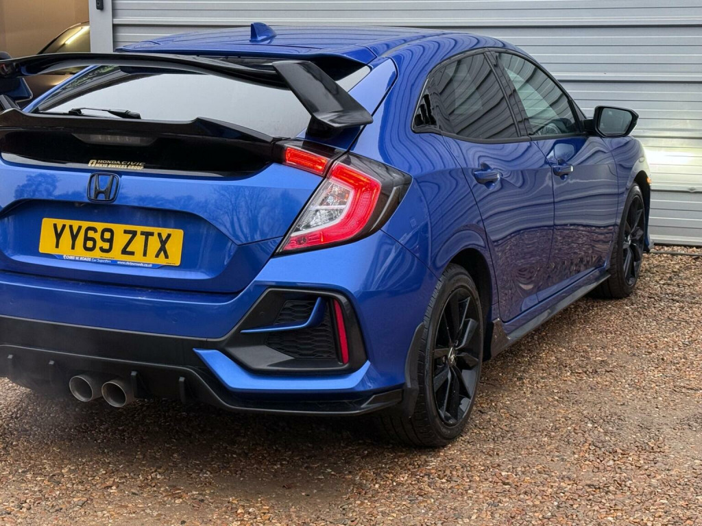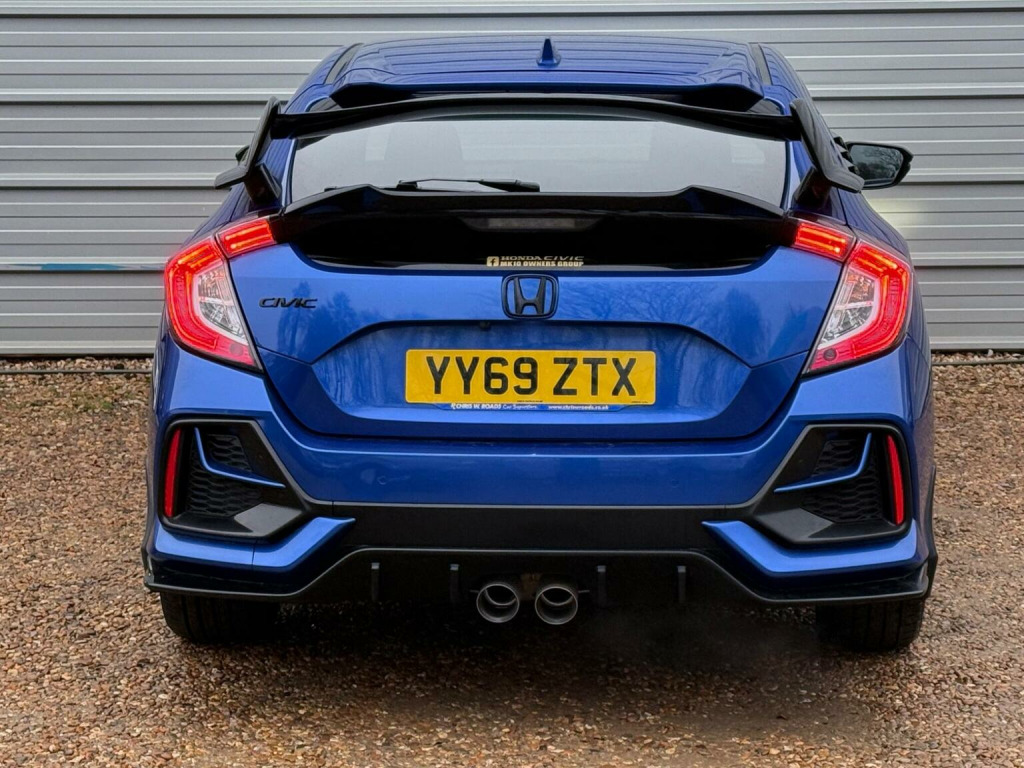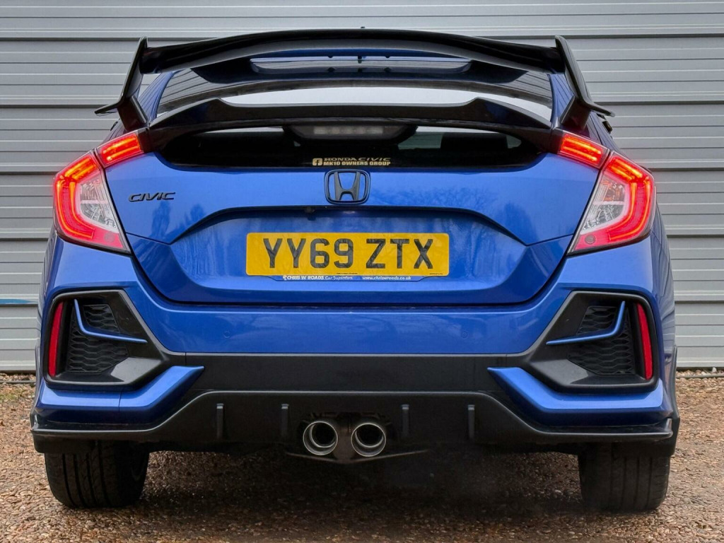 Over £2000 of options and Just 2 pre owners serviced at HONDA 11K,21K,36K,48K,55K just arrived Fitted with Earth Dreams Technology V TECH Turbo tuned by Blue Spark automotive and sounding awsome with the Cobra Venom rear pipe plus finishing the look is the Mugen Rear Spoiler , 2 keys tool kit book pack and spare tyre. packed with latest Honda tech and loaded with Nav Dab Media cruise lane detection, Turbo Gauge , rear sensors , blue light interior the list goes on serviced at Honda plus This 2020 Honda Civic VTEC Turbo Sport is a Euro 6 compliant model, offering a blend of efficiency and performance. Powered by a 1.5 litre petrol engine, this Sport trim Civic is equipped with front and rear parking sensors, including parking assistance for both front and rear, and a rear parking camera to aid manoeuvrability. Intelligent Adaptive Cruise Control, which includes adaptive cruise control, helps manage your speed on longer journeys, while automatic LED headlights ensure optimal visibility in varying light conditions. The Civic VTEC Turbo Sport boasts an impressive 0-62mph acceleration time of just 8.2 seconds, demonstrating its dynamic capabilities. This performance, combined with its generous boot space, sets it apart from other vehicles in its class. The inclusion of features like parking assistance and automatic headlights further enhances the driving experience, making this Honda Civic a practical and enjoyable choice.