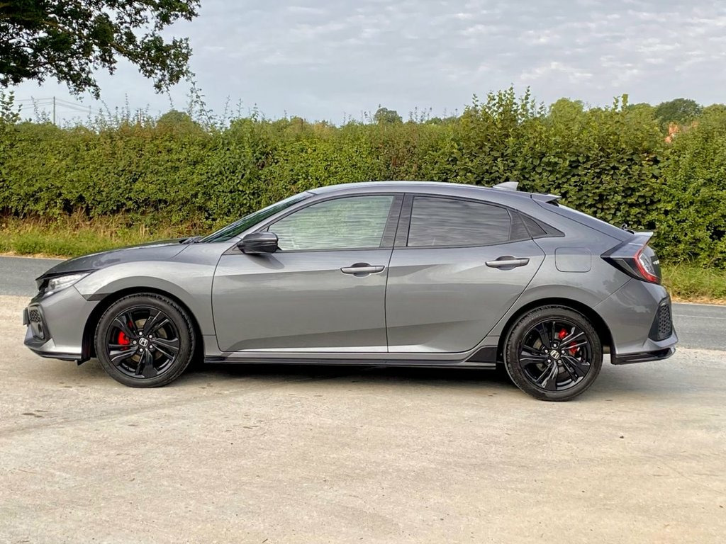Carvender is presenting The 2017 Honda Civic 1.5 VTEC Turbo Sport 5dr. The 2017 Civic is a compact hatchback that harmonises efficient performance with a sleek and modern design. This Civic is powered by 1.5 litre VTEC Turbo charged engine which delivers a spirited drive with 182 brake horsepower. This Honda Civic is very sleek and sexy from its bold front grill, Black Alloy Wheels to Red Callipers every aspect exudes sophistication, The Honda Civic is equipped with the Sport trim level and comes loaded with comfort and convenience features including Reversing Camera, Rear & Front Parking Sensors, Adaptive Cruise Control, Lane Departure Warning, Advance Collision Warning, Navigation System, Dual Climate Control, User Friendly Information System, Phone Connectivity and much more. This Honda Civic is in pristine condition and has been looked after very well. We have 4 Honda Main Dealer Services in the file which have been carried out at the mileages of 6682, 18943, 35550 and 53210 on 30/07/2025. Do not miss on the opportunity to own this beautiful car. Contact us today to schedule a test drive or visit our website for home delivery with 14 days money back guaranty. 17in Alloy Wheels, 2x USB Jack and HDMI Jack, ABS - Anti Lock Braking System, Accessory Socket - Front, Accessory Socket - Rear, Adaptive Cruise Control, Airbag - Front Side, Airbag - Passenger SRS with Cut Off Swit, Alloy Pedals, Ambient Lighting, Black Grille, Bluetooth Hands Free Telephone - HFT, Brake Assist, Centre Console with Sliding Armrest and , Centre Dual Exhaust with Finisher, Climate Control Dual Auto Air Conditioni, Collision Mitigation Braking System - CM, Courtesy Light - Front and Rear, Daytime Running Lights - LED, Deflate Warning System - DWS, Digital Audio Broadcast - DAB, Door Handles - Body Coloured, Door Mirrors - Body Coloured with Integr, Door Mirrors - Electric-Retr