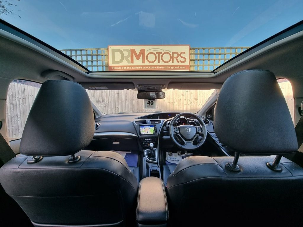 HONDA CIVIC 1.6 i-DTEC SR Hatchback 5dr Diesel – February Special Offer - 18 Months Nationwide Gold Warranty This Honda Civic 1.6 i-DTEC SR Hatchback is an excellent example and comes with 18 months nationwide Gold Warranty included in the price as part of our February Special Offer. With just £20 a year road tax, 1 former keeper from new, and ULEZ compliance, this car offers outstanding value and very low running costs. It is extremely clean inside and out, and the first person to see it will buy. The vehicle is well equipped with satellite navigation, rear parking camera, front and rear parking sensors, panoramic sunroof, heated leather seats, Bluetooth handsfree, cruise control, DAB radio, USB/AUX connectivity, privacy glass, and 16-inch alloy wheels. Supplied with 2 keys and an MOT valid until January 2027, this Civic is very fuel-efficient, practical, and benefits from a spacious boot, making it ideal for both daily driving and longer journeys. Finished in a lovely colour combination, it is in superb condition and represents excellent value for money. All our vehicles are Experian HPI clear and sold with a nationwide 6-month Gold Warranty, with the option to upgrade to a 1-year Gold Warranty for £399 or a 2-year Gold Warranty for £599. A £149 administration fee applies to every vehicle in addition to the advertised price. Debit cards are accepted, part exchange is welcome, and finance options are available—please call us for further Brilliant Sporty Blue, 16in Alloy Wheels, 2x USB Jack and HDMI Jack, ABS - Anti Lock Braking System, Accessory Socket - Front, Accessory Socket - Instrument Panel, Accessory Socket - Luggage Compartment, Aha - App Integration, Airbag - Front Side, Airbag - Passenger Cut Off Switch, Airbag - Passenger SRS with Cut Off Swit, Alarm System, Alloy Pedals, Ambient Lighting, Auto Dimming Rear View Mirror, Bluetooth Hands Free Telephone - HFT, Brake Assist, CD-Radio, CONNECT, City Brake Active System - CTBA, Climate Control - Dual Zone, Courtesy Light - Front and Rear, Cruise Control, Cupholder, Daytime Running Lights - LED, Deflate Warning System - DWS, Digital Audio Broadcast - DAB, Door Mirrors -