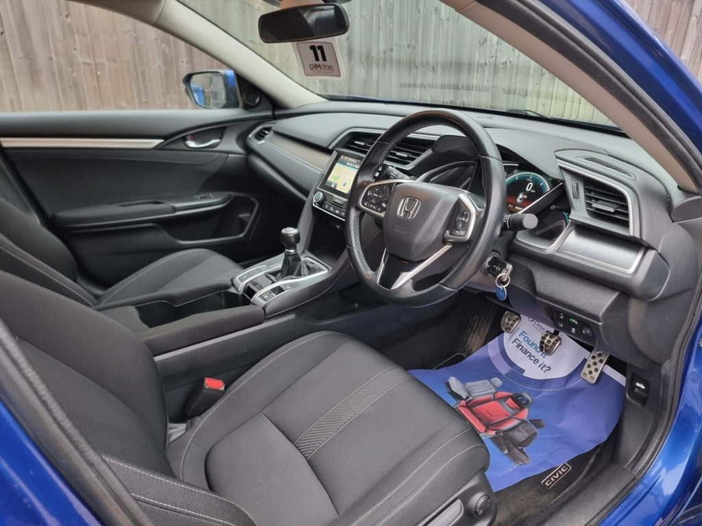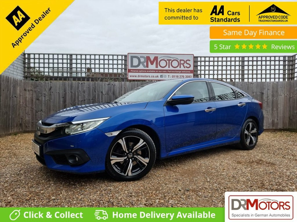 The Honda Civic 1.6 i-DTEC SR Saloon 4dr Diesel is now available with our February Special Offer, which includes an 18 Months Nationwide Gold Warranty in the price, giving you total peace of mind from day one. This car has had just one former keeper from new and has a full service history with 7 services. It is ULEZ compliant, and is presented in very clean condition both inside and out – the first to see will buy. This Civic offers an excellent specification including built-in satellite navigation, rear parking camera, front and rear parking sensors, Bluetooth handsfree connectivity, DAB radio, USB and AUX connection, cruise control and stylish 17 inch alloy wheels. It comes with two keys and a long MOT until February 2027. With its highly efficient 1.6 i-DTEC diesel engine, it delivers impressive fuel economy and low running costs, making it an ideal choice for both commuting and longer journeys. The 4 door saloon design provides generous boot space, a lovely colour combination and overall excellent value for money. We have over 150 DR Approved used cars on site and are proud winners of the CarGurus Top Rated Dealer Award in 2020, 2021 and 2022. Debit cards are accepted and every vehicle carries an added administration charge of £149 in addition to the vehicle price. Pay now and drive away with your new car today. All our vehicles are fully Experian HPI clear and part exchange is welcome. Gold Warranty, with the option to upgrade to a 1 year Gold Warranty for Brilliant Sporty Blue, 17in Alloy Wheels, 2x USB Jack and HDMI Jack, ABS - Anti Lock Braking System, Accessory Socket - Front, Airbag - Front Side, Airbag - Passenger SRS with Cut Off Swit, Airbag - Side Curtain - Front and Rear, Alloy Pedals, Ambient Lighting, BA - Brake Assist, Bluetooth Hands Free Telephone - HFT, Centre Console with Sliding Armrest and , Chrome Grille, Chrome Window Garnish Surround, Climate Control Dual Auto Air Conditioni, Collision Mitigation Braking System - CM, Courtesy Light - Front and Rear, Daytime Running Lights - LED, Deflation Warning System - DWS - Indirec, Digital Audio Broadcast - DAB, Door Handles - Chrome, Door Mirrors - Body Coloured with Integr, Driver