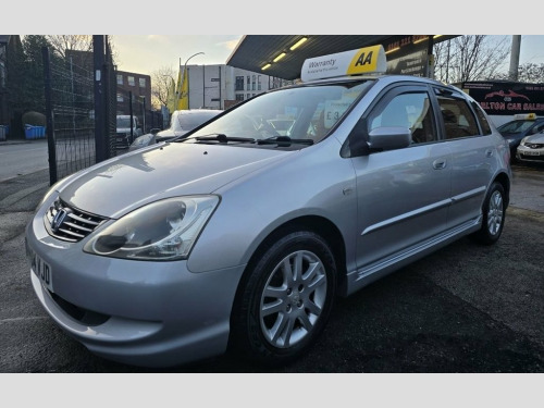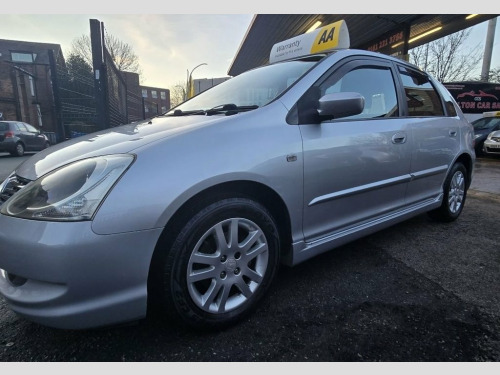 Here we have for sale a lovely 2004 honda civic automatic in a lovely metallic silver. It is the small 1.6L petrol engine which is great for new or first drivers as they are cheap to insure and very economical to run. It also has the fully automatic transmission which is renowned for its reliability and strength. It has covered very low mileage for its age of just over 65000 miles backed by a comprehensive service history consisting of 12 service stamps. It will come with a full 12month mot with no advisories and a full service from ourselves upon purchase. Very clean car both cosmetically and mechanically. First to see will buy. Here at chorlton car sales we strive to deliver 100% customer satisfaction to all our customers therefore we offer a full 3month aa warranty for complete piece of mind. Extended warranty is available by the reputable aa warranties for up to 12months as we are approved dealers for them. They are the uks number one warranty company. We are now proudly part of the aa dealer promise as aa approved dealers which means you can buy through us with complete confidence. Delivery available. 5day driveaway insurance available.12month aa breakdown cover with all vehicles. All major cards accepted. All forms of payment accepted. Open 7days a week. Metallic Paint, Adjustable Steering Column/Wheel, Air Bag Driver, Air Bag Passenger, Air Bag Side, Air-Conditioning, Alarm, Alloy Wheels (15in), Anti-Lock Brakes, Body Coloured Bumpers, Central Door Locking, Centre Rear Seat Belt, Deadlocks, Electric Windows (Front/Rear), Head Restraints, Immobiliser, In Car Entertainment (Radio/Cassette), Mirrors External, Power Socket, Power-Assisted Steering, Seat Height Adjustment, Spare Wheel (Steel), Speakers, Sunroof Electric, Upholstery Cloth