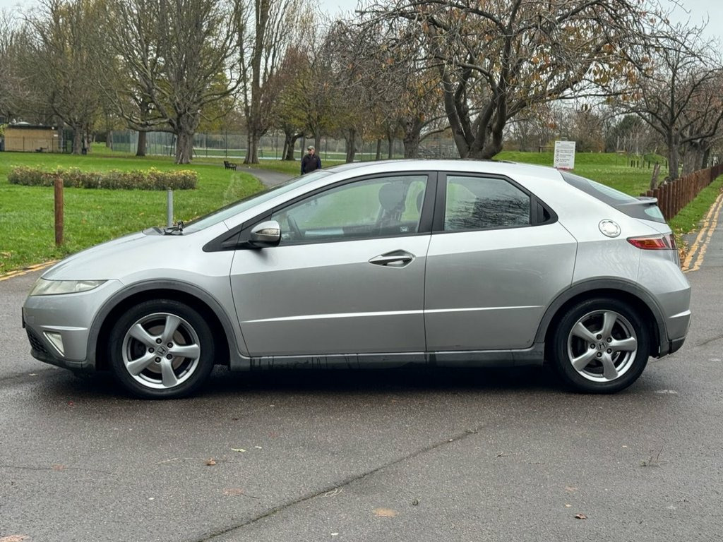 Honda Civic 1.8 i-VTEC ES finished in silver with just 72,000 miles. Smooth and reliable 1.8 petrol engine with the i-Shift gearbox, economical to run and cheap to maintain. Well cared for example with clean bodywork, comfortable interior, and a spacious hatchback design. Comes with ES specification including alloy wheels, panoramic windscreen, and remote locking. A practical, reliable and affordable Honda ideal for everyday use. Adjustable Steering Column/Wheel, Air Bag Driver, Air Bag Passenger, Air Bag Side, Alarm, Alloy Wheels (16in), Anti-Lock Brakes, Armrest, Body Coloured Bumpers, Central Door Locking, Centre Rear Seat Belt, Climate Control, Cruise Control, Deadlocks, Electric Windows (Front/Rear), Electronic Stability Programme, Front Fog Lights, Head Restraints, Immobiliser, In Car Entertainment (Radio/CD), Mirrors External, Power Socket, Power-Assisted Steering, Seat - ISOFIX Anchorage Point, Seat Height Adjustment, Side Protection Mouldings, Speakers, Steering Wheel Mounted Controls (Audio), Upholstery Cloth
