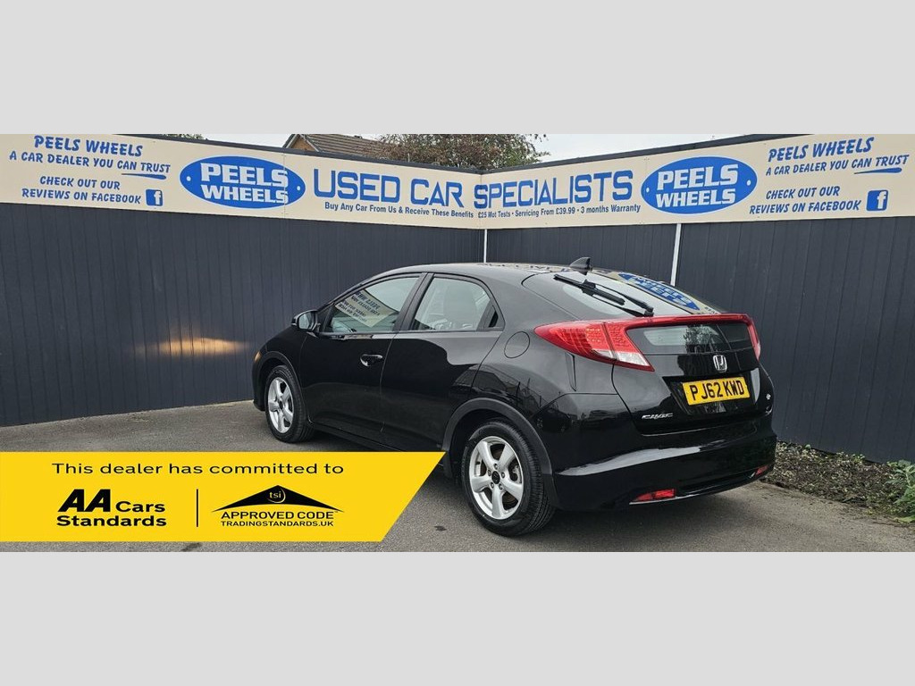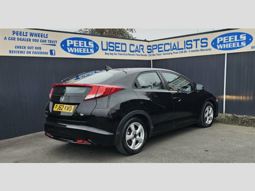 2012 (62) Honda Civic * Black Edition, 1.8 i-VTEC SE-T Hatchback, 5 Door, Petrol, 6 Speed Manual Euro 5 (s/s) (142 ps Edition) 3 Months Free Warranty, Great Spec, Electric Windows And Mirrors, Air Conditioning, Satnav, Alloy Wheels Fitted, Heated Wing Mirrors, Dim Dial Dash Board, USB/AUX, 12v Socket Points, Economical Mode, Push Button Start, Insurance Group 16, 2x Keys, Complete Full Service History From New, Just Been Serviced By Us, New Brakes Fitted, Near New Tyres Fitted All Round, M.o.t July 2026, Only 1 Former Keeper, Part Exchange Welcome, Test Drive Are All Welcome, Come And View Today, Finance Available, See Our Links below To Apply, Fully Cleaned, All Ready To Drive Home Today, 93,000 Miles, Perfect Family Car With Great Boot Space, Credit And Debit Cards All Welcome, ** WE ALSO OFFER DELIVERY ALL OVER THE U.K ON ALL CARS ** CHECK OUT ALL OUR REVIEWS ON FACEBOOK AND GOOGLE, SEARCH:- PEELS WHEELS MORECAMBE READY TO DRIVE AWAY SAME DAY, CHECK OUT OUR REVIEWS ONLINE, GREAT PRICES OFFERED ON PART EXCHANGE, Apply Here For Finance:- https://choosemycar.com/dealer-form/1614272833 OR HERE https://www.firstresponsefinance.co.uk/get-a-quote To view our full stock list please visit our website MORE CARS ARE ON THERE. www.peelswheelsusedcarspecialists.co.uk, Call us today - 07933719171, Come see us - PEELS WHEELS, MORECAMBE, LA33AY 16in Alloy Wheels, 1CD Tuner - MP3 Compatible, ABS - Anti Lock Braking System, Accessory Socket - Centre Console, Accessory Socket - Instrument Panel, Airbag - Front Side, Airbag - Passenger SRS with Cut Off Swit, Alarm System, Aux Socket, Brake Assist, Climate Control Auto Air Conditioning, Courtesy Light - Front and Rear, Daytime Running Lights - LED, Driver Seat Manual Height Adjustment, Driver i-SRS Airbag, Dust and Pollen Filter, EBD - Electronic Brakeforce Distribution, Electric Adjustable and Heated Door Mirr, Electric Windows - Front One Touch Up-Do, Electric Windows - Front and Rear, Emergency Stop Signal, Front Map Light, Front Seat Belts with 2 Stage Emergency , Glove Box Light, H