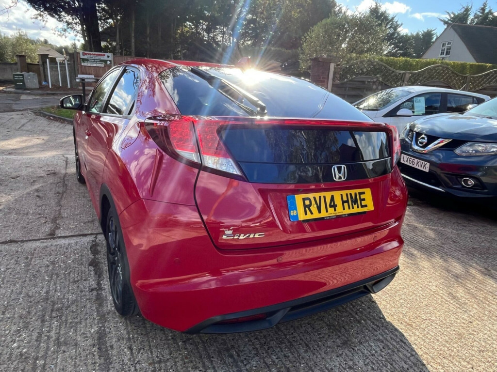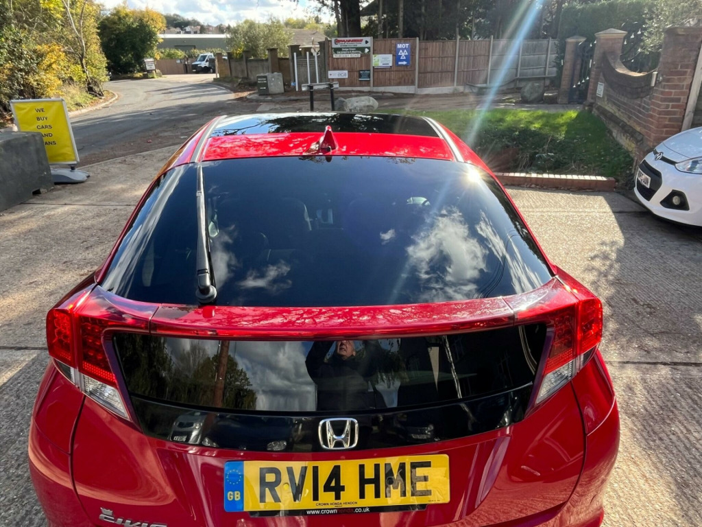CHECK OUT OUR WEBSITE FOR MORE QUALITY USED CARS AT FANTASTIC PRICES!!! www.leavalleymotorcompany.co.uk RESERVE AND COLLECT OR ASK ABOUT OUR NATIONWIDE DELIVERY SERVICE! PLEASE CALL 0203 641 6239 FOR FURTHER DETAILS.SEE OUR AMAZING REVIEWS HERE: https://www.leavalleymotorcompany.co.uk/reviewsThis 2014 Honda Civic i VTEC SR boasts an exceptionally low mileage of just 49,000 miles, a significant advantage for a vehicle of its age. It features a reliable 1.8 litre petrol engine and comes with a 3 month warranty for your peace of mind. The MOT is valid until March 2026, and the car benefits from a full service history, with the last service completed on 13 March 2025. A clear vehicle history check confirms its sound background.The Civic SR trim level offers a range of desirable features, including a panoramic glass roof with a fixed sunroof, a rear parking camera, and front parking sensors to aid manoeuvrability. Inside, you'll appreciate the dual zone climate control for personalised comfort and Bluetooth hands free telephone for seamless connectivity. Its large boot space provides ample room for luggage or shopping, and its low insurance group rating makes it an economical choice for many drivers, indicating it offers better value and lower running costs compared to similar vehicles.WHY NOT BOOK A TEST DRIVE TODAY AND DRIVE IT AWAY WITH INSTANT NO DEPOSIT FINANCE AND OUR OWN FREE 90 DAYS WARRANTY!! FREE PEACE OF MIND!!! EXTENDED WARRANTIES AVAILABE  FROM JUST £199!!!  SEE OUR AMAZING REVIEWS HERE: https://www.leavalleymotorcompany.co.uk/reviewsYOU CAN CHECK OUT OUR EXTREMELY COMPETETIVE FINANCE RATES AND ALSO MAKE AN APPLICATION THROUGH OUR WEBSITE: www.leavalleymotorcompany.co.uk. FOR IMMEDIATE ASSISTANCE PLEASE CALL OUR SALES TEAM ON 0203 641 6239.PHONE LINES ARE OPEN UNTILL 8PM. WE HAVE AN OPEN SITE SO CUSTOMERS ARE WELCOME TO VIEW CARS WITHOUT AN APPOINTMENT BUT THERE MAY NOT BE A SALESPERSON IN ATTENDANCE. WE STRONGLY RECOMMEND CUSTOMERS TO CHECK IF A SPECIFIC VEHICLE IS ON SITE BEFORE TRAVELLING.A FAMILY BUSINESS ESTABLISHED 1985!. 17in Alloy Wheels, ABS - Anti Lock Braking System, Accessory Socket - Centre Console, Accessory Socket - Front, Accessory Socket - Luggage Compartment, Airbag - Front Side, Airbag - Passenger Cut Off Switch, Airbag - Passenger SRS, Alarm System, Alloy Pedals, Auto Dimming Rear View Mirror, Aux Socket, Bluetooth Hands Free Telephone - HFT, Brake Assist, Climate Control - Dual Zone, Courtesy Light - Front and Rear, Cruise Control, Daytime Running Lights - LED, Deflate Warning System - DWS, Digital Audio Broadcast - DAB+, Door Mirrors - Electric-Retractable, Driver Seat Manual Height Adjustment, Driver i-SRS Airbag, Dust and Pollen Filter, EBD - Electronic Brakeforce Distribution, Electric Windows - Front and Rear - Front One Touch Up-Down, Electric Windows - Remote Key Fob, Emergency Stop Signal, Front Fog Lights, Front Map Light, Front Seats - Heated, Glove Box Light, Halogen Headlights, Headlights - Coming-Leaving Home Function, Headlights - Dusk Sensor, High Mount Brake Light, Hill Start Assist - HSA, ISOFIX Points, Immobiliser System, Intelligent Multi Info Display - i-MID, Multiplex Meter Blue Illumination, Paddle Shift, Panoramic Glass Roof, Parking Sensors - Front, Parking Sensors - Rear, Passenger Seat Back Pocket, Power Assisted Steering - Electric, Premium Audio MP3 Compatible with Subwoofer, Rain Sensing Windscreen Wipers, Rear Armrest, Rear Parking Camera, Rear Wiper, Remote Central Locking with 2 Jack Knife Keys, Remote Retractable Door Mirrors, Satellite Navigation - HDD, Seats - Magic Flexibility System, Selectable Door Unlock, Shark Fin Antenna, Shift Indicator Light, Side Curtain Airbags, Speakers x7, Speed Limiter, Steering Wheel - Leather, Steering Wheel - Remote Audio Controls, Steering Wheel - Tilt and Telescopic Adjustment, Sub Trunk, Subwoofer, Sunvisor Vanity Mirrors with Illumination, Super Locking, Tailgate Windows Tinted, Traction Control integrated with VSA, Trunk Cargo Hook, Trunk Light, Tyre Repair Kit, USB Jack - iPod Compatible, Ultrasonic Sensor, VSA - Vehicle Stability Assist, Video Jack, Whiplash Lessening Front Headrests. Full service history