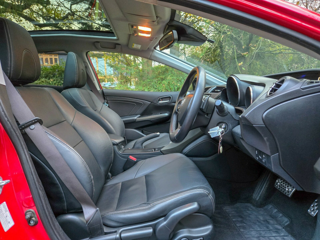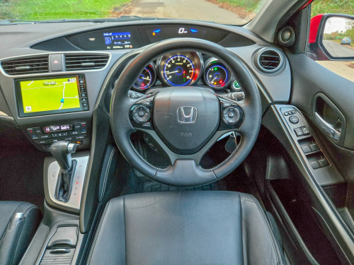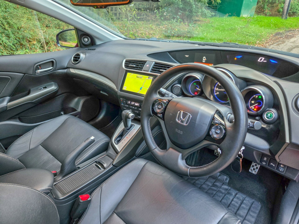 This 2015 Honda Civic 1.8 i-VTEC SR Hatchback with 75000 miles is a reliable and efficient vehicle that is ULEZ compliant. With a petrol engine and automatic transmission, it offers a smooth and responsive driving experience, while also being practical with 5 seats and 5 doors. The MOT expires on 28/05/2026, providing peace of mind for the next few years. This hatchback comes equipped with 17in Alloy Wheels, Electric-Retractable Door Mirrors, and a Glass Roof, enhancing both its style and functionality. Electric Windows controlled by a remote key fob add convenience, and the inclusion of both front and rear windows ensures a comfortable cabin environment. Overall, this Honda Civic offers a great combination of performance, features, and longevity, making it a compelling choice for those in need of a dependable and spacious vehicle., in alloy wheels, door mirrors - electric-retractable, electric windows - front and rear, electric windows - remote key fob, glass roof, keyless tailgate unlock function, privacy glass, tyre repair kit, 2x usb jack and hdmi jack, accessory socket - front, accessory socket - instrument panel, accessory socket - luggage compartment, aha - app integration, bluetooth hands free telephone - hft, cd-radio, connect, digital audio broadcast - dab, intelligent multi info display - i-mid, internet browsing, internet radio, satellite navigation - garmin, shark fin antenna, speakers x8, touchscreen 7in, abs - anti lock braking system, airbag - front side, airbag - passenger cut off switch, airbag - passenger srs with cut off switch, alarm system, brake assist, city brake active system - ctba, driver i-srs airbag, ebd - electronic brakeforce distribution, emergency stop signal, hill start assist - hsa, isofix points, immobiliser system, remote central locking with 2 jack knife keys, side curtain airbags, super locking, traction control, ultrasonic sensor, vsa - vehicle stability assist, alloy pedals, ambient lighting, auto dimming rear view mirror, climate control - dual zone, courtesy light - front and rear, cupholder, driver seat manual height adjustment, driver seat power lumbar adjustment, front map light, front seats - heated, leather shift knob, multiplex meter blue illumination, paddle shift, passenger seat back pocket, rain sensing windscreen wipers, rear armrest, remote retractable door mirrors, seats - magic flexibility system, selectable door unlock, steering wheel - leather, steering wheel - remote audio controls, steering wheel - tilt and telescopic adjustment, sub trunk, sunvisor vanity mirrors with illumination, tonneau cover, trunk cargo hook, whiplash lessening front headrests, cruise control, deflate warning system - dws, econ mode, parking sensors - front, parking sensors - rear, power assisted steering - electric, rear parking camera, shift indicator light, speed limiter, trip computer, daytime running lights - led, front fog lights, halogen headlights, headlights - coming-leaving home function, headlights - dusk sensor, high mount brake light