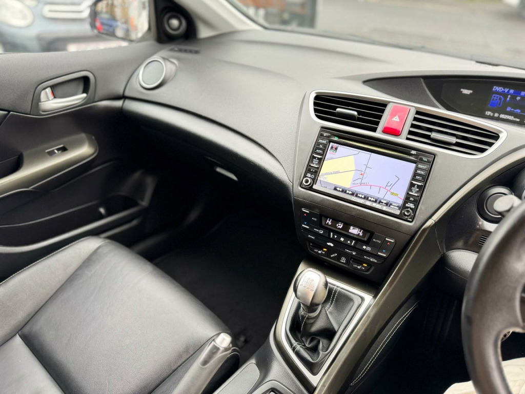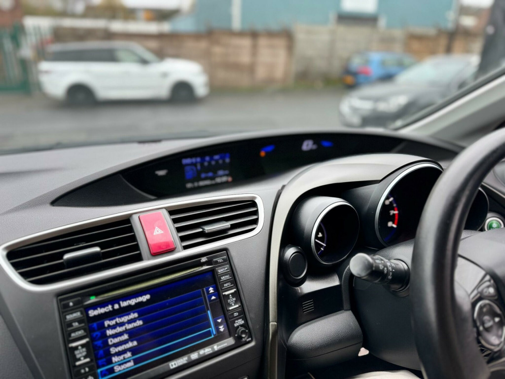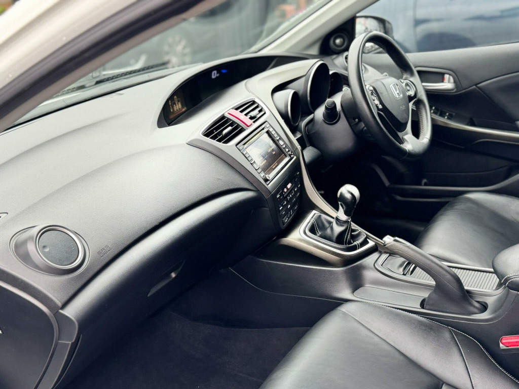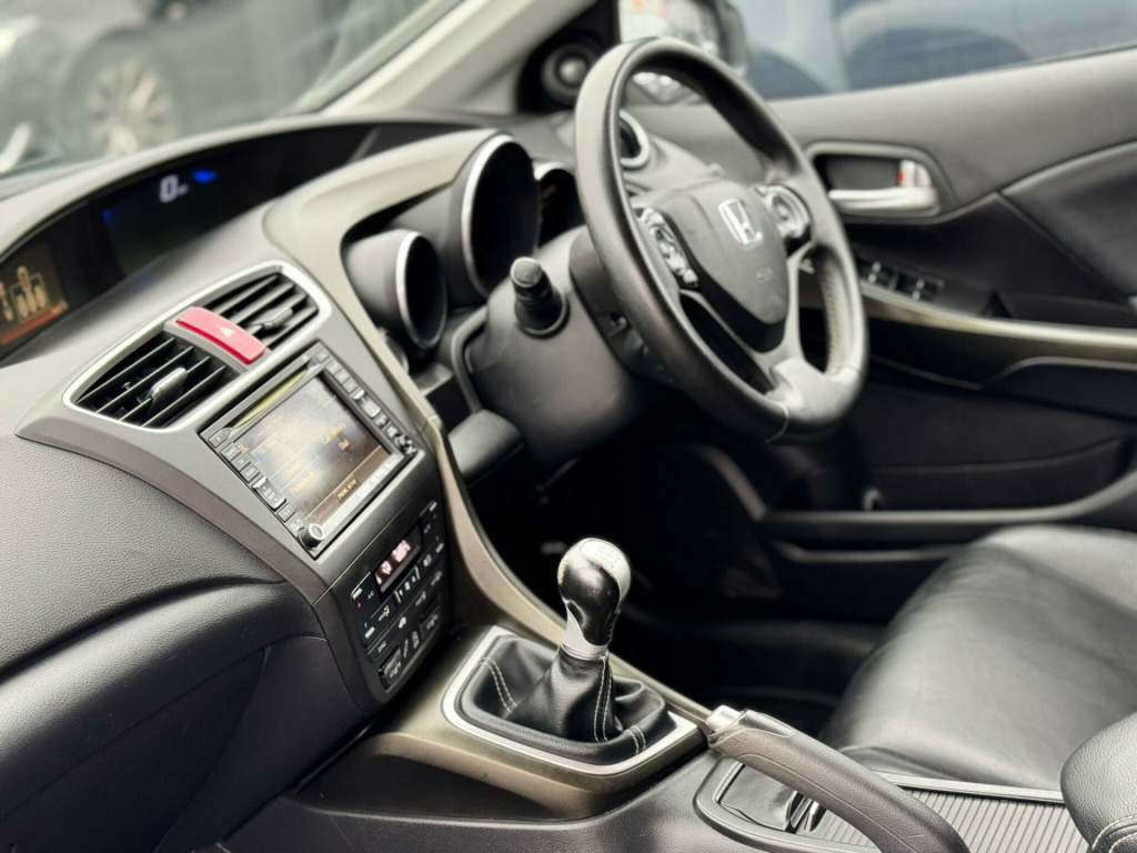This 2014 Honda Civic i VTEC SR presents an exceptional opportunity with its remarkably low mileage of just 52861 miles, significantly less than expected for a vehicle of its age. This particular Civic, a 1.8 litre petrol model, benefits from a full service history, with its last service completed on 29th July 2025 at 52760 miles, and comes with an MOT valid until August 2026. A clear vehicle history check provides further peace of mind, and the car is offered with a 3 month warranty for added assurance. The SR trim level is enhanced by the Premium Pack, featuring stylish 18 inch Argon alloy wheels, a rear parking camera and rear parking sensors to aid manoeuvrability, and automatic dusk sensing headlights for convenience.This Honda Civic stands out with its generous boot space, making it a practical choice for everyday use and longer journeys. Furthermore, its position within a low insurance group means that running costs are kept to a minimum, offering excellent value. These aspects, combined with its well maintained provenance and desirable features, indicate that this Civic is a superior option compared to other similar vehicles on the market.. ABS - Anti Lock Braking System, Accessory Socket - Centre Console, 17in Alloy Wheels, Accessory Socket - Front, Accessory Socket - Luggage Compartment, Active Damper Suspension System - ADS, Airbag - Front Side, Airbag - Passenger Cut Off Switch, Airbag - Passenger SRS, Alarm System, Alloy Pedals, Auto Dimming Rear View Mirror, Aux Socket, Bluetooth Hands Free Telephone - HFT, Brake Assist, Cargo Net, Climate Control - Dual Zone, Courtesy Light - Front and Rear, Cruise Control, Daytime Running Lights - LED, Deflate Warning System - DWS, Digital Audio Broadcast - DAB+, Door Mirrors - Electric-Retractable, Driver Seat Manual Height Adjustment, Driver i-SRS Airbag, Dust and Pollen Filter, EBD - Electronic Brakeforce Distribution, Electric Windows - Front and Rear - Front One Touch Up-Down, Electric Windows - Remote Key Fob, Emergency Stop Signal, Front Fog Lights, Front Map Light, Front Seats - Heated, Glove Box Light, Halogen Headlights, Headlights - Coming-Leaving Home Function, Headlights - Dusk Sensor, High Mount Brake Light, High Power Audio - CD-MP3, Hill Start Assist - HSA, ISOFIX Points, Immobiliser System, Intelligent Multi Info Display - i-MID, Leather Shift Knob, Loading Edge Cover - Stainless Steel, Multiplex Meter Blue Illumination, Parking Sensors - Front, Parking Sensors - Rear, Passenger Seat Back Pocket, Power Assisted Steering - Electric, Privacy Glass, Rain Sensing Windscreen Wipers, Rear Armrest, Rear Parking Camera, Rear Wiper, Remote Central Locking with 2 Jack Knife Keys, Remote Retractable Door Mirrors, Roof Rails - Silver, Satellite Navigation - HDD, Seats - Magic Flexibility System, Selectable Door Unlock, Shark Fin Antenna, Shift Indicator Light, Side Curtain Airbags, Speakers x8, Speed Limiter, Steering Wheel - Leather, Steering Wheel - Remote Audio Controls, Steering Wheel - Tilt and Telescopic Adjustment, Sub Trunk, Sunvisor Vanity Mirrors with Illumination, Super Locking, Tonneau Cover, Traction Control integrated with VSA, Trunk Cargo Hook, Trunk Light, Tyre Repair Kit, USB Jack - iPod Compatible, Ultrasonic Sensor, VSA - Vehicle Stability Assist, Video Jack, Whiplash Lessening Front Headrests, 18in Alloy Wheels - Argon, Premium Pack, Leather - Black. Full service history