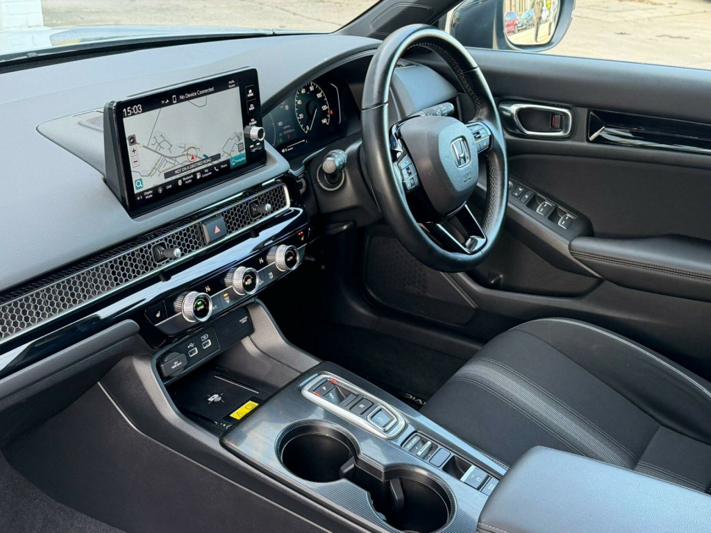 This 2023 Honda Civic h i-MMD Sport is a superb example, having had only one owner since new. This Euro 6 compliant model boasts a responsive 2.0L petrol hybrid engine, offering an engaging driving experience. Inside, you'll find dual zone climate control for personalised comfort, alongside heated front seats for those cooler days. The convenience of wireless Apple CarPlay and smart entry with keyless start simplifies your journeys, while LED headlights ensure excellent visibility.The Civic h i-MMD Sport truly shines with its impressive acceleration, reaching 0-62mph in just 7.9 seconds, demonstrating its dynamic performance. This quick acceleration indicates a more spirited drive compared to many other vehicles in its class. Furthermore, the generous boot space provides ample room for luggage or shopping, making it a practical choice for everyday use and longer trips alike.. 18in Alloy Wheels - Gloss Black, 2x USB Front, 2x USB Rear, ABS - Anti Lock Braking System, Accessory Socket - Front and Rear, Adaptive Cruise Control, Adjustable Speed Limiter, Agile Handle Assist, Air Conditioning - Dual Zone Climate, Air Conditioning - Rear Vent, Airbag - Driver SRS - Single Stage Inflation, Airbag - Front Centre, Airbag - Front Driver and Passenger, Airbag - Front Side, Airbag - Knee - DR and AS, Airbag - Passenger SRS with Cut Off Switch, Airbag - Rear Side, Airbag - Side Curtain - Front and Rear, Ambient Light - Roof - White, Antenna - Shark Fin in Body Colour, Auto Dimming Rear View Mirror, Auto Headlight Adjuster, Auto Wipers, Automatic Headlights, Blind Spot Information including Cross Traffic Monitor, Bluetooth Hands Free Telephone - HFT, Brake Assist, Cargo Net Hook, Collision Mitigation Braking System - CMBS, Collision Mitigation Throttle Control, Courtesy Light, Daytime Running Lights - LED, Deflation Warning System - DWS, Digital Audio Broadcast - DAB, Door Handles - Interior - Platinum Chrome, Door Mirrors - Electrically Adjustable - Folding and Heated, Door Mirrors - Gloss Black, Drive Mode, Driver Door Mirrors - Aspheric, Driver and Front Passenger Seat Armrest, EBD - Electronic Brakeforce Distribution, ECON Mode, ECall - Europe, Electric Power Steering - Motion Adaptive - MA-EPS, Electric Power Steering with Variable Gear Ratio, Electric Windows - Front and Rear, Electronic Parking Brake with Brake Hold, Emergency Stop Signal, Exhaust - Single and Hidden, Exterior Door Handle Finish - Body Coloured, Flat Tyre Solution Temper - Tyre Repair Kit, Forward Collision Warning - FCW, Front Fog Lights - LED, Front Map Light, Front Seat - Lumbar Support - Driver Electric, Front Seat - Manual Height Adjustment - Driver, Front Seat - Pockets - Passenger, Front Seat Belts with Emergency Locking Retractor - ELR, Front Seats - Heated, Glove Box Light, Grille - Material Finish, Headlight Extension Colour - Black, Headlights - Auto On-Off Timer - Coming-Leaving Home Function, High Beam Support System - HSS, Hill Start Assist - HSA, Honda CONNECT with Navigation, ISOFIX Fix Points - I-Size, Idle Stop-HEV Mode, Immobiliser System, Intelligent Speed Limiter, Key Fob Operation includes Mirrors and Windows, LED Front Turn Lights, LED Headlights, LED Rear Lights, Lane Departure Warning - LDW, Lane Keep Assist System, Low Speed Brake Function, Low Speed Following, MID - Multi Info Display - 7in Screen, Meter Illumination - White, POP Up Bonnet, Parking Sensors - Front x4 and Rear x4, Power Meter, Privacy Glass, Rear Bench Split - 60-40, Rear Reading Light, Rear Seat Centre Armrest, Rear View Camera, Remote Central Locking with 2 Key Fobs, Road Departure Mitigation, Security Alarm System, Selectable Door Unlock, Smart Entry and Start, Speaker - Front Tweeter, Speakers x8, Sport Pedal, Steering Wheel - Leather, Steering Wheel - Remote Audio Controls, Steering Wheel - Tilt and Telescopic, Sunvisor Vanity Mirrors with Illumination, Super Locking, Tilt Sensor, Tonneau Cover, Traffic Jam Assistant, Traffic Sign Recognition System, Trunk Light, Ultrasonic Sensor, VSA - Vehicle Stability Assist, Whiplash Lessening Front Headrests, Window Garnish - Low Gloss Black, Wireless Apple Carplay, Wireless Charging, e-HEV Emblem.