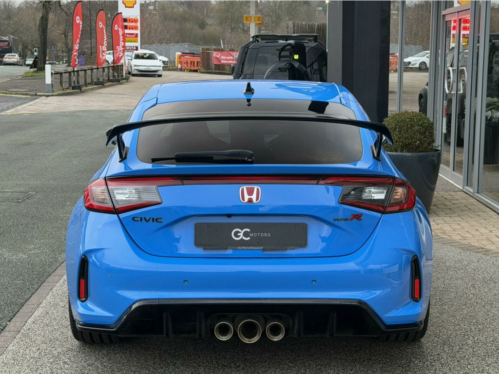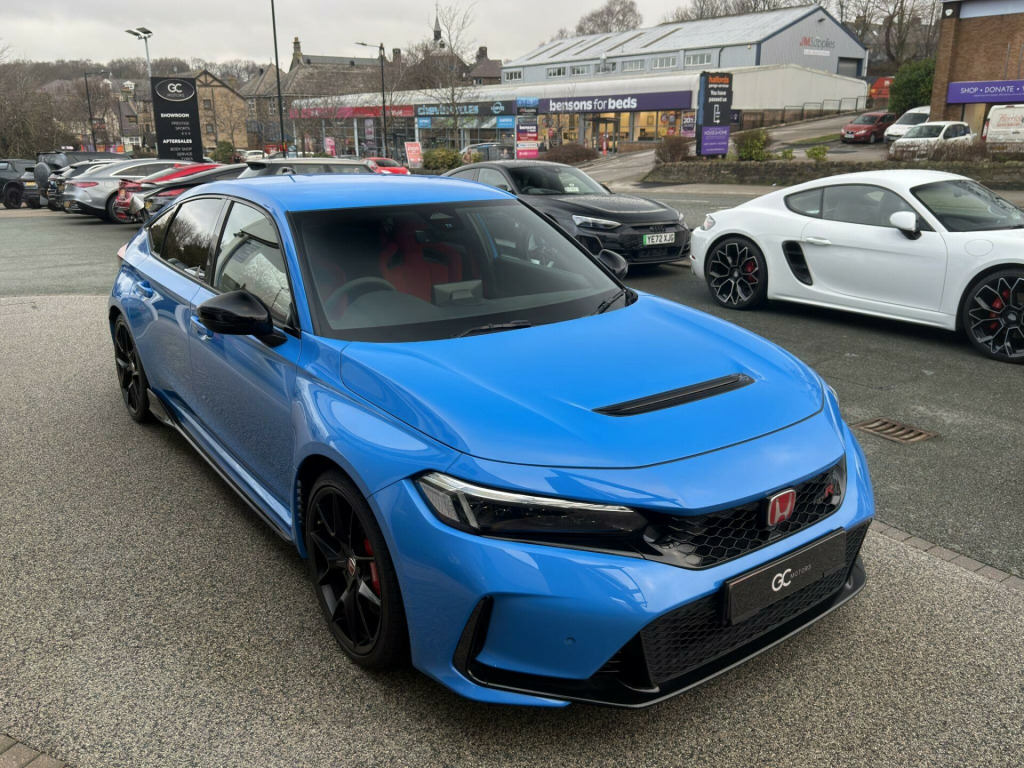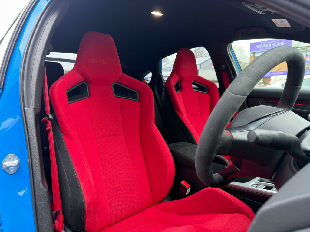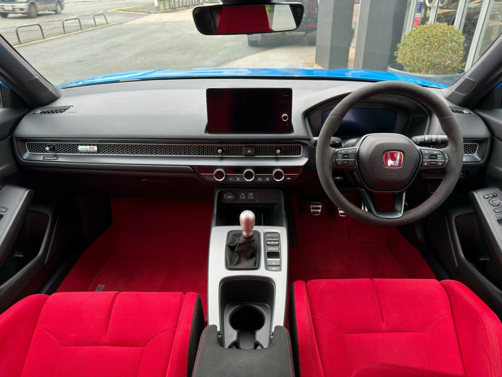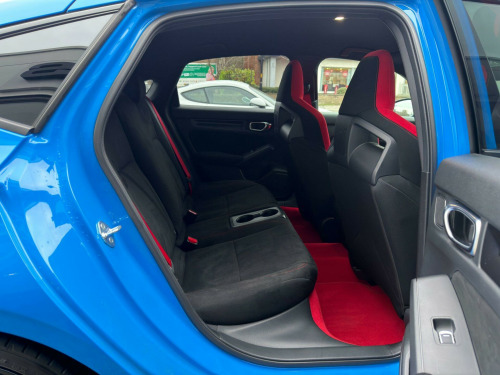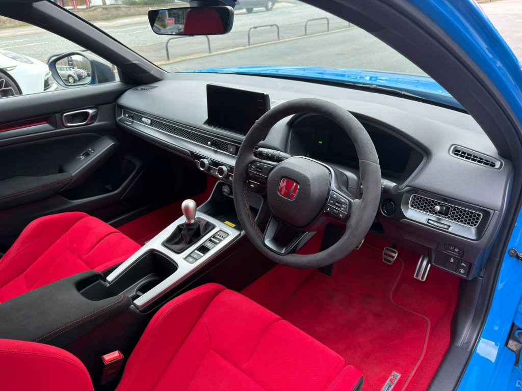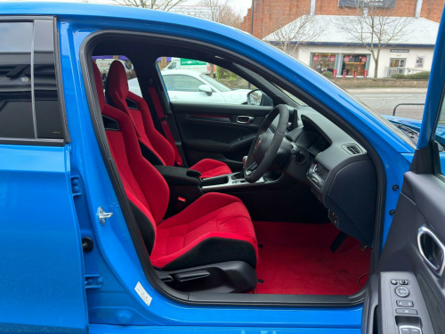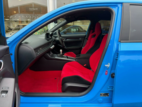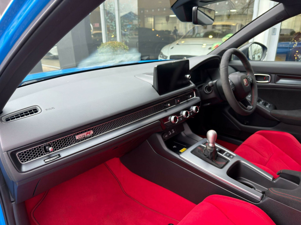 2.0 VTEC Turbo Type R. Factory Options: Red Suede Type Fabric. Standard Specification: Reversing Camera, Black 19” Alloys, Brembo Brakes, Alcantara Multi-Function Steering Wheel, Front Sports Seats, Type R Front Headrest Embossing, Type R Front Seat Backs, Privacy Glass, Adaptive Cruise Control, Gloss Black Rear Spoiler, Triple Tailpipes, Apple CarPlay, Android Auto, Wireless Phone Charging, Red Seat Belts, Type-R Dashboard Badging, Alloy Gear Knob, Keyless Access, Smart Entry & Start, Front & Rear Parking Sensors, Speed Limiter, Road Departure Mitigation, Lane Keep Assist, Blind Spot Information System, Collision Mitigation Braking System, Forward Collision Warning, Traffic Sign Recognition System with Over Speed Warning, Driver Attention Monitor, Rev Match System, 2 Zone Climate Control, Switchable Drive Modes (Comfort, Sport, Individual & +R), LED Headlights, LED Taillights, Digital Cockpit, Honda Connect 9” Touchscreen Infotainment Display, Satellite Navigation, DAB Radio, Bluetooth, Voice Control, Electric Folding Heated Wing Mirrors, Stainless Steel Sports Pedals, Gloss Black Exterior Trim, Red Calipers with Front White Brembo Lettering, Black Suede Type Fabric Door Card Trim, 60/40 Split Folding Rear Seats. Finished in Boost Blue Pearl Paint. This car does not have a panoramic roof.All our cars are HPI clear. Please contact us for your own personal video presentation of this particular car. We offer competitive finance rates with our in-house team from PCP, lease purchase and HP. Whilst we make every effort to ensure that the specification and technical information for the cars on our website is correct, some of it is supplied by third party providers and we cannot guarantee its accuracy. It is therefore important that you do not solely rely on this information.. Reversing Camera, Black 19” Alloys, Brembo Brakes, Alcantara Multi-Function Steering Wheel, Front Sports Seats, Type R Front Headrest Embossing, Type R Front Seat Backs, Privacy Glass, Adaptive Cruise Control, Gloss Black Rear Spoiler, Triple Tailpipes, Apple CarPlay, Android Auto, Wireless Phone Charging, Red Seat Belts, Type-R Dashboard Badging, Alloy Gear Knob, Keyless Access, Smart Entry & Start, Front & Rear Parking Sensors, Speed Limiter, Road Departure Mitigation, Lane Keep Assist, Blind Spot Information System, Collision Mitigation Braking System, Forward Collision Warning, Driver Attention Monitor, Rev Match System, 2 Zone Climate Control, Switchable Drive Modes (Comfort, Sport, Individual & +R), LED Headlights, LED Taillights, Digital Cockpit, Honda Connect 9” Touchscreen Infotainment Display, Satellite Navigation, DAB Radio, Bluetooth, Voice Control, Electric Folding Heated Wing Mirrors, Stainless Steel Sports Pedals, Gloss Black Exterior Trim, Red Calipers with Front White Brembo Lettering, Black Suede Type Fabric Door Card Trim, 60/40 Split Folding Rear Seats, Suede Type Fabric - Red.