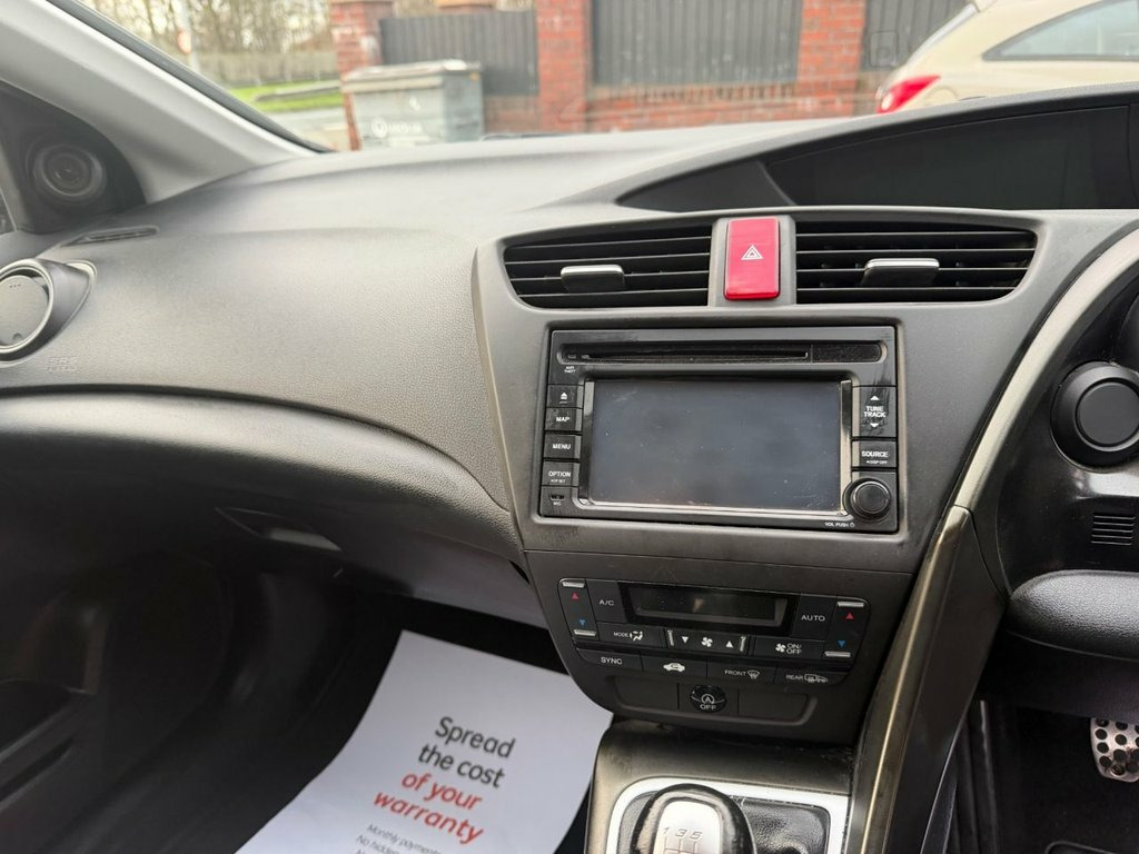FULL SERVICE HISTORY. 12 MONTHS MOT UPON SALE. RAC WARRANTY WITH 12 MONTHS BREAKDOWN COVER INCLUDED. Discover this 2014 Honda Civic i-DTEC ES-T, a truly exceptional example with remarkably low mileage for its age, having covered just 63,000 miles. This well maintained diesel hatchback has had only two owners from new and boasts a clear vehicle history check, offering peace of mind. The ES-T trim level provides a comfortable and practical driving experience, perfect for everyday use. This Honda Civic stands out with its impressive performance, achieving 0-60mph in a swift 8.5 seconds, demonstrating its responsive 2.2L diesel engine. Its low insurance group rating makes it an economical choice for many drivers, while the generous boot space ensures you have ample room for shopping, luggage, or any gear you need to transport. These factors combined indicate that this Civic offers a superior ownership proposition compared to other vehicles in its class. 16in Alloy Wheels, 1CD Tuner - MP3 Compatible, ABS - Anti Lock Braking System, Accessory Socket - Centre Console, Accessory Socket - Instrument Panel, Accessory Socket - Luggage Compartment, Airbag - Front Side, Airbag - Passenger SRS with Cut Off Swit, Alarm System, Alloy Pedals, Ambient Lighting, Brake Assist, Climate Control - Dual Zone, Courtesy Light - Front and Rear, Cruise Control with Speed Limiter, Daytime Running Lights - LED, Door Mirrors - Electric-Retractable, Driver Seat Manual Height Adjustment, Driver i-SRS Airbag, Dust and Pollen Filter, EBD - Electronic Brakeforce Distribution, Electric Windows - Front One Touch Up-Do, Electric Windows - Front and Rear, Electric Windows - R
