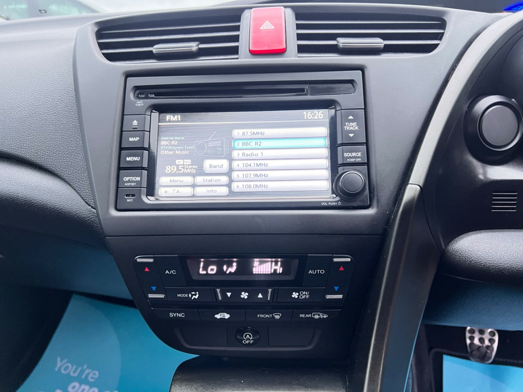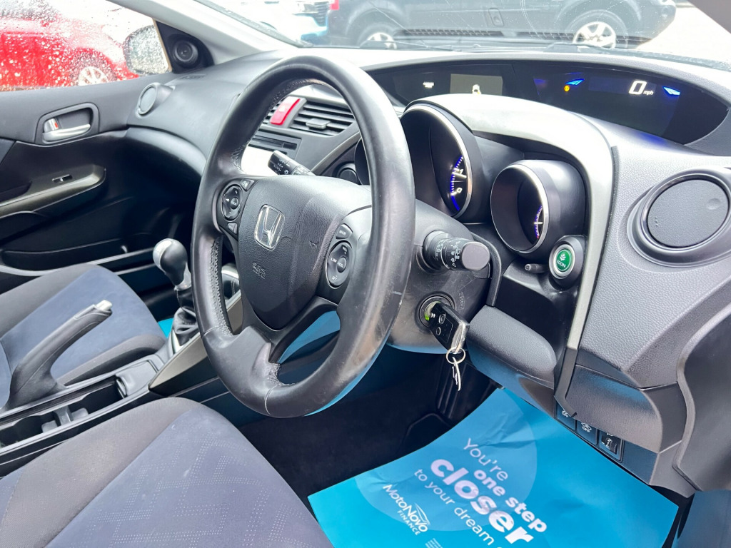 This 2013 Honda Civic 2.2 i-DTEC ES-T Hatchback with a diesel engine and manual transmission has 170016 miles on the clock and comes with a valid MOT until 20/11/2026. With a spacious hatchback design, this vehicle also offers 5 seats and 5 doors for easy access. Equipped with 16in Alloy Wheels, Electric-Retractable Door Mirrors, and Electric Windows throughout, including a rear one-touch up-down feature activated by a remote key fob, this car combines style with practicality. With its Euro 5 (s/s) engine producing 150 ps, the Civic provides a smooth and efficient driving experience, making it a reliable and fuel-efficient choice for any driver.PART EXCHANGE TO CLEAR TAG 14 in alloy wheels, door mirrors - electric-retractable, electric windows - front and rear, electric windows - rear one touch up-down, electric windows - remote key fob, shutter grille, tyre repair kit, 1cd tuner - mp3 compatible, accessory socket - centre console, accessory socket - instrument panel, accessory socket - luggage compartment, sd navigation with integrated bluetooth handsfree telephone system, shark fin antenna, speakers x6, usb jack - ipod compatible, abs - anti lock braking system, airbag - front side, airbag - passenger srs with cut off switch, alarm system, brake assist, driver i-srs airbag, ebd - electronic brakeforce distribution, emergency stop signal, front seat belts with 2 stage emergency locking retractor - elr, hill start assist - hsa, isofix points, immobiliser system, rear seat belts with emergency locking retractor - elr, rear wiper, remote central locking with 2 jack knife keys, side curtain airbags, super locking, traction control integrated with vsa, ultrasonic sensor, vsa - vehicle stability assist, alloy pedals, ambient lighting, climate control - dual zone, courtesy light - front and rear, driver seat manual height adjustment, dust and pollen filter, electric windows - front one touch up-down, front map light, glove box light, leather shift knob, multiplex meter, passenger seat back pocket, rain sensing windscreen wipers, rear armrest, remote retractable door mirrors, seats - magic flexibility system, selectable door unlock, steering wheel - leather, steering wheel - remote audio controls, steering wheel - tilt and telescopic adjustment, sub trunk, sunvisor vanity mirrors, sunvisor vanity mirrors with illumination, tonneau cover, trunk cargo hook, trunk light, whiplash lessening front headrests, cruise control with speed limiter, mid - multi info display, power assisted steering - electric, rear parking camera, shift indicator light, daytime running lights - led, front fog lights, halogen headlights, headlights - coming-leaving home function, headlights - dusk sensor, high mount brake light