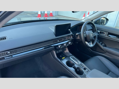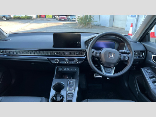 Honda Civic 2.0 eHEV Advance 5dr CVT 10.2" Multi information display, Adaptive cruise control, Adaptive motion for electric power steering, Adjustable speed limiter, Agile handling assist, BLIS (Blind Spot Information System) with Cross Traffic Monitor, Bluetooth hands free telephone connection, Driving modes, Economy mode, Electric power steering wheel with variable gear ratio steering, Emergency call service, Emergency stop signalling system, Forward collision warning, Front and rear parking sensors, Honda CONNECT with Navigation 9" touchscreen, AM/FM/DAB, Apple Carplay and Android Auto, live traffic info, Honda sensing, Idle stop, Intelligent speed limiter, Lane departure warning system, Lane keep assist, Low speed following, Power meter, Rear parking camera, Road departure mitigation, Smartphone wireless charging plate, Tailgate, Traffic jam assist, Traffic sign recognition, Wireless apple carplay, Vehicle stability assist, 'Shark fin' mobile antenna, 2x USB Front socket (1 data & 1 charge), Centre speaker, Digital Audio Broadcast (DAB) Tuner, Front tweeters, Premium BOSE audio system with 12 speakers, Steering wheel mounted audio controls, Subwoofer, Adaptive driving beam, Aspherical driver door mirrors, Auto dimming rear view mirror, Auto headlight adjuster, Auto headlights, Automatic coming/leaving home lighting function, Automatic rain sensing wipers, Body colour door handles, Chrome window garnish, Electric adjustable heated door mirrors, Electric front and rear windows, Electrically folding door mirrors, Headlight extension aluminium, High beam assist, High level LED brake light, LED daytime running lights, LED front fog lights, LED front turn type, LED Headlights, LED rear lights, Material finish grille, Panorama glass roof, Pop up hood, Privacy glass, Rear side wing doors, Rear wiper, Single hidden exhaust pipe, Variable front intermittent wipers, 3 seat bench in 2nd row, 4 way electric adjustable passenger seat, 60/40 split folding rear seat, 8 way electric adjustable drivers seat, Cargo accessory power socket, Cargo net hooks, Driver and front passenger seat armrests, Driver and front passenger seat electric lumbar adjustment, Driver's seat electric height adjustment, Driver/passenger front seatback pockets, Dual climate control air conditioning system, Front accessory power socket, Front map lights, Front/rear courtesy lights, Glovebox light, Heated front seats, Heated steering wheel, Hybrid emblem, Isofix points/i size, Leather steering wheel, Leather/synthetic leather upholstery, Meter Illumination white, Platinum chrome interior door handles, Rear air vents, Rear head restraints, Rear reading lights, Rear seat centre armrest, Single front passenger seat, Stainless steel sports pedals, Sunglasses holder, Sunvisors with illuminated vanity mirrors, Tilt/telescopic adjustable steering wheel, Tonneau cover, Trunk light, USB Rear number 2 x charge, White ambient roof light, 3x3 point rear seatbelts, ABS+EBD+Brake assist, Airbags - driver and front passenger, Airbags - Knee (AS), Airbags - Knee (DR), Anti-whiplash front headrests, Brake hold function, Collision mitigation braking system, Collision mitigation throttle control, Deflation detection system, Driver SRS airbag (single stage inflation), Electronic parking brake with auto hold, Front and rear curtain airbags, Front and rear seat belts with emergency locking retractor (ELR), Front centre airbag, Front side airbags, Hill start assist, Low speed brake system, Manual child lock in rear doors, Passenger airbag deactivate switch, Rear airbags, Regenerative braking/deceleration paddle control, Immobiliser, Mirrors and windows key fob, Remote central locking with 2 jack knife keys, Security alarm, Selectable door unlock, Smart entry + Smart start, Superlocking, Tilt sensors, Ultrasonic security sensor, Tyre repair kit