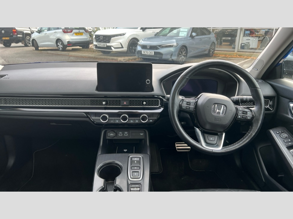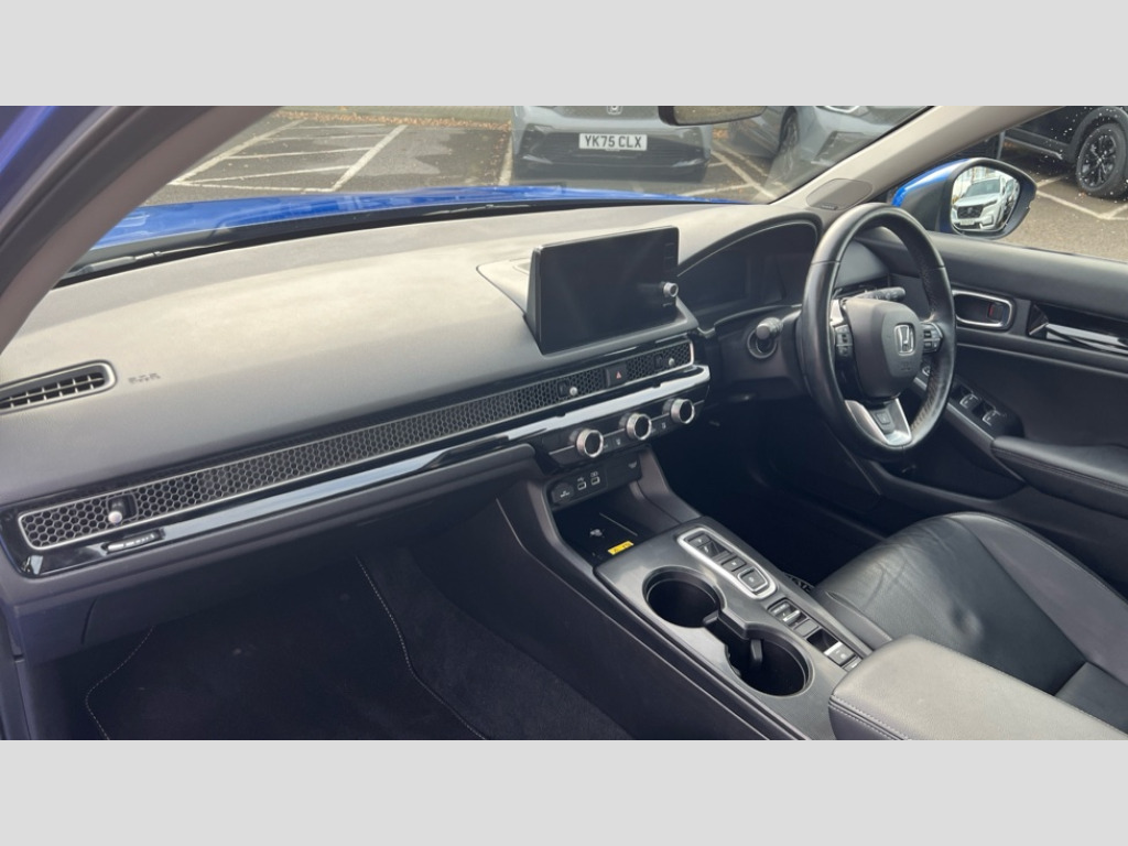 Honda Civic 2.0 eHEV Advance 5dr CVT 10.2" Multi information display, Adaptive cruise control, Adaptive motion for electric power steering, Adjustable speed limiter, Agile handling assist, BLIS (Blind Spot Information System) with Cross Traffic Monitor, Bluetooth hands free telephone connection, Driving modes, Economy mode, Electric power steering wheel with variable gear ratio steering, Emergency call service, Emergency stop signalling system, Forward collision warning, Front and rear parking sensors, Honda CONNECT with Navigation 9" touchscreen, AM/FM/DAB, Apple Carplay and Android Auto, live traffic info, Honda sensing, Idle stop, Intelligent speed limiter, Lane departure warning system, Lane keep assist, Low speed following, Power meter, Rear parking camera, Road departure mitigation, Smartphone wireless charging plate, Tailgate, Traffic jam assist, Traffic sign recognition, Wireless apple carplay, Vehicle stability assist, 'Shark fin' mobile antenna, 2x USB Front socket (1 data & 1 charge), Centre speaker, Digital Audio Broadcast (DAB) Tuner, Front tweeters, Premium BOSE audio system with 12 speakers, Steering wheel mounted audio controls, Subwoofer, Adaptive driving beam, Aspherical driver door mirrors, Auto dimming rear view mirror, Auto headlight adjuster, Auto headlights, Automatic coming/leaving home lighting function, Automatic rain sensing wipers, Body colour door handles, Body colour door mirrors, Chrome window garnish, Electric adjustable heated door mirrors, Electric front and rear windows, Electrically folding door mirrors, Headlight extension aluminium, High beam assist, High level LED brake light, LED daytime running lights, LED front fog lights, LED front turn type, LED Headlights, LED rear lights, Material finish grille, Panorama glass roof, Pop up hood, Privacy glass, Rear side wing doors, Rear wiper, Single hidden exhaust pipe, Variable front intermittent wipers, 3 seat bench in 2nd row, 4 way electric adjustable passenger seat, 60/40 split folding rear seat, 8 way electric adjustable drivers seat, Cargo accessory power socket, Cargo net hooks, Driver and front passenger seat armrests, Driver and front passenger seat electric lumbar adjustment, Driver's seat electric height adjustment, Driver/passenger front seatback pockets, Dual climate control air conditioning system, Front accessory power socket, Front map lights, Front/rear courtesy lights, Glovebox light, Heated front seats, Heated steering wheel, Hybrid emblem, Isofix points/i size, Leather steering wheel, Leather/synthetic leather upholstery, Meter Illumination white, Platinum chrome interior door handles, Rear air vents, Rear head restraints, Rear reading lights, Rear seat centre armrest, Single front passenger seat, Stainless steel sports pedals, Sunglasses holder, Sunvisors with illuminated vanity mirrors, Tilt/telescopic adjustable steering wheel, Tonneau cover, Trunk light, USB Rear number 2 x charge, White ambient roof light, 3x3 point rear seatbelts, ABS+EBD+Brake assist, Airbags - driver and front passenger, Airbags - Knee (AS), Airbags - Knee (DR), Anti-whiplash front headrests, Brake hold function, Collision mitigation braking system, Collision mitigation throttle control, Deflation detection system, Driver SRS airbag (single stage inflation), Electronic parking brake with auto hold, Front and rear curtain airbags, Front and rear seat belts with emergency locking retractor (ELR), Front centre airbag, Front side airbags, Hill start assist, Low speed brake system, Manual child lock in rear doors, Passenger airbag deactivate switch, Rear airbags, Regenerative braking/deceleration paddle control, Immobiliser, Mirrors and windows key fob, Remote central locking with 2 jack knife keys, Security alarm, Selectable door unlock, Smart entry + Smart start, Superlocking, Tilt sensors, Ultrasonic security sensor, Tyre repair kit