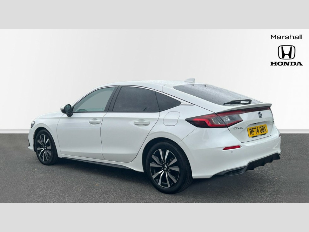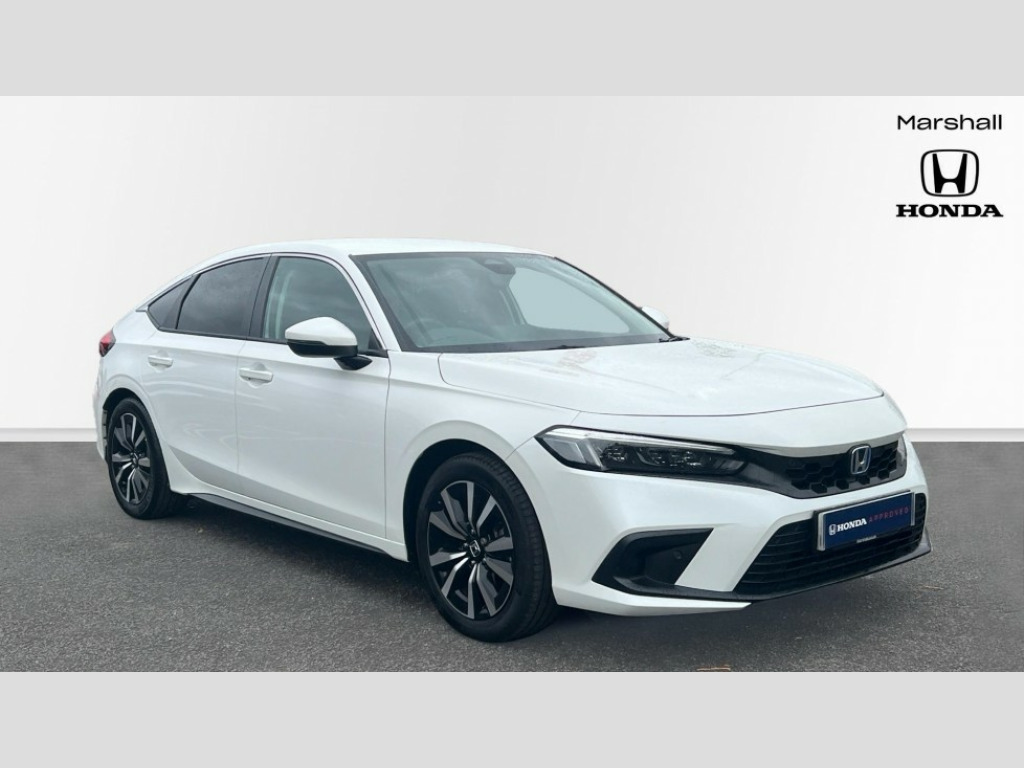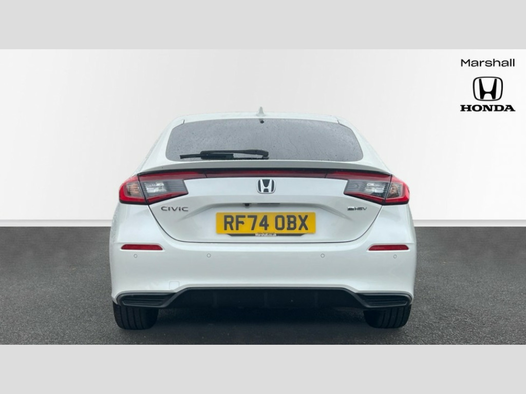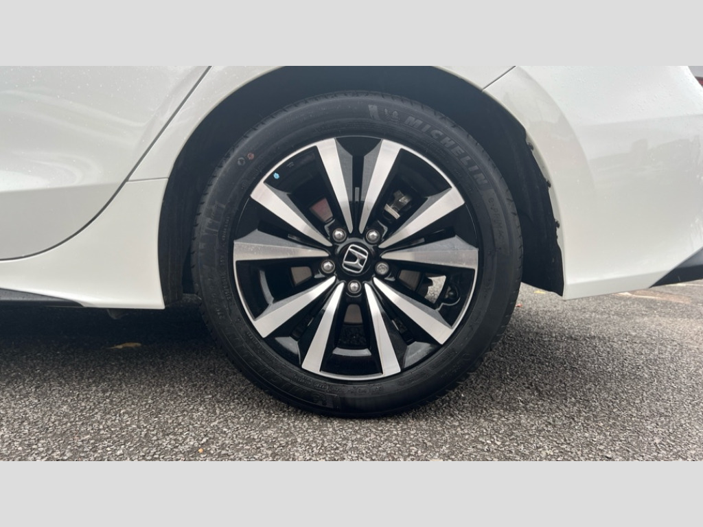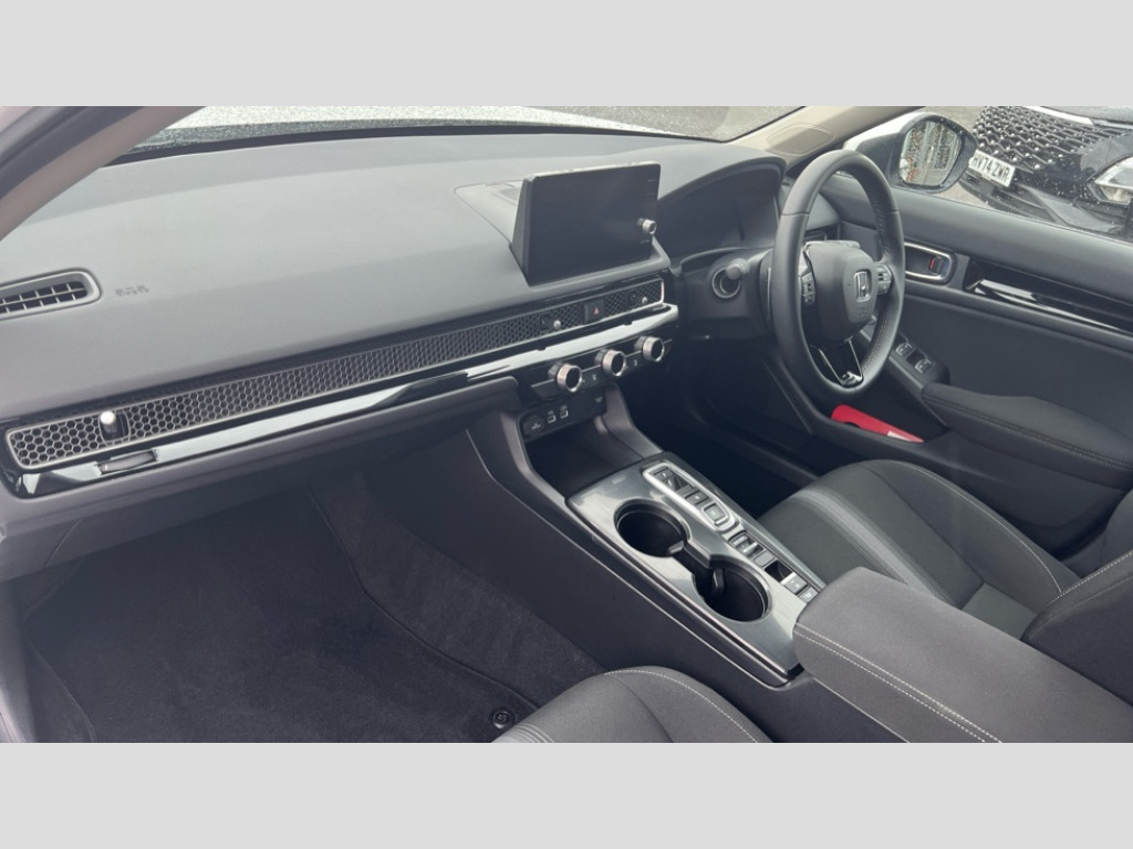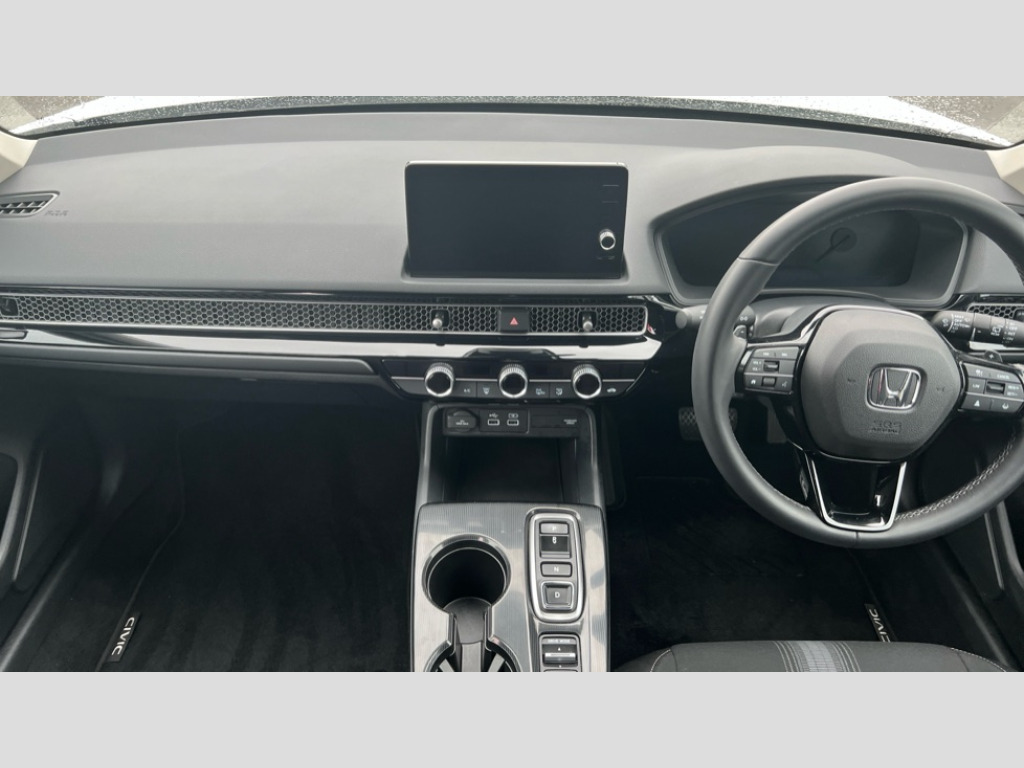 Honda Civic 2.0 eHEV Elegance 5dr CVT 7" Multi information display screen, Adaptive cruise control, Adaptive motion for electric power steering, Adjustable speed limiter, Agile handling assist, BLIS (Blind Spot Information System) with Cross Traffic Monitor, Bluetooth hands free telephone connection, Driving modes, Economy mode, Electric power steering wheel with variable gear ratio steering, Emergency call service, Emergency stop signalling system, Forward collision warning, Front and rear parking sensors, Honda CONNECT with Navigation 9" touchscreen, AM/FM/DAB, Apple Carplay and Android Auto, live traffic info, Honda sensing, Idle stop, Intelligent speed limiter, Lane departure warning system, Lane keep assist, Low speed following, Power meter, Rear parking camera, Road departure mitigation, Tailgate, Traffic jam assist, Traffic sign recognition, Wireless apple carplay, Vehicle stability assist, 'Shark fin' mobile antenna, 2x USB Front socket (1 data & 1 charge), 8 Speakers, Digital Audio Broadcast (DAB) Tuner, Front tweeters, Steering wheel mounted audio controls, Aspherical driver door mirrors, Auto headlight adjuster, Auto headlights, Automatic coming/leaving home lighting function, Automatic rain sensing wipers, Body colour door handles, Chrome window garnish, Electric adjustable heated door mirrors, Electric front and rear windows, Electrically folding door mirrors, Headlight extension black, High beam assist, High level LED brake light, LED daytime running lights, LED front turn type, LED Headlights, LED rear lights, Material finish grille, Pop up hood, Privacy glass, Rear side wing doors, Rear wiper, Single hidden exhaust pipe, Variable front intermittent wipers, 3 seat bench in 2nd row, 60/40 split folding rear seat, Cargo accessory power socket, Cargo net hooks, Driver and front passenger seat armrests, Driver's electric lumbar adjustment, Driver's seat height adjustment, Dual climate control air conditioning system, Fabric upholstery, Front accessory power socket, Front map lights, Front/rear courtesy lights, Glovebox light, Heated front seats, Hybrid emblem, Isofix points/i size, Leather steering wheel, Meter Illumination white, Passenger seat back pocket, Platinum chrome interior door handles, Rear head restraints, Rear reading lights, Rear seat centre armrest, Single front passenger seat, Sunvisors with illuminated vanity mirrors, Tilt/telescopic adjustable steering wheel, Tonneau cover, Trunk light, USB Rear number 2 x charge, White ambient roof light, 3x3 point rear seatbelts, ABS+EBD+Brake assist, Airbags - driver and front passenger, Airbags - Knee (AS), Airbags - Knee (DR), Anti-whiplash front headrests, Brake hold function, Collision mitigation braking system, Collision mitigation throttle control, Deflation detection system, Driver SRS airbag (single stage inflation), Electronic parking brake with auto hold, Front and rear curtain airbags, Front and rear seat belts with emergency locking retractor (ELR), Front centre airbag, Front side airbags, Hill start assist, Low speed brake system, Manual child lock in rear doors, Passenger airbag deactivate switch, Rear airbags, Regenerative braking/deceleration paddle control, Immobiliser, Mirrors and windows key fob, Remote central locking with 2 jack knife keys, Security alarm, Selectable door unlock, Smart entry + Smart start, Superlocking, Tilt sensors, Ultrasonic security sensor, 17" 2 tone diamond cut alloy wheels, Tyre repair kit