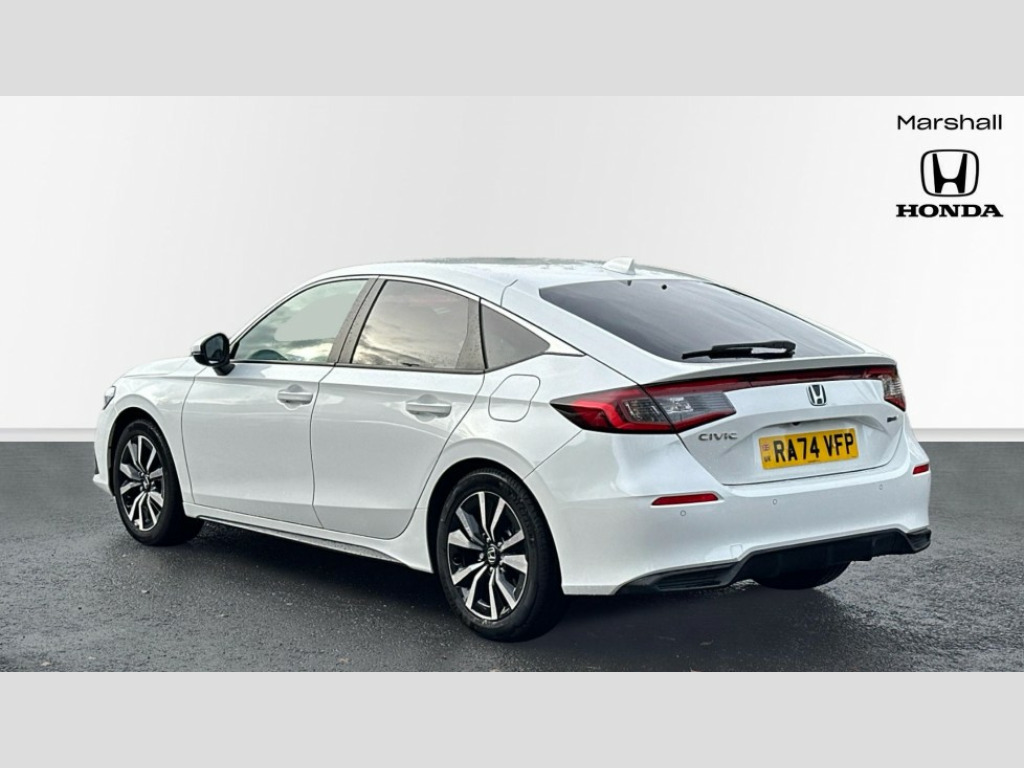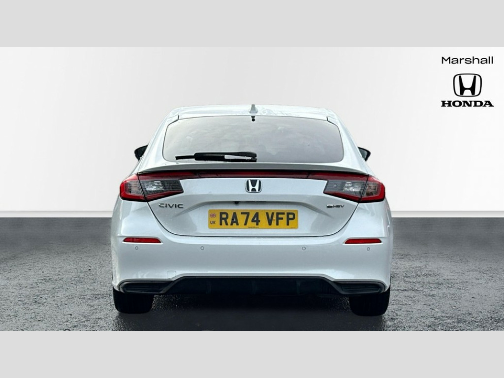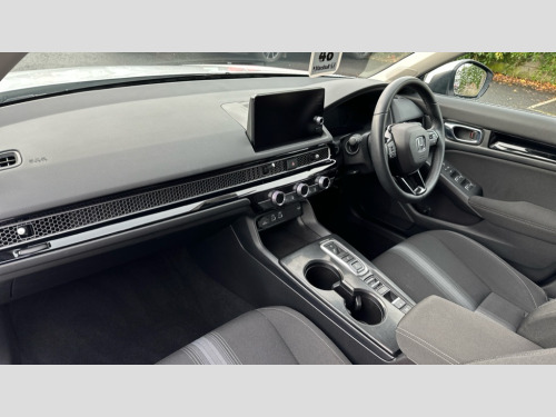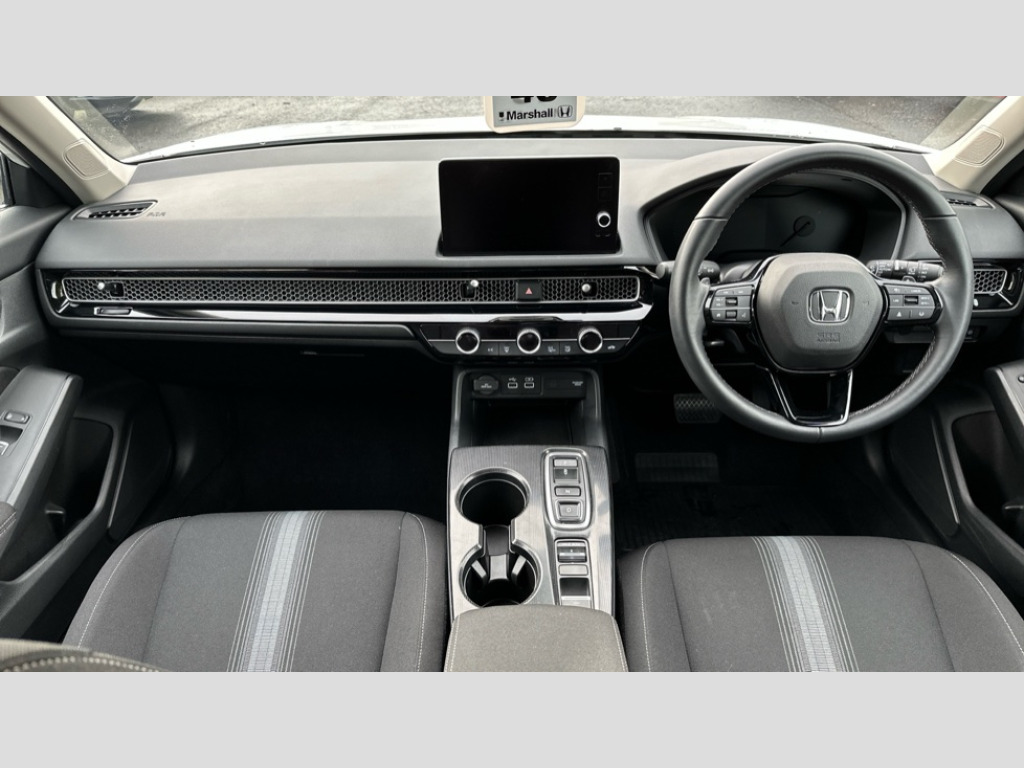 Honda Civic 2.0 eHEV Elegance 5dr CVT 7" Multi information display screen, Adaptive cruise control, Adaptive motion for electric power steering, Adjustable speed limiter, Agile handling assist, BLIS (Blind Spot Information System) with Cross Traffic Monitor, Bluetooth hands free telephone connection, Driving modes, Economy mode, Electric power steering wheel with variable gear ratio steering, Emergency call service, Emergency stop signalling system, Forward collision warning, Front and rear parking sensors, Honda CONNECT with Navigation 9" touchscreen, AM/FM/DAB, Apple Carplay and Android Auto, live traffic info, Honda sensing, Idle stop, Intelligent speed limiter, Lane departure warning system, Lane keep assist, Low speed following, Power meter, Rear parking camera, Road departure mitigation, Tailgate, Traffic jam assist, Traffic sign recognition, Wireless apple carplay, Vehicle stability assist, 'Shark fin' mobile antenna, 2x USB Front socket (1 data & 1 charge), 8 Speakers, Digital Audio Broadcast (DAB) Tuner, Front tweeters, Steering wheel mounted audio controls, Aspherical driver door mirrors, Auto headlight adjuster, Auto headlights, Automatic coming/leaving home lighting function, Automatic rain sensing wipers, Body colour door handles, Chrome window garnish, Electric adjustable heated door mirrors, Electric front and rear windows, Electrically folding door mirrors, Headlight extension black, High beam assist, High level LED brake light, LED daytime running lights, LED front turn type, LED Headlights, LED rear lights, Material finish grille, Pop up hood, Privacy glass, Rear side wing doors, Rear wiper, Single hidden exhaust pipe, Variable front intermittent wipers, 3 seat bench in 2nd row, 60/40 split folding rear seat, Cargo accessory power socket, Cargo net hooks, Driver and front passenger seat armrests, Driver's electric lumbar adjustment, Driver's seat height adjustment, Dual climate control air conditioning system, Fabric upholstery, Front accessory power socket, Front map lights, Front/rear courtesy lights, Glovebox light, Heated front seats, Hybrid emblem, Isofix points/i size, Leather steering wheel, Meter Illumination white, Passenger seat back pocket, Platinum chrome interior door handles, Rear head restraints, Rear reading lights, Rear seat centre armrest, Single front passenger seat, Sunvisors with illuminated vanity mirrors, Tilt/telescopic adjustable steering wheel, Tonneau cover, Trunk light, USB Rear number 2 x charge, White ambient roof light, 3x3 point rear seatbelts, ABS+EBD+Brake assist, Airbags - driver and front passenger, Airbags - Knee (AS), Airbags - Knee (DR), Anti-whiplash front headrests, Brake hold function, Collision mitigation braking system, Collision mitigation throttle control, Deflation detection system, Driver SRS airbag (single stage inflation), Electronic parking brake with auto hold, Front and rear curtain airbags, Front and rear seat belts with emergency locking retractor (ELR), Front centre airbag, Front side airbags, Hill start assist, Low speed brake system, Manual child lock in rear doors, Passenger airbag deactivate switch, Rear airbags, Regenerative braking/deceleration paddle control, Immobiliser, Mirrors and windows key fob, Remote central locking with 2 jack knife keys, Security alarm, Selectable door unlock, Smart entry + Smart start, Superlocking, Tilt sensors, Ultrasonic security sensor, 17" 2 tone diamond cut alloy wheels, Tyre repair kit