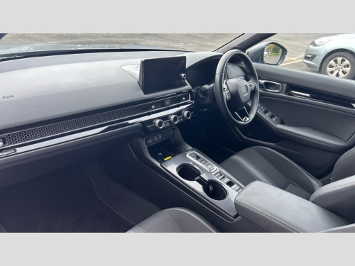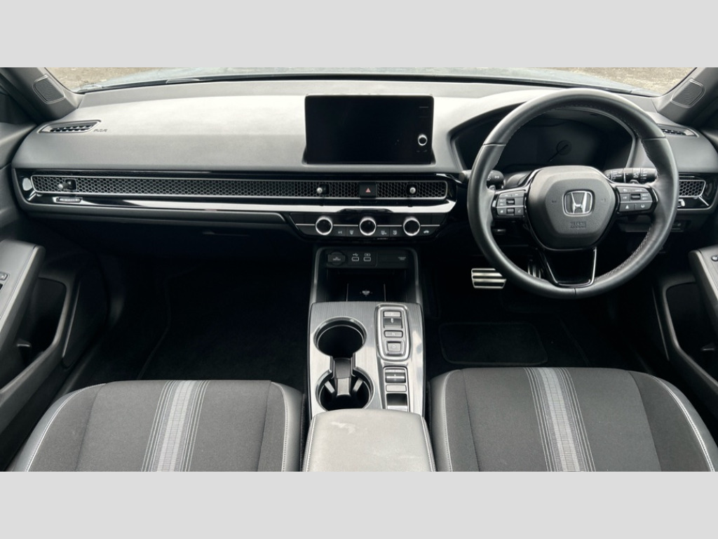 Honda Civic 2.0 eHEV Sport 5dr CVT 7" Multi information display screen, Adaptive cruise control, Adaptive motion for electric power steering, Adjustable speed limiter, Agile handling assist, BLIS (Blind Spot Information System) with Cross Traffic Monitor, Bluetooth hands free telephone connection, Driving modes, Economy mode, Electric power steering wheel with variable gear ratio steering, Emergency call service, Emergency stop signalling system, Forward collision warning, Front and rear parking sensors, Honda CONNECT with Navigation 9" touchscreen, AM/FM/DAB, Apple Carplay and Android Auto, live traffic info, Honda sensing, Idle stop, Intelligent speed limiter, Lane departure warning system, Lane keep assist, Low speed following, Power meter, Rear parking camera, Road departure mitigation, Smartphone wireless charging plate, Tailgate, Traffic jam assist, Traffic sign recognition, Wireless apple carplay, Vehicle stability assist, 'Shark fin' mobile antenna, 2x USB Front socket (1 data & 1 charge), 8 Speakers, Digital Audio Broadcast (DAB) Tuner, Front tweeters, Steering wheel mounted audio controls, Aspherical driver door mirrors, Auto dimming rear view mirror, Auto headlight adjuster, Auto headlights, Automatic coming/leaving home lighting function, Automatic rain sensing wipers, Black window frames, Body colour door handles, Electric adjustable heated door mirrors, Electric front and rear windows, Electrically folding door mirrors, Gloss black mirror, Headlight extension black, High beam assist, High level LED brake light, LED daytime running lights, LED front fog lights, LED front turn type, LED Headlights, LED rear lights, Low gloss black window garnish, Material finish grille, Pop up hood, Privacy glass, Rear side wing doors, Rear wiper, Single hidden exhaust pipe, Variable front intermittent wipers, 3 seat bench in 2nd row, 60/40 split folding rear seat, Cargo accessory power socket, Cargo net hooks, Driver and front passenger seat armrests, Driver's electric lumbar adjustment, Driver's seat height adjustment, Dual climate control air conditioning system, Fabric/synthetic leather upholstery, Front accessory power socket, Front map lights, Front/rear courtesy lights, Glovebox light, Heated front seats, Hybrid emblem, Isofix points/i size, Leather steering wheel, Meter Illumination white, Passenger seat back pocket, Platinum chrome interior door handles, Rear air vents, Rear head restraints, Rear reading lights, Rear seat centre armrest, Single front passenger seat, Stainless steel sports pedals, Sunvisors with illuminated vanity mirrors, Tilt/telescopic adjustable steering wheel, Tonneau cover, Trunk light, USB Rear number 2 x charge, White ambient roof light, 3x3 point rear seatbelts, ABS+EBD+Brake assist, Airbags - driver and front passenger, Airbags - Knee (AS), Airbags - Knee (DR), Anti-whiplash front headrests, Brake hold function, Collision mitigation braking system, Collision mitigation throttle control, Deflation detection system, Driver SRS airbag (single stage inflation), Electronic parking brake with auto hold, Front and rear curtain airbags, Front and rear seat belts with emergency locking retractor (ELR), Front centre airbag, Front side airbags, Hill start assist, Low speed brake system, Manual child lock in rear doors, Passenger airbag deactivate switch, Rear airbags, Regenerative braking/deceleration paddle control, Immobiliser, Mirrors and windows key fob, Remote central locking with 2 jack knife keys, Security alarm, Selectable door unlock, Smart entry + Smart start, Superlocking, Tilt sensors, Ultrasonic security sensor, Tyre repair kit