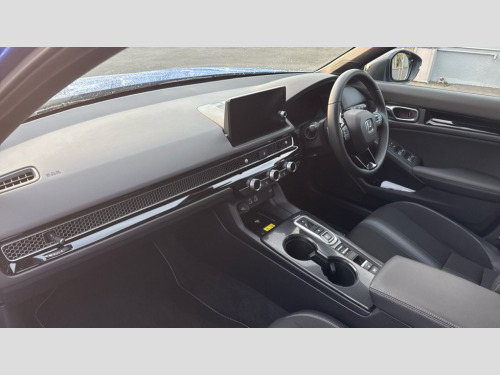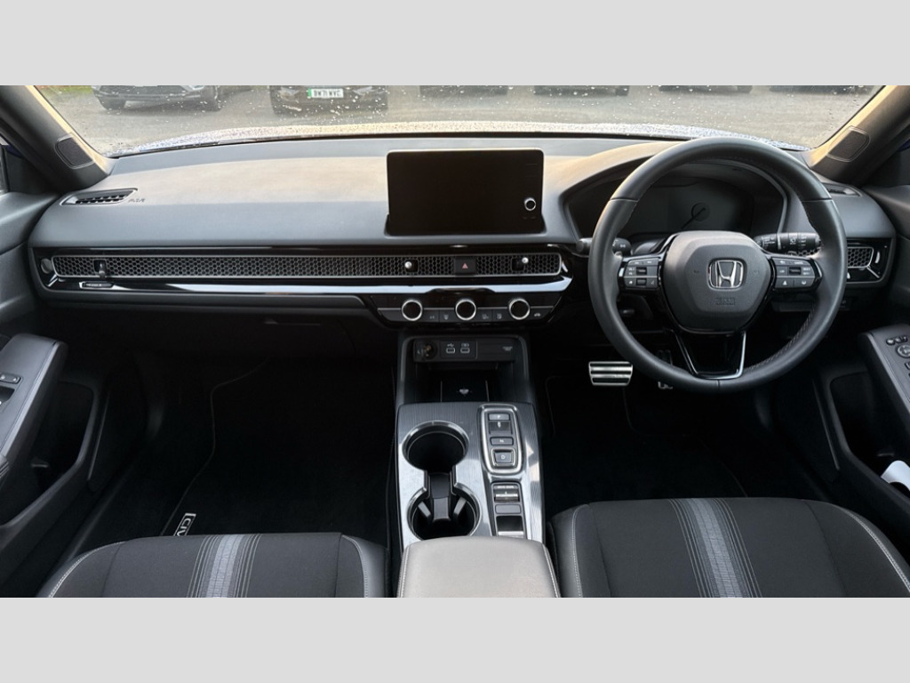 Honda Civic 2.0 eHEV Sport 5dr CVT 7" Multi information display screen, Adaptive cruise control, Adaptive motion for electric power steering, Adjustable speed limiter, Agile handling assist, BLIS (Blind Spot Information System) with Cross Traffic Monitor, Bluetooth hands free telephone connection, Driving modes, Economy mode, Electric power steering wheel with variable gear ratio steering, Emergency call service, Emergency stop signalling system, Forward collision warning, Front and rear parking sensors, Honda CONNECT with Navigation 9" touchscreen, AM/FM/DAB, Apple Carplay and Android Auto, live traffic info, Honda sensing, Idle stop, Intelligent speed limiter, Lane departure warning system, Lane keep assist, Low speed following, Power meter, Rear parking camera, Road departure mitigation, Smartphone wireless charging plate, Tailgate, Traffic jam assist, Traffic sign recognition, Wireless apple carplay, Vehicle stability assist, 'Shark fin' mobile antenna, 2x USB Front socket (1 data & 1 charge), 8 Speakers, Digital Audio Broadcast (DAB) Tuner, Front tweeters, Steering wheel mounted audio controls, Aspherical driver door mirrors, Auto dimming rear view mirror, Auto headlight adjuster, Auto headlights, Automatic coming/leaving home lighting function, Automatic rain sensing wipers, Black window frames, Body colour door handles, Electric adjustable heated door mirrors, Electric front and rear windows, Electrically folding door mirrors, Gloss black mirror, Headlight extension black, High beam assist, High level LED brake light, LED daytime running lights, LED front fog lights, LED front turn type, LED Headlights, LED rear lights, Low gloss black window garnish, Material finish grille, Pop up hood, Privacy glass, Rear side wing doors, Rear wiper, Single hidden exhaust pipe, Variable front intermittent wipers, 3 seat bench in 2nd row, 60/40 split folding rear seat, Cargo accessory power socket, Cargo net hooks, Driver and front passenger seat armrests, Driver's electric lumbar adjustment, Driver's seat height adjustment, Dual climate control air conditioning system, Fabric/synthetic leather upholstery, Front accessory power socket, Front map lights, Front/rear courtesy lights, Glovebox light, Heated front seats, Hybrid emblem, Isofix points/i size, Leather steering wheel, Meter Illumination white, Passenger seat back pocket, Platinum chrome interior door handles, Rear air vents, Rear head restraints, Rear reading lights, Rear seat centre armrest, Single front passenger seat, Stainless steel sports pedals, Sunvisors with illuminated vanity mirrors, Tilt/telescopic adjustable steering wheel, Tonneau cover, Trunk light, USB Rear number 2 x charge, White ambient roof light, 3x3 point rear seatbelts, ABS+EBD+Brake assist, Airbags - driver and front passenger, Airbags - Knee (AS), Airbags - Knee (DR), Anti-whiplash front headrests, Brake hold function, Collision mitigation braking system, Collision mitigation throttle control, Deflation detection system, Driver SRS airbag (single stage inflation), Electronic parking brake with auto hold, Front and rear curtain airbags, Front and rear seat belts with emergency locking retractor (ELR), Front centre airbag, Front side airbags, Hill start assist, Low speed brake system, Manual child lock in rear doors, Passenger airbag deactivate switch, Rear airbags, Regenerative braking/deceleration paddle control, Immobiliser, Mirrors and windows key fob, Remote central locking with 2 jack knife keys, Security alarm, Selectable door unlock, Smart entry + Smart start, Superlocking, Tilt sensors, Ultrasonic security sensor, Tyre repair kit