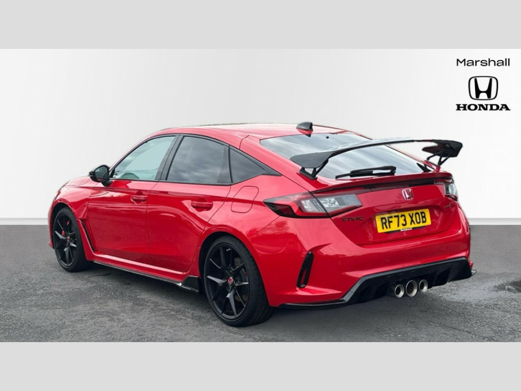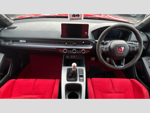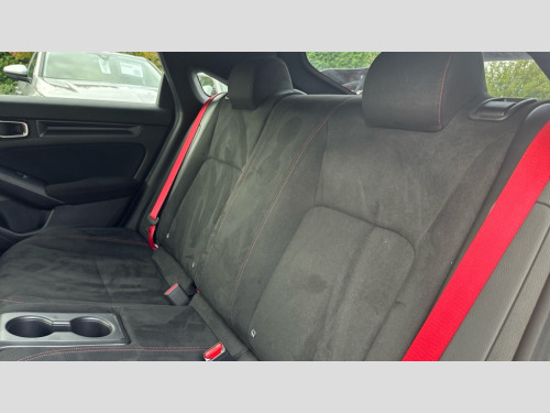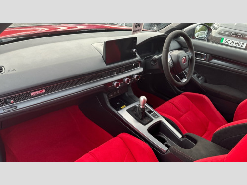 Honda Civic 2.0 VTEC Turbo Type R 5dr 10.2" Multi information display, Adaptive cruise control, Adaptive motion for electric power steering, Adjustable speed limiter, Agile handling assist, Bluetooth hands free telephone connection, Driving modes, Economy mode, Electric power steering wheel with variable gear ratio steering, Emergency call service, Emergency stop signalling system, Forward collision warning, Front and rear parking sensors, Honda CONNECT with Navigation 9" touchscreen, AM/FM/DAB, Apple Carplay and Android Auto, live traffic info, Idle stop, Intelligent speed limiter, Lane departure warning system, Lane keep assist, Rear parking camera, Road departure mitigation, Smartphone wireless charging plate, Traffic sign recognition, Wireless apple carplay, Vehicle stability assist, 'Shark fin' mobile antenna, 2x USB Front socket (1 data & 1 charge), 8 Speakers, Front tweeters, Honda LogR built in to DA, Steering wheel mounted audio controls, Aluminium stay rear spoiler, Aspherical driver door mirrors, Auto dimming rear view mirror, Auto headlight adjuster, Auto headlights, Automatic coming/leaving home lighting function, Automatic rain sensing wipers, Berlina black grille, Black door mirrors, Body colour door handles, Chrome window garnish, Electric adjustable heated door mirrors, Electric front and rear windows, Electrically folding door mirrors, Headlight extension black, High beam assist, High level LED brake light, LED daytime running lights, LED front turn type, LED Headlights, LED rear lights, Pop up hood, Privacy glass, Rear side wing doors, Rear wiper, Triple exhaust tailpipe, Type R emblem, Variable front intermittent wipers, 2 seat bench in 2nd row, 60/40 split folding rear seat, Ambient door handle light in red, Cargo accessory power socket, Cargo net hooks, Driver and front passenger seat armrests, Driver's seat height adjustment, Dual climate control air conditioning system, Front accessory power socket, Front door illuminated strip in matte black with red LED, Front door matte switch panel with gloss side bar, Front door panel in suede material, Front head restraints, Front map lights, Front/rear courtesy lights, Gearshift panel trim in patterned aluminium style, Glovebox light, Isofix points/i size, Meter Illumination white, Platinum chrome interior door handles, Rear air vents, Rear door matte switch panel with gloss side bar, Rear door panel in suede material, Rear door upper trim in matte black, Rear head restraints, Rear reading lights, Single front passenger seat, Stainless steel sports pedals, Steering wheel in suede leather, Suede fabric upholstery, Sunglasses holder, Sunvisors with illuminated vanity mirrors, Tilt/telescopic adjustable steering wheel, Tonneau cover, Trunk light, White ambient roof light, Exclusive styling pack - Civic, 2 x 3-point rear seatbelts, ABS+EBD+Brake assist, Airbags - driver and front passenger, Airbags - Knee (AS), Airbags - Knee (DR), Brake hold function, Collision mitigation braking system, Collision mitigation throttle control, Deflation detection system, Driver SRS airbag (single stage inflation), Electronic parking brake with auto hold, Front and rear curtain airbags, Front and rear seat belts with emergency locking retractor (ELR), Front side airbags, Hill start assist, Low speed brake system, Manual child lock in rear doors, Passenger airbag deactivate switch, Passenger SRS airbag, Rear side airbags, Immobiliser, Mirrors and windows key fob, Remote central locking with 2 jack knife keys, Security alarm, Selectable door unlock, Smart entry + Smart start, Superlocking, Tilt sensors, Ultrasonic security sensor, 19" Matte black alloy wheels, Tyre repair kit