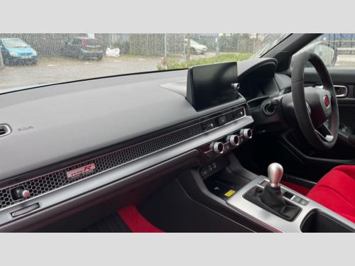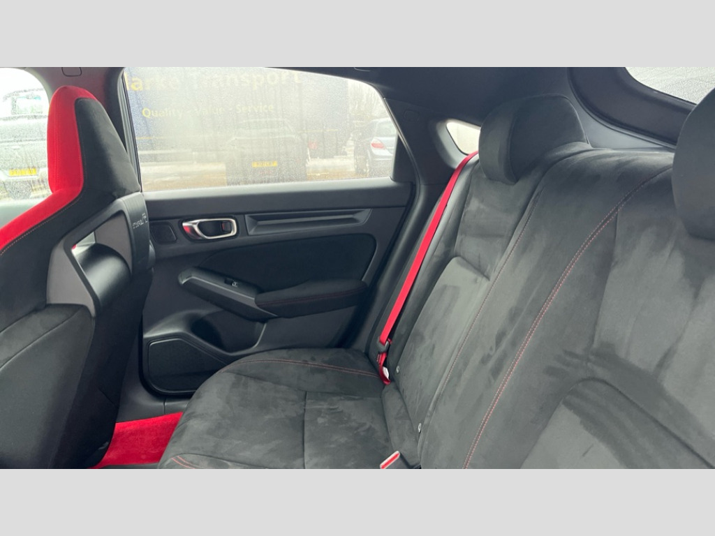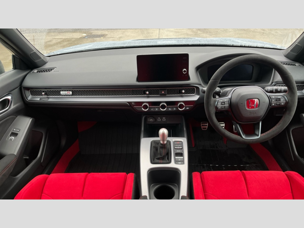 Honda Civic 2.0 VTEC Turbo Type R 5dr 10.2" Multi information display, Adaptive cruise control, Adaptive motion for electric power steering, Adjustable speed limiter, Agile handling assist, Bluetooth hands free telephone connection, Driving modes, Economy mode, Electric power steering wheel with variable gear ratio steering, Emergency call service, Emergency stop signalling system, Forward collision warning, Front and rear parking sensors, Honda CONNECT with Navigation 9" touchscreen, AM/FM/DAB, Apple Carplay and Android Auto, live traffic info, Idle stop, Intelligent speed limiter, Lane departure warning system, Lane keep assist, Rear parking camera, Road departure mitigation, Smartphone wireless charging plate, Traffic sign recognition, Wireless apple carplay, Vehicle stability assist, 'Shark fin' mobile antenna, 2x USB Front socket (1 data & 1 charge), 8 Speakers, Front tweeters, Honda LogR built in to DA, Steering wheel mounted audio controls, Aluminium stay rear spoiler, Aspherical driver door mirrors, Auto dimming rear view mirror, Auto headlight adjuster, Auto headlights, Automatic coming/leaving home lighting function, Automatic rain sensing wipers, Berlina black grille, Black door mirrors, Body colour door handles, Chrome window garnish, Electric adjustable heated door mirrors, Electric front and rear windows, Electrically folding door mirrors, Headlight extension black, High beam assist, High level LED brake light, LED daytime running lights, LED front turn type, LED Headlights, LED rear lights, Pop up hood, Privacy glass, Rear side wing doors, Rear wiper, Triple exhaust tailpipe, Type R emblem, Variable front intermittent wipers, 2 seat bench in 2nd row, 60/40 split folding rear seat, Ambient door handle light in red, Cargo accessory power socket, Cargo net hooks, Driver and front passenger seat armrests, Driver's seat height adjustment, Dual climate control air conditioning system, Front accessory power socket, Front door illuminated strip in matte black with red LED, Front door matte switch panel with gloss side bar, Front door panel in suede material, Front head restraints, Front map lights, Front/rear courtesy lights, Gearshift panel trim in patterned aluminium style, Glovebox light, Isofix points/i size, Meter Illumination white, Platinum chrome interior door handles, Rear air vents, Rear door matte switch panel with gloss side bar, Rear door panel in suede material, Rear door upper trim in matte black, Rear head restraints, Rear reading lights, Single front passenger seat, Stainless steel sports pedals, Steering wheel in suede leather, Suede fabric upholstery, Sunglasses holder, Sunvisors with illuminated vanity mirrors, Tilt/telescopic adjustable steering wheel, Tonneau cover, Trunk light, White ambient roof light, Exclusive styling pack - Civic, 2 x 3-point rear seatbelts, ABS+EBD+Brake assist, Airbags - driver and front passenger, Airbags - Knee (AS), Airbags - Knee (DR), Brake hold function, Collision mitigation braking system, Collision mitigation throttle control, Deflation detection system, Driver SRS airbag (single stage inflation), Electronic parking brake with auto hold, Front and rear curtain airbags, Front and rear seat belts with emergency locking retractor (ELR), Front side airbags, Hill start assist, Low speed brake system, Manual child lock in rear doors, Passenger airbag deactivate switch, Passenger SRS airbag, Rear side airbags, Immobiliser, Mirrors and windows key fob, Remote central locking with 2 jack knife keys, Security alarm, Selectable door unlock, Smart entry + Smart start, Superlocking, Tilt sensors, Ultrasonic security sensor, 19" Matte black alloy wheels, Tyre repair kit