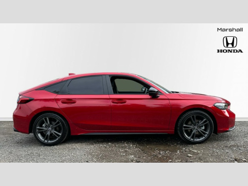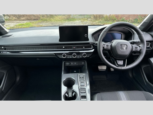Honda Civic 2.0 eHEV Sport 5dr CVT 7" Multi information display screen, Adaptive cruise control, Adaptive motion for electric power steering, Adjustable speed limiter, Agile handling assist, BLIS (Blind Spot Information System) with Cross Traffic Monitor, Bluetooth hands free telephone connection, Driving modes, Economy mode, Electric power steering wheel with variable gear ratio steering, Emergency call service, Emergency stop signalling system, Forward collision warning, Front and rear parking sensors, Honda CONNECT with Navigation 9" touchscreen, AM/FM/DAB, Apple Carplay and Android Auto, live traffic info, Honda sensing, Idle stop, Intelligent speed limiter, Lane departure warning system, Lane keep assist, Low speed following, Power meter, Rear parking camera, Road departure mitigation, Smartphone wireless charging plate, Tailgate, Traffic jam assist, Traffic sign recognition, Wireless apple carplay, Vehicle stability assist, 'Shark fin' mobile antenna, 2x USB Front socket (1 data & 1 charge), 8 Speakers, Digital Audio Broadcast (DAB) Tuner, Front tweeters, Steering wheel mounted audio controls, Aspherical driver door mirrors, Auto dimming rear view mirror, Auto headlight adjuster, Auto headlights, Automatic coming/leaving home lighting function, Automatic rain sensing wipers, Black window frames, Body colour door handles, Electric adjustable heated door mirrors, Electric front and rear windows, Electrically folding door mirrors, Headlight extension black, High beam assist, High level LED brake light, LED daytime running lights, LED front fog lights, LED front turn type, LED Headlights, LED rear lights, Low gloss black window garnish, Material finish grille, Pop up hood, Privacy glass, Rear side wing doors, Rear wiper, Single hidden exhaust pipe, Variable front intermittent wipers, 3 seat bench in 2nd row, 60/40 split folding rear seat, Cargo accessory power socket, Cargo net hooks, Driver and front passenger seat armrests, Driver's electric lumbar adjustment, Driver's seat height adjustment, Dual climate control air conditioning system, Fabric/synthetic leather upholstery, Front accessory power socket, Front map lights, Front/rear courtesy lights, Glovebox light, Heated front seats, Hybrid emblem, Isofix points/i size, Leather steering wheel, Meter Illumination white, Passenger seat back pocket, Platinum chrome interior door handles, Rear air vents, Rear head restraints, Rear reading lights, Rear seat centre armrest, Single front passenger seat, Stainless steel sports pedals, Sunvisors with illuminated vanity mirrors, Tilt/telescopic adjustable steering wheel, Tonneau cover, Trunk light, USB Rear number 2 x charge, White ambient roof light, 3x3 point rear seatbelts, ABS+EBD+Brake assist, Airbags - driver and front passenger, Airbags - Knee (AS), Airbags - Knee (DR), Anti-whiplash front headrests, Brake hold function, Collision mitigation braking system, Collision mitigation throttle control, Deflation detection system, Driver SRS airbag (single stage inflation), Electronic parking brake with auto hold, Front and rear curtain airbags, Front and rear seat belts with emergency locking retractor (ELR), Front centre airbag, Front side airbags, Hill start assist, Low speed brake system, Manual child lock in rear doors, Passenger airbag deactivate switch, Rear airbags, Regenerative braking/deceleration paddle control, Immobiliser, Mirrors and windows key fob, Remote central locking with 2 jack knife keys, Security alarm, Selectable door unlock, Smart entry + Smart start, Superlocking, Tilt sensors, Ultrasonic security sensor, Tyre repair kit