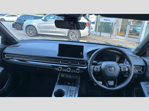 Honda Civic 2.0 eHEV Sport 5dr CVT 10.2" Multi information display, Adaptive cruise control, Adaptive motion for electric power steering, Adjustable speed limiter, Agile handling assist, BLIS (Blind Spot Information System) with Cross Traffic Monitor, Bluetooth hands free telephone connection, Driver attention monitoring system, Driving modes, Economy mode, Electric power steering wheel with variable gear ratio steering, Emergency call service, Emergency stop signalling system, Forward collision warning, Front and rear parking sensors, Honda CONNECT with Navigation 9" touchscreen, AM/FM/DAB, Apple Carplay and Android Auto, live traffic info, Honda sensing, Idle stop, Intelligent speed limiter, Lane departure warning system, Lane keep assist, Low speed following, Power meter, Rear parking camera, Road departure mitigation, Smartphone wireless charging, Tailgate, Traffic jam assist, Traffic sign recognition, Wireless apple carplay, Vehicle stability assist, 'Shark fin' mobile antenna, 2x Type C USB Front socket (1 data & 1 charge), 8 Speakers, Digital Audio Broadcast (DAB) Tuner, Front tweeters, Steering wheel mounted audio controls, Ambient roof light, Aspherical driver door mirrors, Auto dimming rear view mirror, Auto headlight adjuster, Auto headlights, Automatic coming/leaving home lighting function, Automatic rain sensing wipers, Black lower bumper spoiler, Black window frames, Body colour door handles, Electric adjustable heated door mirrors, Electric front and rear windows, Electrically folding door mirrors, Headlight extension black, High beam support system with auto high beam, High level LED brake light, Honeycomb front grille with headlight garnish in body colour, Honeycomb grille dashboard with matte chrome air vents, LED daytime running lights, LED front turn type, LED Headlights, LED rear lights, Low gloss black window garnish, Material finish black front grille, Pop up hood, Privacy glass, Rear side wing doors, Rear wiper, Single hidden exhaust pipe, Variable front intermittent wipers, 3 seat bench in 2nd row, 60/40 split folding rear seat, Black interior roof and pillars, Cargo accessory power socket, Cargo net hooks, Driver and front passenger seat armrests, Driver's electric lumbar adjustment, Driver's seat height adjustment, Dual climate control air conditioning system, Fabric/synthetic leather upholstery, Front accessory power socket, Front map lights, Front/rear courtesy lights, Genuine leather steering wheel, Glovebox light, Heated front seats, Heated steering wheel, Hybrid emblem, Isofix points/i size, Meter Illumination white, Paddle shifts, Passenger seat back pocket, Platinum chrome interior door handles, Rear air vents, Rear head restraints, Rear reading lights, Rear seat centre armrest, Single front passenger seat, Stainless steel sports pedals, Sunvisors with illuminated vanity mirrors, Tilt/telescopic adjustable steering wheel, Tonneau cover, Trunk light, USB Rear number 2 x Type A charge, 3x3 point rear seatbelts, ABS+EBD+Brake assist, Airbags - driver and front passenger, Airbags - Knee (AS), Airbags - Knee (DR), Brake hold function, Collision mitigation braking system, Collision mitigation throttle control, Deflation detection system, Driver SRS airbag (single stage inflation), Electronic parking brake with auto hold, Front and rear curtain airbags, Front and rear seat belts with emergency locking retractor (ELR), Front centre airbag, Front side airbags, Hill start assist, Manual child lock in rear doors, Passenger airbag deactivate switch, Rear side airbags, Regenerative braking/deceleration paddle control, Whiplash lessening front headrests, Immobiliser, Mirrors and windows key fob, Remote central locking with 2 jack knife keys, Security alarm, Selectable door unlock, Smart entry + Smart start, Superlocking, Tilt sensors, Ultrasonic security sensor, Piano black dashboard and door panel, Tyre repair kit