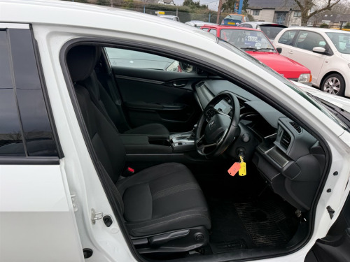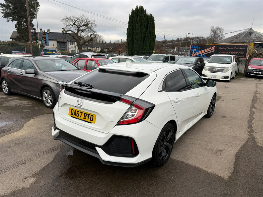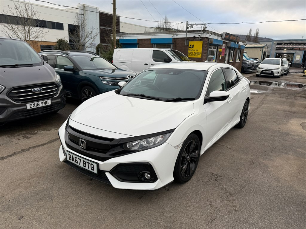 Honda Civic 1.0 SR Automatic in bright white. An absolutely fantastic Civic here, just 52k miles from brand new. As you can imagine the car is in stunning condition and drives as good as it looks. Comes complete with Full Service History too, an incredibly well cared for car. This 2017 model is a versatile hatchback, boasting a fuel-efficient 1.0L petrol engine and automatic transmission, making it an excellent choice for both city driving and longer journeys. The sleek white exterior not only enhances its aesthetic appeal but also reflects the modern design ethos that Honda is known for. Great spec too including Sat-Nav, Reversing Camera, Bluetooth Hands Free, Bluetooth Audio Streaming, DAB Radio, USB, Cruise Control, Dual Zone Climate Control, Parking Sensors, A/C, Alloy Wheels etc. Don’t miss out on this fantastic opportunity to own a Honda Civic that combines safety, comfort, and technology. Contact us to book a test drive today or call 02920885149. 12v Socket,Adjustable Steering Wheel,Air Conditioning,Alarm,Alloy Wheels,Anti Lock Brakes,Auto On Headlights,Aux Input,Bluetooth Audio Streaming,Bluetooth Telephone Hands Free,CD Radio,Central Locking,Climate Control,Cloth Upholstery,Cruise Control,Cupholders,DAB Radio,Driver Airbag,Electric & Heated Door Mirrors,Front & Rear Electric Windows,Front Fog Lights,Fuel Computer,Height Adjustable Drivers Seat,Immobiliser,ISOFIX,Multiple Airbags,Passenger Airbag,Power Assisted Steering,Remote Central Locking,Rear Parking Sensor,Reversing Camera,Satellite Navigation,Split Folding Rear Seats,Traction Control,Trip Computer,Tyre Pressure Monitor,USB