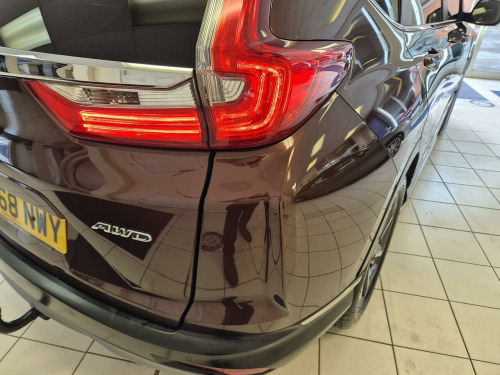 . 2x USB Front, 2x USB Rear - Charge Only, Accessory Socket - Centre Console, Accessory Socket - Front, Accessory Socket - Luggage Compartment, Digital Audio Broadcast - DAB, ECall, Honda CONNECT with GARMIN Navigation, Integrated Bluetooth Hands Free Telephone - HFT, Intelligent Multi Info Display - i-MID, Shark Fin Antenna, Speakers x9, Blind Spot Information including Cross Traffic Monitor, Deflate Warning System - DWS, ECON Mode, Forward Collision Warning - FCW, Head Up Display, Intelligent Adaptive Cruise Control, Lane Departure Warning - LDW, Parking Sensors - 4 x Front and 4 x Rear, Rear View Camera, Road Departure Mitigation, Shift Indicator Light, Traffic Sign Recognition System, 19in Alloy Wheels, AWD Emblem Rear, Body Colour Exterior Door Handles, Door Mirrors - Aspheric, Electric Windows - Remote Key Fob, Electrically Retractable Door Mirrors, Exterior Mirror Tilt for Reverse, Panoramic Glass Roof - Opening, Power Windows - Front and Rear, Privacy Glass, Roof Rails, Spare Temper Tyre, Tailgate Spoiler Body Coloured, Tyres 235/55 R19, Active Cornering Lights - ACL, Daytime Running Lights - LED, Front Fog Lights - LED, Headlights - Auto On-Off Timer - Coming-Leaving Home Function, Headlights - Dusk Sensor, High Beam Support System - HSS, LED Headlights, Rear Combi LED Lights, 60-40 Split Fold Rear Seats with One Motion Fold Down, Ambient Light - Driver-Passenger Footwell - Door Handle, Ambient Light - Roof, Armrest - Rear Centre, Auto Dimming Rear View Mirror, Boot Light, Cargo Net Hook, Climate Control Dual Auto Air Conditioning, Courtesy Light - Front, Driver and Front Passenger Seat Armrest - Console Style, Driver Seat Power Adjust - 8 Way with Driver Memory, Driver Seat Power Lumbar Adjustment, Drivers Seat Back Pocket, Electric Windows - DR-AS One Touch Up-Down, Front Seats - Heated, Front Windshield De-icer - Wipers Area, Glove Box Light, Hands Free Power Tailgate, Instrument Panel - Garnish Wood Film, Leather Shift Knob, Map Light - Front, Paddle Shift, Passenger Seat Back Pocket, Passenger Seat Manual Height Adjustment, Rain Sensing Windscreen Wipers, Rear A-C Vent, Rear Heated Seats, Rear One Touch Up-Down Power Windows, Rear Reading Light, Remote Retractable Door Mirrors - Key Fob Operation, Seats - Passengers Power Lumbar Adjustment, Silver Interior Door Handles, Steering Wheel - Heated, Steering Wheel - Leather, Steering Wheel - Remote Audio Controls, Steering Wheel - Tilt and Telescopic Adjustment, Sunglasses Box with Mirror, Sunvisor Vanity Mirrors with Illumination, Tonneau Cover, Whiplash Lessening Front Headrests, Intelligent Speed Limiter, Power Assisted Steering - Electric, ABS - Anti Lock Braking System, Agile Handling Assist, Airbag - Front Side, Airbag - Passenger SRS with Cut Off Switch, Airbag - Side Curtain - Front and Rear, BA - Brake Assist, Collision Mitigation Braking System - CMBS, Driver SRS Airbag - Single, EBD - Electronic Brakeforce Distribution, Electronic Parking Brake with Automatic Brake Hold, Emergency Stop Signal, Front Seat Belts with Emergency Locking Retractor - ELR, Hill Start Assist - HSA, Immobiliser System, ISOFIX Points, Lane Keep Assist System, Low Speed Following, Rear Seat Belts with Emergency Locking Retractor - ELR, Security Alarm System, Smart Entry and Start, Super Locking, Trailer Stability Assist - TSA, Ultrasonic Sensor and Tilt Sensor, VSA - Vehicle Stability Assist, Agate Brown, Detachable Tow Bar Kit, Leather - Black.