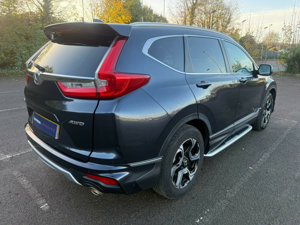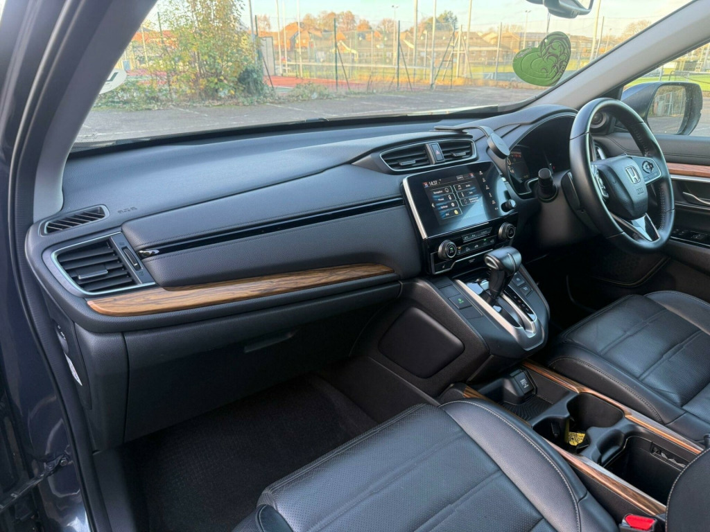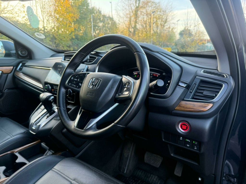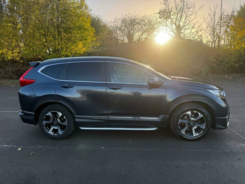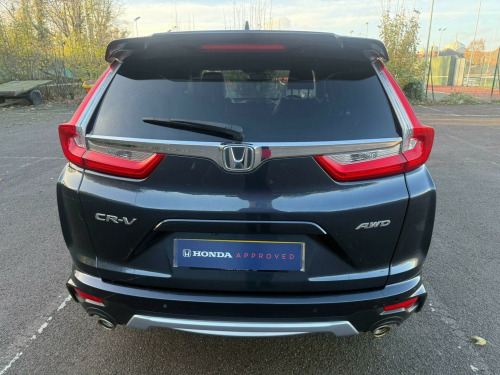 FREE UK DELIVERY AVAILABLEThis 2019 Honda CR-V VTEC Turbo SR offers exceptionally low mileage for its age, having covered just 34816 miles. This Euro 6 compliant, four wheel drive model is powered by an efficient 1.5 litre petrol engine and features a versatile 7 seat layout. The SR trim level enhances your driving experience with notable features such as Blind Spot Information including Cross Traffic Monitor with Blind Spot Assistance, ensuring greater awareness of your surroundings. For comfort, the front seats are heated, and parking is made easier with 4 front and 4 rear parking sensors.Further enhancing this Honda CR-V are its automatic dusk sensing headlights, which illuminate the road ahead when needed. The Honda CONNECT system with GARMIN Navigation provides seamless integration with your smartphone through Android Auto and Apple CarPlay, keeping you connected and on the right path. These features collectively demonstrate how this particular CR-V stands out, offering a refined and well equipped driving experience compared to other vehicles in its class.. 18in Alloy Wheels - Black, 2x USB Front, 2x USB Rear - Charge Only, 60-40 Split Fold Rear Seats with One Motion Fold Down, ABS - Anti Lock Braking System, AWD Emblem Rear, Accessory Socket - Centre Console, Accessory Socket - Front, Accessory Socket - Luggage Compartment, Active Cornering Lights - ACL, Agile Handling Assist, Airbag - Front Side, Airbag - Passenger SRS with Cut Off Switch, Airbag - Side Curtain - Front and Rear, Ambient Light - Driver-Passenger Footwell - Door Handle, Armrest - Rear Centre, Auto Dimming Rear View Mirror, BA - Brake Assist, Blind Spot Information including Cross Traffic Monitor, Body Colour Exterior Door Handles, Boot Light, Climate Control Dual Auto Air Conditioning, Collision Mitigation Braking System - CMBS, Courtesy Light - Front, Daytime Running Lights - LED, Deflate Warning System - DWS, Digital Audio Broadcast - DAB, Door Mirrors - Aspheric, Driver SRS Airbag - Single, Driver Seat Manual Height Adjustment, Driver Seat Power Lumbar Adjustment, Driver and Front Passenger Seat Armrest - Console Style, Drivers Seat Back Pocket, EBD - Electronic Brakeforce Distribution, ECON Mode, ECall, Electric Windows - DR-AS One Touch Up-Down, Electric Windows - Remote Key Fob, Electrically Retractable Door Mirrors, Electronic Parking Brake with Automatic Brake Hold, Emergency Stop Signal, Exterior Mirror Tilt for Reverse, Forward Collision Warning - FCW, Front Fog Lights - LED, Front Seat Belts with Emergency Locking Retractor - ELR, Front Seats - Heated, Front Windshield De-icer - Wipers Area, Glove Box Light, Headlights - Auto On-Off Timer - Coming-Leaving Home Function, Headlights - Dusk Sensor, High Beam Support System - HSS, Hill Start Assist - HSA, Honda CONNECT with GARMIN Navigation, ISOFIX Points, Immobiliser System, Instrument Panel - Garnish Wood Film, Integrated Bluetooth Hands Free Telephone - HFT, Intelligent Adaptive Cruise Control, Intelligent Multi Info Display - i-MID, Intelligent Speed Limiter, LED Headlights, Lane Departure Warning - LDW, Lane Keep Assist System, Leather Shift Knob, Low Speed Following, Map Light - Front, Paddle Shift, Parking Sensors - 4 x Front and 4 x Rear, Passenger Seat Back Pocket, Passenger Seat Manual Height Adjustment, Power Assisted Steering - Electric, Power Windows - Front and Rear, Privacy Glass, Rain Sensing Windscreen Wipers, Rear A-C Vent, Rear Combi LED Lights, Rear One Touch Up-Down Power Windows, Rear Reading Light, Rear Seat Belts with Emergency Locking Retractor - ELR, Rear View Camera, Remote Retractable Door Mirrors - Key Fob Operation, Road Departure Mitigation, Roof Rails, Seats - Passengers Power Lumbar Adjustment, Security Alarm System, Shark Fin Antenna, Shift Indicator Light, Silver Interior Door Handles, Smart Entry and Start, Spare Temper Tyre, Speakers x8, Steering Wheel - Leather, Steering Wheel - Remote Audio Controls, Steering Wheel - Tilt and Telescopic Adjustment, Sunglasses Box with Mirror, Sunvisor Vanity Mirrors with Illumination, Super Locking, Tailgate Spoiler Body Coloured, Traffic Sign Recognition System, Trailer Stability Assist - TSA, Tyres 235/60 R18, Ultrasonic Sensor and Tilt Sensor, VSA - Vehicle Stability Assist, Whiplash Lessening Front Headrests.