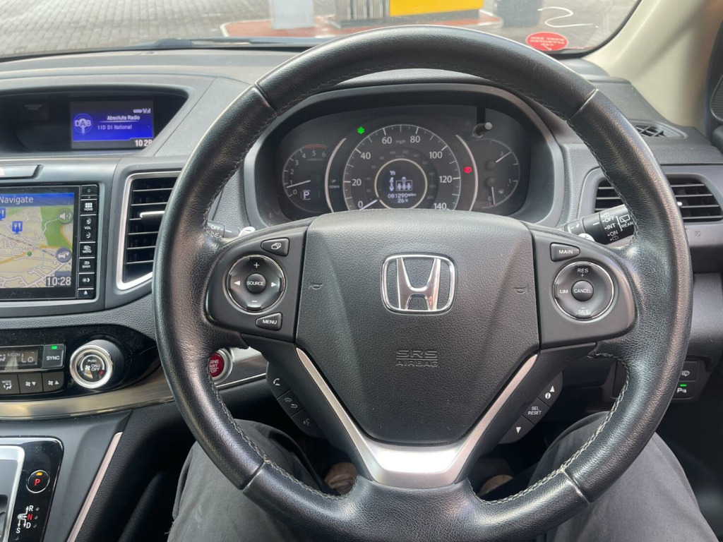 With only two previous owners and low mileage for its age at 81290 miles, this 2015 Honda CR-V i-DTEC EX is a great example of a reliable SUV. The CR-V comes with a 1.6L diesel engine and a four-wheel drive drivetrain. This vehicle has a clear vehicle history check and is Euro 6 emission class compliant. The MOT is valid until March 2026. The EX trim includes smart keyless entry and start, rear parking sensors for parking assistance, and bi-HID headlights with auto levelling. The dual-zone climate control ensures a comfortable environment, and the panoramic glass roof adds an open feel to the cabin. , This CR-V stands out with its fuel economy of 53 mpg, which means lower running costs compared to similar vehicles. It also boasts a large boot space, making it more practical than other cars in its class.
