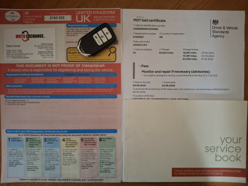 We are Honda specialists . Complimentary warranty included with all our retail cars .A very nice example of the versatile CRV , fully equipped in the ever popular EX trim benefiting from the desireable 1.6 EarthDreams Diesel/ 9-Speed automatic drivetrain and a mixed Honda/specialist service history (X8 Stamps), The best selling SUV on the planet the CRV is the perfect blend of comfort,economy,performance and of course Hondas legendary reliability . Great spec :Full leather , heated seats ,Satnav , Climate control ,panoramic sunroof , cruise control ,rear parking camera, touch screen DAB radio/CD with aux input & Bluetooth , electric windows , remote locking ,headlamp washers , multi function steering wheel , 18 alloy wheels , centre armrest , ABS , traction control . Superb throughout ..**Fresh health check/service with an independent specialist workshop**fresh MOT**HPI Checked**Best prices for part exchange cars/motorcycles**Nationwide delivery**Tailored comprehensive warranty packages ** Test drives/Inspections welcome**Cars and motorcycles always required**Please call anytime**Visit our website www.moto-exchange.co.uk for full stock listing**Facebook : Moto Exchange Fleet*