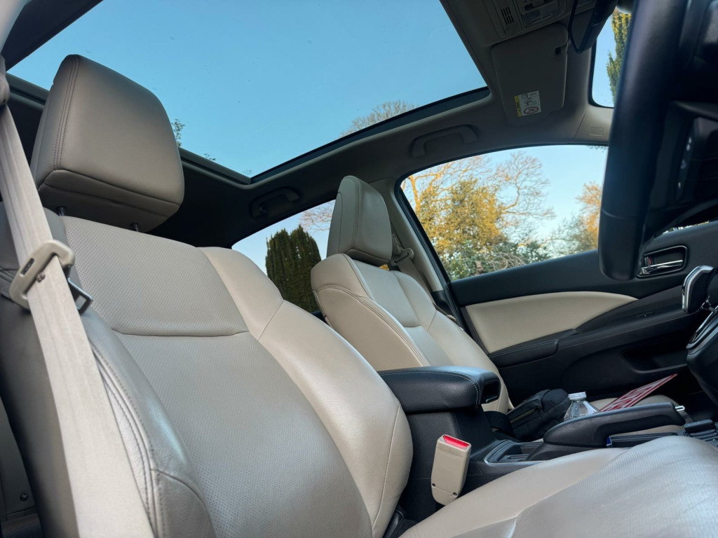 GLASS PANORAMIC ROOF - HONDA CONNECT WITH GARMIN NAVIGATION AND CD PLAYER - REAR-VIEW CAMERA - HEATED FRONT SEATS - FRONT AND REAR PARKING SENSORS - CRUISE CONTROL WITH SPEED LIMITER - FRONT COMFORT SEATS - ECON MODE - FULL LEATHER - REAR ISOFIX PREPARATION - ELECTRIC-RETRACTABLE DOOR MIRRORS - 60:40 SPLIT FOLDING 2ND ROW SEATS - DUAL ZONE CLIMATE CONTROL - DAB DIGITAL RADIO - EURO 6 / ULEZ COMPLIANT 6 months AA warranty 12 months breakdown cover 5 days drive away insurance BUY ONLINE CLICK AND COLLECT HOME DELIVERY AVAILABLE. The Honda CR-V 1.6 i-DTEC EX is a versatile and well-equipped SUV, offering a perfect balance of performance, comfort, and advanced features. Powered by a 1.6-litre i-DTEC diesel engine, it delivers impressive fuel efficiency and a smooth driving experience, making it ideal for both urban commutes and long-distance travel. The EX trim enhances the premium feel with a panoramic sunroof, flooding the cabin with natural light for a more open and airy drive. Heated front seats provide extra comfort in colder weather, while the Honda CONNECT system with Garmin navigation keeps you on track with ease. For added convenience, the rear-view camera and front & rear parking sensors make manoeuvring effortless. With a spacious, high-quality interior, advanced technology, and a blend of practicality and luxury, the Honda CR-V EX is a reliable and stylish, ip computer, brake assist, privacy glass, front fog lights, roof rails, spare wheel