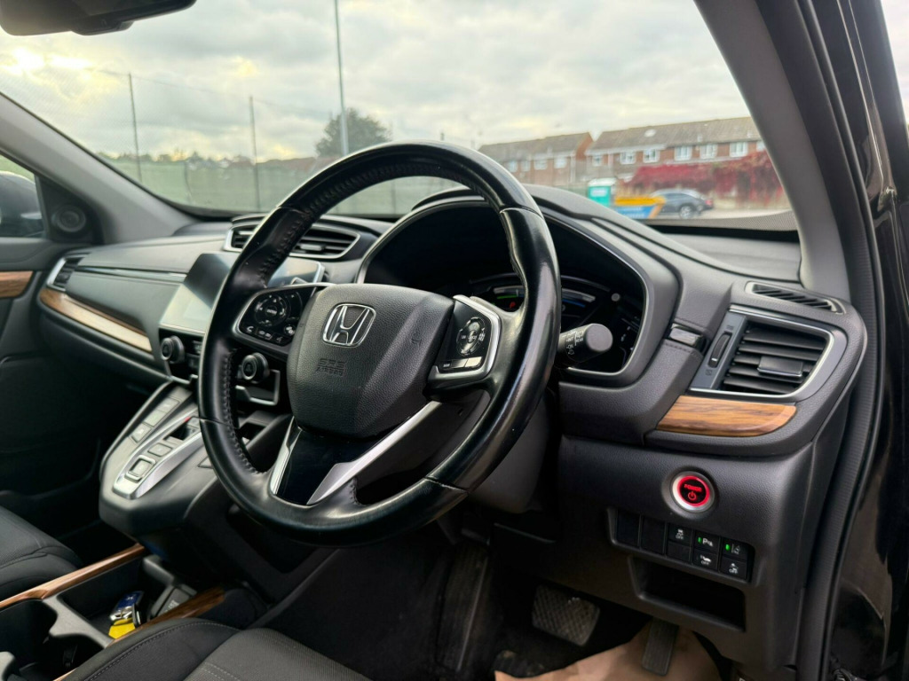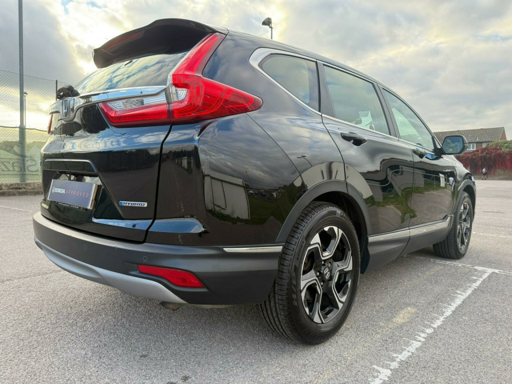 This 2020 Honda CR-V h i-MMD SE is a superb example, having been owned by just one careful keeper since new. It boasts a responsive 2.0 litre petrol hybrid engine, meeting Euro 6 emissions standards, and comes equipped with the SE trim level. For your convenience, it features Smart Entry and Start for keyless access, along with Dual Zone Climate Control to keep everyone comfortable. Navigating and staying connected is effortless thanks to the Honda CONNECT system with GARMIN Navigation, compatible with both Android Auto and Apple CarPlay.Experience impressive performance with an acceleration of 0 to 62 miles per hour in just 8.6 seconds, demonstrating its capability. This CR-V also offers practical advantages over many other vehicles in its class, including Intelligent Adaptive Cruise Control for relaxed journeys and comprehensive parking assistance with four front and four rear parking sensors. Furthermore, you will appreciate the generous boot space, making it ideal for families and everyday life.. 18in Alloy Wheels - Black, 2x USB Front, 2x USB Rear - Charge Only, 60-40 Split Fold Rear Seats with One Motion Fold Down, ABS - Anti Lock Braking System, Accessory Socket - Centre Console, Accessory Socket - Front, Accessory Socket - Luggage Compartment, Agile Handling Assist, Airbag - Front Side, Airbag - Passenger SRS with Cut Off Switch, Airbag - Side Curtain - Front and Rear, Armrest - Rear Centre, Auto Dimming Rear View Mirror, BA - Brake Assist, Body Colour Exterior Door Handles, Boot Light, Cargo Net Hook, Climate Control Dual Auto Air Conditioning, Collision Mitigation Braking System - CMBS, Courtesy Light - Front, Daytime Running Lights - LED, Deflate Warning System - DWS, Digital Audio Broadcast - DAB, Door Mirrors - Aspheric, Driver SRS Airbag - Single, Driver Seat Manual Height Adjustment, Driver Seat Power Lumbar Adjustment, Driver and Front Passenger Seat Armrest - Console Style, Drivers Seat Back Pocket, EBD - Electronic Brakeforce Distribution, ECON Mode, ECall, Electric Windows - DR-AS One Touch Up-Down, Electric Windows - Remote Key Fob, Electrically Retractable Door Mirrors, Electronic Parking Brake with Automatic Brake Hold, Emergency Stop Signal, Exterior Mirror Tilt for Reverse, Forward Collision Warning - FCW, Front Fog Lights - LED, Front Seat Belts with Emergency Locking Retractor - ELR, Glove Box Light, Headlights - Auto On-Off Timer - Coming-Leaving Home Function, Headlights - Dusk Sensor, High Beam Support System - HSS, Hill Start Assist - HSA, Honda CONNECT with GARMIN Navigation, Hybrid Emblem, ISOFIX Points, Immobiliser System, Instrument Panel - Garnish Wood Film, Integrated Bluetooth Hands Free Telephone - HFT, Intelligent Adaptive Cruise Control, Intelligent Multi Info Display - i-MID, Intelligent Speed Limiter, LED Headlights, Lane Departure Warning - LDW, Lane Keep Assist System, Low Speed Following, Map Light - Front, Paddle Shift, Parking Sensors - 4 x Front and 4 x Rear, Passenger Seat Back Pocket, Power Assisted Steering - Electric, Power Windows - Front and Rear, Rain Sensing Windscreen Wipers, Rear A-C Vent, Rear Combi LED Lights, Rear One Touch Up-Down Power Windows, Rear Reading Light, Rear Seat Belts with Emergency Locking Retractor - ELR, Rear View Camera, Remote Retractable Door Mirrors - Key Fob Operation, Road Departure Mitigation, Security Alarm System, Shark Fin Antenna, Silver Interior Door Handles, Smart Entry and Start, Speakers x9, Steering Wheel - Leather, Steering Wheel - Remote Audio Controls, Steering Wheel - Tilt and Telescopic Adjustment, Sunglasses Box with Mirror, Sunvisor Vanity Mirrors with Illumination, Super Locking, Tailgate Spoiler Body Coloured, Tonneau Cover, Traffic Sign Recognition System, Trailer Stability Assist - TSA, Tyre Repair Kit, Tyres 235/60 R18, Ultrasonic Sensor and Tilt Sensor, VSA - Vehicle Stability Assist, Whiplash Lessening Front Headrests.