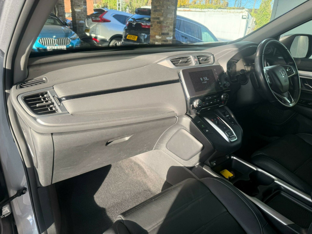 This 2021 Honda CR-V h i-MMD SR offers an exceptional ownership proposition with its remarkably low mileage of just 24171 miles, having been cared for by only one owner. This Euro 6 compliant, Four Wheel Drive model boasts a responsive 2.0L Petrol Hybrid engine, delivering an impressive 0-62mph acceleration in 9.0 seconds. Inside, you'll find comfort and convenience with Dual Auto Air Conditioning, a Dusk Sensor for automatic headlights, and Integrated Bluetooth Hands Free Telephone for seamless connectivity.Further enhancing your driving experience, this CR-V SR is equipped with 4 front and 4 rear Parking Sensors, making manoeuvring effortless. The Blind Spot Information system, including Cross Traffic Monitor, provides an extra layer of safety by alerting you to potential hazards. You'll also appreciate the generous boot space, perfect for all your luggage and shopping needs. These features collectively demonstrate how this particular Honda CR-V stands out from others in its class, offering a refined and practical driving solution.. 18in Alloy Wheels - Black, 2x USB Front, 2x USB Rear - Charge Only, 60-40 Split Fold Rear Seats with One Motion Fold Down, ABS - Anti Lock Braking System, AWD Emblem Rear, Accessory Socket - Centre Console, Accessory Socket - Front, Accessory Socket - Luggage Compartment, Active Cornering Lights - ACL, Agile Handling Assist, Airbag - Front Side, Airbag - Passenger SRS with Cut Off Switch, Airbag - Side Curtain - Front and Rear, Ambient Light - Driver-Passenger Footwell - Door Handle, Armrest - Rear Centre, Auto Dimming Rear View Mirror, BA - Brake Assist, Blind Spot Information including Cross Traffic Monitor, Body Colour Exterior Door Handles, Boot Light, Cargo Net Hook, Climate Control Dual Auto Air Conditioning, Collision Mitigation Braking System - CMBS, Courtesy Light - Front, Daytime Running Lights - LED, Deflate Warning System - DWS, Digital Audio Broadcast - DAB, Door Mirrors - Aspheric, Driver SRS Airbag - Single, Driver Seat Manual Height Adjustment, Driver Seat Power Lumbar Adjustment, Driver and Front Passenger Seat Armrest - Console Style, Drivers Seat Back Pocket, EBD - Electronic Brakeforce Distribution, ECON Mode, ECall, Electric Windows - DR-AS One Touch Up-Down, Electric Windows - Remote Key Fob, Electrically Retractable Door Mirrors, Electronic Parking Brake with Automatic Brake Hold, Emergency Stop Signal, Exterior Mirror Tilt for Reverse, Forward Collision Warning - FCW, Front Fog Lights - LED, Front Seat Belts with Emergency Locking Retractor - ELR, Front Seats - Heated, Front Windshield De-icer - Wipers Area, Glove Box Light, Headlights - Auto On-Off Timer - Coming-Leaving Home Function, Headlights - Dusk Sensor, High Beam Support System - HSS, Hill Start Assist - HSA, Honda CONNECT with GARMIN Navigation, Hybrid Emblem, ISOFIX Points, Immobiliser System, Instrument Panel - Garnish Wood Film, Integrated Bluetooth Hands Free Telephone - HFT, Intelligent Adaptive Cruise Control, Intelligent Multi Info Display - i-MID, Intelligent Speed Limiter, LED Headlights, Lane Departure Warning - LDW, Lane Keep Assist System, Low Speed Following, Map Light - Front, Paddle Shift, Parking Sensors - 4 x Front and 4 x Rear, Passenger Seat Back Pocket, Passenger Seat Manual Height Adjustment, Power Assisted Steering - Electric, Power Windows - Front and Rear, Privacy Glass, Rain Sensing Windscreen Wipers, Rear A-C Vent, Rear Combi LED Lights, Rear One Touch Up-Down Power Windows, Rear Reading Light, Rear Seat Belts with Emergency Locking Retractor - ELR, Rear View Camera, Remote Retractable Door Mirrors - Key Fob Operation, Road Departure Mitigation, Roof Rails, Seats - Passengers Power Lumbar Adjustment, Security Alarm System, Shark Fin Antenna, Silver Interior Door Handles, Smart Entry and Start, Speakers x9, Steering Wheel - Leather, Steering Wheel - Remote Audio Controls, Steering Wheel - Tilt and Telescopic Adjustment, Sunglasses Box with Mirror, Sunvisor Vanity Mirrors with Illumination, Super Locking, Tailgate Spoiler Body Coloured, Tonneau Cover, Traffic Sign Recognition System, Trailer Stability Assist - TSA, Tyre Repair Kit, Tyres 235/60 R18, Ultrasonic Sensor and Tilt Sensor, VSA - Vehicle Stability Assist, Whiplash Lessening Front Headrests.