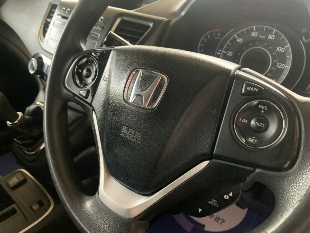 Two Keys, HPI Clear, Fully Inspected, This 2016 Honda CR-V i VTEC S is a great choice for those seeking reliability and practicality. Powered by a 2.0 litre petrol engine and meeting Euro 6 emissions standards, this S trim model offers a smooth driving experience. You'll appreciate the convenience of the dusk sensor which automatically activates the headlights, and the dual zone climate control ensures comfort for both driver and passengers. Stay connected on the go with the Bluetooth hands free telephone system.The CR-V stands out with its impressively large boot space, providing ample room for shopping, luggage, or sports equipment. Furthermore, this particular model benefits from a low insurance group, which can help to keep your running costs down. These features combined indicate that this Honda CR-V offers excellent value and a superior ownership experience compared to other vehicles in its class. in alloy wheels, abs - anti lock braking system, accessory socket - centre console, accessory socket - instrument panel, accessory socket - luggage compartment, airbag - front side, airbag - passenger srs with cut off switch, alarm system, ambient light - roof, armrest - front, armrest - rear centre, autonomous emergency braking, aux jack, bluetooth hands free telephone - hft, brake assist, cd-radio, cargo net hook, chrome rear license garnish, climate control - dual zone, courtesy door light, cruise control with speed limiter, daytime running lights, deflate warning system - dws, digital audio broadcast - dab, door handles - body coloured, door handles - interior chrome, door mirrors - aspheric, driver seat manual height adjustment, driver seat power lumbar adjustment, driver i-srs airbag, drivers seat back pocket, ebd - electronic brakeforce distribution, electric adjustable and heated door mirrors, electric windows - front one touch up-down, electric windows - front and rear, emergency stop signal, front map light, front seat belts with 2 stage emergency locking retractor - elr, halogen headlights, headlights - auto on-off timer - coming-leaving home function, headlights - coming-leaving home function, headlights - dusk sensor, high mount brake light, hill descent control - hdc, hill start assist - hsa, isofix points, ignition lock illumination, immobiliser system, instrument panel inlay - carbon fibre effect decoration, intelligent multi info display - i-mid, motion adaptive eps, passenger seat back pocket, power assisted steering - electric, rear seat belts with emergency locking retractor - elr, remote central locking with 2 jack knife keys, seats - 60:40 split folding 2nd row, shark fin antenna, shift indicator light, side curtain airbags, spare wheel, speakers x4, steering wheel - remote audio controls, steering wheel - tilt and telescopic adjustment, sunglasses holder, sunvisor vanity mirrors, tonneau cover, trailer stability assist - tsa, trip computer, trunk light, usb jack - ipod compatible, vsa - vehicle stability assist, whiplash lessening front headrests