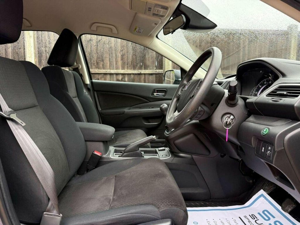 Surrey Specialist Cars are proud to present our lovely Honda CR-V S I-VTEC. This amazing car comes with Full Service History, finished in stunning metallic blue with grey contrast interior. The car will come with Long MOT so it will be ready to go. The 2L Petrol engine offers superb economy at over 38 MPG on combined cycle. Features Include Multifunction Steering Wheels, Satellite Navigation, Parking Camera, Trip Computer, Cruise Control, Stereo/Phone Control, DAB/FM Radio, HDMI Input, Bluetooth Audio, USB Input, AUX Input, IPod Input, Dual Zone Climate Control, Start/Stop System, 6 Speed Manual Gearbox, Two Cup Holders, 17 Inch Alloy Wheels and two Remote Control Keys to name a few. We are open 7 days a week, and prepare all of our cars to the highest standards. We have a Click & Collect option available, and can also arrange delivery on request. All cars are HPI clear and a full history report is provided with every car. We welcome any inspection and viewing is highly recommended. All cars are available with our AA warranty starting from just ?150 for 3 months. Debit and credit card facilities are available and we offer competitive finance packages. If you have any questions or would like to view any of our cars give us a call or drop us a message on whatsapp 01483 363 144 to arrange an appointment with one of our team. We also offer full bespoke walkaround videos on request. We are always on the lookout for high quality stock, if you have a car we are interested in we 17in Alloy Wheels, 60-40 Split Fold Rear Seats with One Mot, ABS - Anti Lock Braking System, Accessory Socket - Centre Console, Accessory Socket - Instrument Panel, Accessory Socket - Luggage Compartment, Airbag - Passenger SRS with Cut Off Swit, Airbag - Side Curtain - Front and Rear, Ambient Light - Roof, Armrest - Rear Centre, Aux Jack, BA - Brake Assist, Body Colour Exterior Door Handles, Boot Light, Cargo Net Hook, Chrome Rear License Garnish, City Brake Active System - CTBA, Climate Control Dual Auto Air Conditioni, Courtesy Light - Front, Cruise Control with Speed Limiter, Daytime Running Lights - LED, Deflate Warning System - DWS, Digital Audio Broadcast - DAB, Door Mirrors - Aspheri