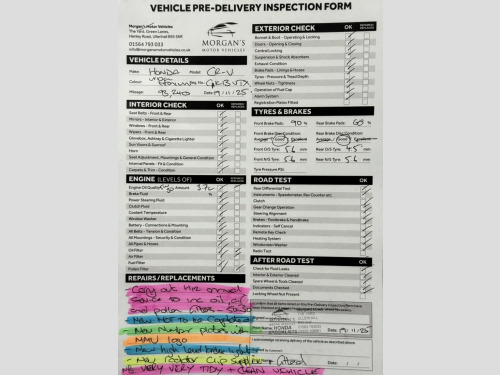 FIRSTLY A BIG THANK YOU FOR READING THIS AND READING OUR REVIEWS!, , FOR A FANTASTIC AND UNIQUE CUSTOMER EXPERIENCE PLEASE PLEASE POP US AN EMAIL OR GIVE US A CALL. , The fact that you are reading this means you have done your research, and will know by now that Morgans Motor vehicles are regarded nationally as the first place you come to purchase your used Honda. Here we have no silly sales and performance targets, instead we like to offer a very relaxed atmosphere to come and purchase your next vehicle. We believe that having a nice cup of coffee (decent Nespresso coffee I might add) without time restriction is something we offer all our customers. This is a premium level service that you will not receive at most car dealerships and this is something we are proud to offer. , , The Car: This well presented Honda CR-V has just 93,240 miles and ONLY TWO owners from new. She has been extremely well maintained and offers excellent value for money. She comes complete with two original keys and a full service history with 10 service stamps in her portfolio and the 11 service to be completed by ourselves. , Here at Morgans Motor Vehicles we like to offer our AA Dealer promise package (where applicable) which includes 12 Months AA Roadside assistance, a new set of registration plates, a 69 point health inspection, an MMV annual service and new MOT. During this robust process in our 69 point check, we give you a consumable forecast on the perishables such as tyres and brake pads and discs which can be seen on our photos. , Our MMV service consists of checking all lights and levels, as well as adding fully synthetic low ash Valvoline 5W30 Motor oil, a new oil filter air filter and pollen filter (pollen if applicable) to this lovely vehicle. This package is something that very few independents offer, and we believe adds exceptional value and most importantly peace of mind for you our customers . We can confirm that tyres are of good quality across both axles with 5.6mm on the front and 4-5mm on the rear. The brake pads are in good condition with 90% remaining to the front and 60% remaining to the rear with the brake discs in healthy condition. To complete our handover we will help the new owner by going through all relevant documents such as the V5 Registration certificate transfer and taxation, and in addition set up 6 months warranty for your convenience. To summarise a fantastic family vehicle with low running costs and insurance, makes the CR-V automatic an excellent purchase. , Please take the time to watch our video and view our high quality definition photos for details we provide that other professionals do not. Here at Morgans Motor Vehicles we pride our ourselves on the customer journey and experience. If you have not bought a vehicle from us before please take the time to read our dealer reviews on Google and Autotrader to get a really good understanding of how we work and how we prepare our vehicles. Our retail prices are examined daily to ensure all our vehicles are accurate to the market and represent best value for our customers. We have worked incredibly hard to get a great reputation based on our customer service and transparency.
