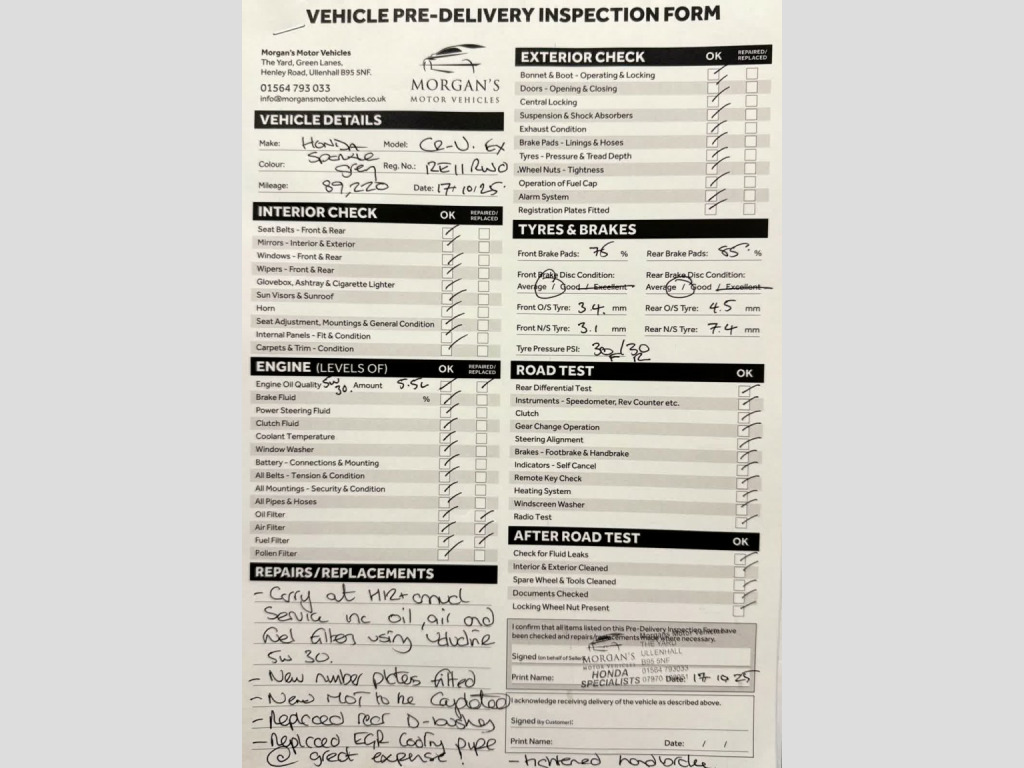 FIRSTLY A BIG THANK YOU for reading this important information. , The fact that you are reading this means you have done your research, and will know by now that Morgans Motor vehicles are regarded nationally as the first place you come to purchase your used Honda. Here we have no silly sales and performance targets, instead we like to offer a very relaxed atmosphere to come and purchase your next vehicle. We believe that having a nice cup of coffee (decent Nespresso coffee I might add) without time restriction is something we offer all our customers. This is a premium level service that you will not receive at most car dealerships and this is something we are proud to offer. , , The Car: This well presented Honda CR-V has just 89,196 miles and three owners from new. She has been extremely well maintained and offers excellent value for money. Here at Morgans Motor Vehicles we like to offer our AA Dealer promise package (where applicable) which includes 12 Months AA Roadside assistance, a new set of registration plates, a 69 point health inspection, an MMV annual service and new MOT. During this robust process in our 69 point check, we give you a consumable forecast on the perishables such as tyres and brake pads and discs which can be seen on our photos. , Our MMV service consists of checking all lights and levels, as well as adding fully synthetic low ash Valvoline 5W30 Motor oil, a new oil filter air filter and pollen filter (pollen if applicable) to this lovely vehicle. This package is something that very few independents offer, and we believe adds exceptional value and most importantly peace of mind for you our customers . We can confirm that tyres are of good quality across both axles with the brake pads and brake discs in healthy condition. To complete our handover we will help the new owner by going through all relevant documents such as the V5 Registration certificate transfer and taxation, and in addition set up 6 months warranty for your convenience. To summarise a fantastic family vehicle with low running costs and insurance, makes the CR-V diesel an excellent purchase. , Please take the time to watch our video and view our high quality definition photos for details we provide that other professionals do not. Here at Morgans Motor Vehicles we pride our ourselves on the customer journey and experience. If you have not bought a vehicle from us before please take the time to read our dealer reviews on Google and Autotrader to get a really good understanding of how we work and how we prepare our vehicles. Our retail prices are examined daily to ensure all our vehicles are accurate to the market and represent best value for our customers. We have worked incredibly hard to get a great reputation based on our customer service and transparency.