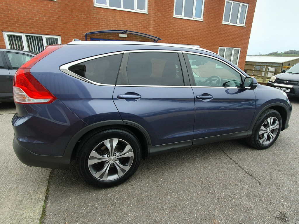 EXCEPTIONAL NEW SHAPE HONDA CR-V 2.2 I-DTEC DIESEL AUTOMATIC 5 DOOR FINISHED IN THE GREAT COLOUR COMBINATION OF DEEP OCEAN BLUE PEARLESCENT BODYWORK WHICH SHINES LIKE THE DAY IT WAS FIRST REGISTERED WITH PREMIUM MICHELIN TYRES ALL ROUND AND FULL BLACK LEATHER INTERIOR IN FANTASTIC CONDITION THROUGHOUT!THIS EXAMPLE HAS LIVED IN SOUTH WEST LONDON IT'S ENTIRE LIFE FROM IT'S JUST 2 OWNERS FROM NEW WITH UNRIVALLED CONDITION, OWNERSHIP AND SERVICE HISTORY!GREAT SERVICE HISTORY INTERVALS AT 7,906, 15,660, 21,694, 31,275, 39,032, 46,147, 52,675, 61,937, 76,720, 86.947 AND JUST SERVICED AT 97K MILES!COMING WITH OUR SALES PACKAGE OF MOT TO FEBRUARY 2027, HEALTH CHECK, 1 YEAR GUARANTEE, AA BREAKDOWN COVER, FULL INTERIOR AND EXTERIOR DETAILED VALET AND 2 FULLY REMOTE KEYS ALL IN THE PRICE! in alloy wheels, chrome rear license garnish, door handles - body coloured, door mirrors - aspheric, door mirrors - electric-retractable, electric windows - front and rear, electric windows - rear one touch up-down, electric windows - remote key fob, exterior mirror tilt for reverse, panoramic glass roof, privacy glass, roof rails, spare wheel, abs - anti lock braking system, active head restraints, airbag - front side, airbag - passenger srs with cut off switch, alarm system, brake assist, driver i-srs airbag, ebd - electronic brakeforce distribution, emergency stop signal, front seat belts with 2 stage emergency locking retractor - elr, hill descent control - hdc, hill start assist - hsa, isofix points, immobiliser system, rear seat belts with emergency locking retractor - elr, side curtain airbags, smart keyless entry and start, super locking, trailer stability assist - tsa, ultrasonic sensor, vsa - vehicle stability assist, accessory socket - centre console, accessory socket - instrument panel, accessory socket - luggage compartment, bluetooth hands free telephone - hft, cd-radio, digital audio broadcast - dab, hdd navigation, premium audio with subwoofer, shark fin antenna, speakers x6, usb jack - ipod compatible, video jack, active cornering lights - acl, daytime running lights, front fog lights, headlights - bi-hid with auto levelling, headlights - coming-leaving home function, headlights - dusk sensor, headlights - washers, high beam support system - hss, high mount brake light, ambient footwell light, ambient lighting, armrest - front, armrest - rear centre, auto dimming rear view mirror, cargo net hook, climate control - dual zone, courtesy door light, door handles - interior chrome, door step garnish - metallic, driver seat power lumbar adjustment, drivers seat back pocket, electric windows - front one touch up-down, front map light, front seats - heated, glove box light, ignition lock illumination, instrument panel inlay - silver alloy effect decoration, leather shift knob, passenger seat back pocket, passengers seat height adjustment, power tailgate, rain sensing windscreen wipers, rear a-c vent, remote retractable door mirrors, seats - 60:40 split folding 2nd row, seats - drivers 8-way power adjustment, seats - passengers power lumbar adjustment, steering wheel - leather, steering wheel - remote audio controls, steering wheel - tilt and telescopic adjustment, sunvisor vanity mirrors with illumination, tonneau cover, trunk light, unique interior inlay panels, cruise control with speed limiter, deflate warning system - dws, mid - multi info display, motion adaptive eps, parking sensors - front, parking sensors - rear, power assisted steering - electric, rear view parking camera, shift indicator light