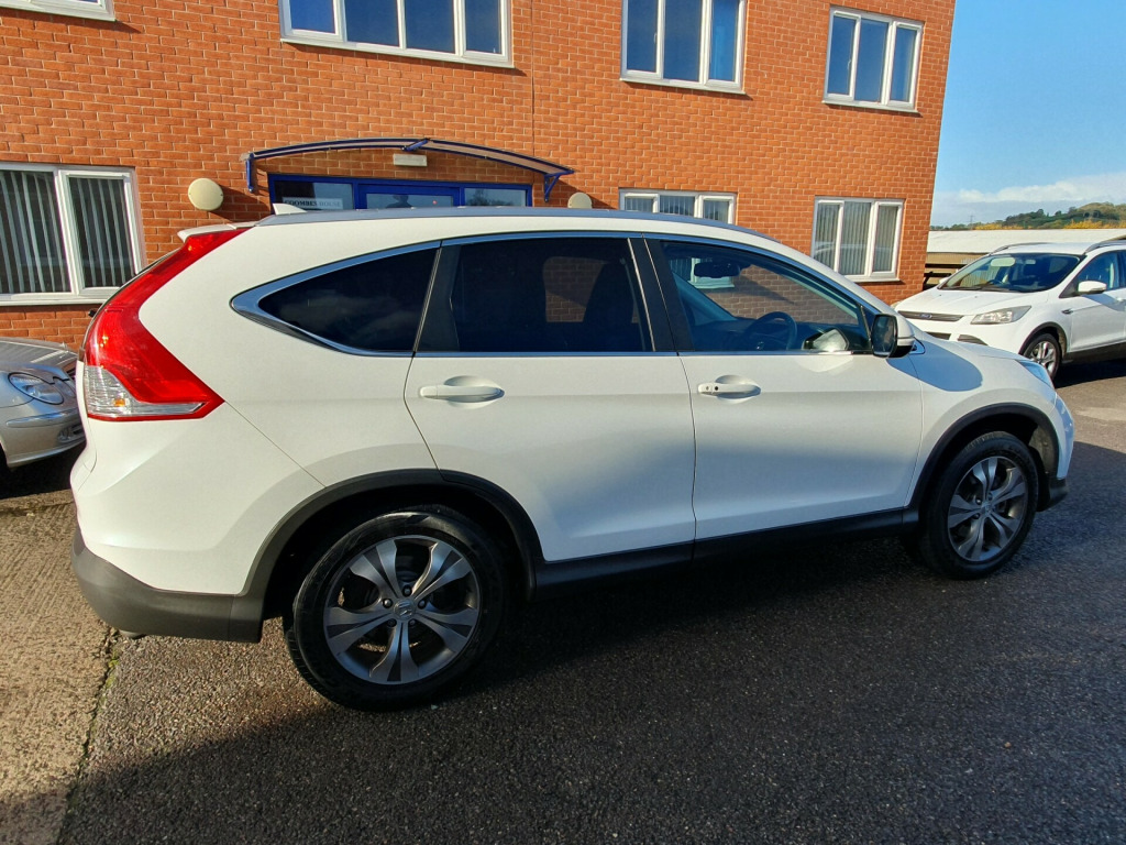 OUTSTANDING HONDA CR-V 2.2 I-DTEC DIESEL MANUAL EX 5 DOOR FINISHED IN THE GREAT COLOUR COMBINATION OF WHITE ORCHID BODYWORK WHICH SHINES LIKE THE DAY IT WAS FIRST REGISTERED AND FULL BLACK LEATHER INTERIOR IN FANTASTIC CONDITION THROUGHOUT!THIS TOP SPECIFICATION EX MODELCOMES READY TO GO WITH HAVING JUST BEEN SERVICED AND COMES WITH 13 SERVICES IN A FULLY STAMPED UP SERVICE BOOK! THE BEST OF IT'S KIND WITH THIS CONDITION, SERVICE HISTORY, OWNERSHIP AND SPECIFICATION!GREAT SERVICE HISTORY INTERVALS AT 8,798, 19,335, 30,988, 41,880, 48,810, 61,416, 64,000, 67,400, 70,000, 76,682, 85,000, 92,000 AND JUST SERVICED AT 101,500 MILES!COMING WITH OUR SALES PACKAGE OF READY TO, 1 YEAR GUARANTEE, AA BREAKDOWN COVER, FULL INTERIOR AND EXTERIOR DETAILED VALET, AND 2 KEYS ALL IN THE PRICE! in alloy wheels, chrome rear license garnish, door handles - body coloured, door mirrors - aspheric, door mirrors - electric-retractable, electric windows - front and rear, electric windows - rear one touch up-down, electric windows - remote key fob, exterior mirror tilt for reverse, panoramic glass roof, privacy glass, roof rails, spare wheel, abs - anti lock braking system, active head restraints, airbag - front side, airbag - passenger srs with cut off switch, alarm system, brake assist, driver i-srs airbag, ebd - electronic brakeforce distribution, emergency stop signal, front seat belts with 2 stage emergency locking retractor - elr, hill descent control - hdc, hill start assist - hsa, isofix points, immobiliser system, rear seat belts with emergency locking retractor - elr, side curtain airbags, smart keyless entry and start, super locking, trailer stability assist - tsa, ultrasonic sensor, vsa - vehicle stability assist, accessory socket - centre console, accessory socket - instrument panel, accessory socket - luggage compartment, bluetooth hands free telephone - hft, cd-radio, digital audio broadcast - dab, hdd navigation, premium audio with subwoofer, shark fin antenna, speakers x6, usb jack - ipod compatible, video jack, active cornering lights - acl, daytime running lights, front fog lights, headlights - bi-hid with auto levelling, headlights - coming-leaving home function, headlights - dusk sensor, headlights - washers, high beam support system - hss, high mount brake light, ambient footwell light, ambient lighting, armrest - front, armrest - rear centre, auto dimming rear view mirror, cargo net hook, climate control - dual zone, courtesy door light, door handles - interior chrome, door step garnish - metallic, driver seat power lumbar adjustment, drivers seat back pocket, electric windows - front one touch up-down, front map light, front seats - heated, glove box light, ignition lock illumination, instrument panel inlay - silver alloy effect decoration, leather shift knob, passenger seat back pocket, passengers seat height adjustment, power tailgate, rain sensing windscreen wipers, rear a-c vent, remote retractable door mirrors, seats - 60:40 split folding 2nd row, seats - drivers 8-way power adjustment, seats - passengers power lumbar adjustment, steering wheel - leather, steering wheel - remote audio controls, steering wheel - tilt and telescopic adjustment, sunvisor vanity mirrors with illumination, tonneau cover, trunk light, unique interior inlay panels, cruise control with speed limiter, deflate warning system - dws, mid - multi info display, motion adaptive eps, parking sensors - front, parking sensors - rear, power assisted steering - electric, rear view parking camera, shift indicator light