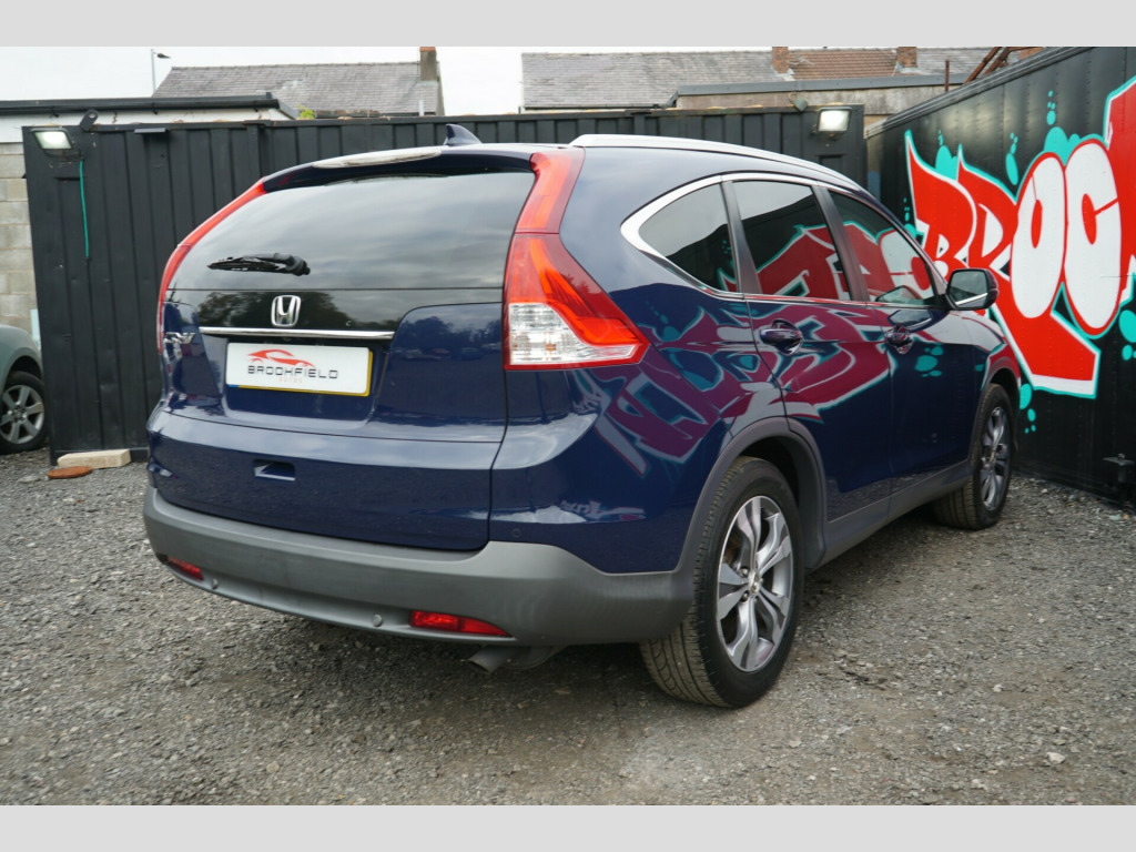 Brookfield Autos presents this 2013 Honda CR-V finished in Ocean Blue. This has recently come into stock as is being prepped and inspected. If you require any further information please get in touch. in alloy wheels, chrome rear license garnish, door handles - body coloured, door mirrors - aspheric, door mirrors - electric-retractable, electric windows - front and rear, electric windows - rear one touch up-down, electric windows - remote key fob, exterior mirror tilt for reverse, panoramic glass roof, privacy glass, roof rails, spare wheel, abs - anti lock braking system, active head restraints, airbag - front side, airbag - passenger srs with cut off switch, alarm system, brake assist, driver i-srs airbag, ebd - electronic brakeforce distribution, emergency stop signal, front seat belts with 2 stage emergency locking retractor - elr, hill descent control - hdc, hill start assist - hsa, isofix points, immobiliser system, rear seat belts with emergency locking retractor - elr, side curtain airbags, smart keyless entry and start, super locking, trailer stability assist - tsa, ultrasonic sensor, vsa - vehicle stability assist, accessory socket - centre console, accessory socket - instrument panel, accessory socket - luggage compartment, bluetooth hands free telephone - hft, cd-radio, digital audio broadcast - dab, hdd navigation, premium audio with subwoofer, shark fin antenna, speakers x6, usb jack - ipod compatible, video jack, active cornering lights - acl, daytime running lights, front fog lights, headlights - bi-hid with auto levelling, headlights - coming-leaving home function, headlights - dusk sensor, headlights - washers, high beam support system - hss, high mount brake light, ambient footwell light, ambient lighting, armrest - front, armrest - rear centre, auto dimming rear view mirror, cargo net hook, climate control - dual zone, courtesy door light, door handles - interior chrome, door step garnish - metallic, driver seat power lumbar adjustment, drivers seat back pocket, electric windows - front one touch up-down, front map light, front seats - heated, glove box light, ignition lock illumination, instrument panel inlay - silver alloy effect decoration, leather shift knob, passenger seat back pocket, passengers seat height adjustment, power tailgate, rain sensing windscreen wipers, rear a-c vent, remote retractable door mirrors, seats - 60:40 split folding 2nd row, seats - drivers 8-way power adjustment, seats - passengers power lumbar adjustment, steering wheel - leather, steering wheel - remote audio controls, steering wheel - tilt and telescopic adjustment, sunvisor vanity mirrors with illumination, tonneau cover, trunk light, unique interior inlay panels, cruise control with speed limiter, deflate warning system - dws, mid - multi info display, motion adaptive eps, parking sensors - front, parking sensors - rear, power assisted steering - electric, rear view parking camera, shift indicator light