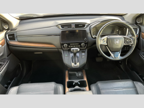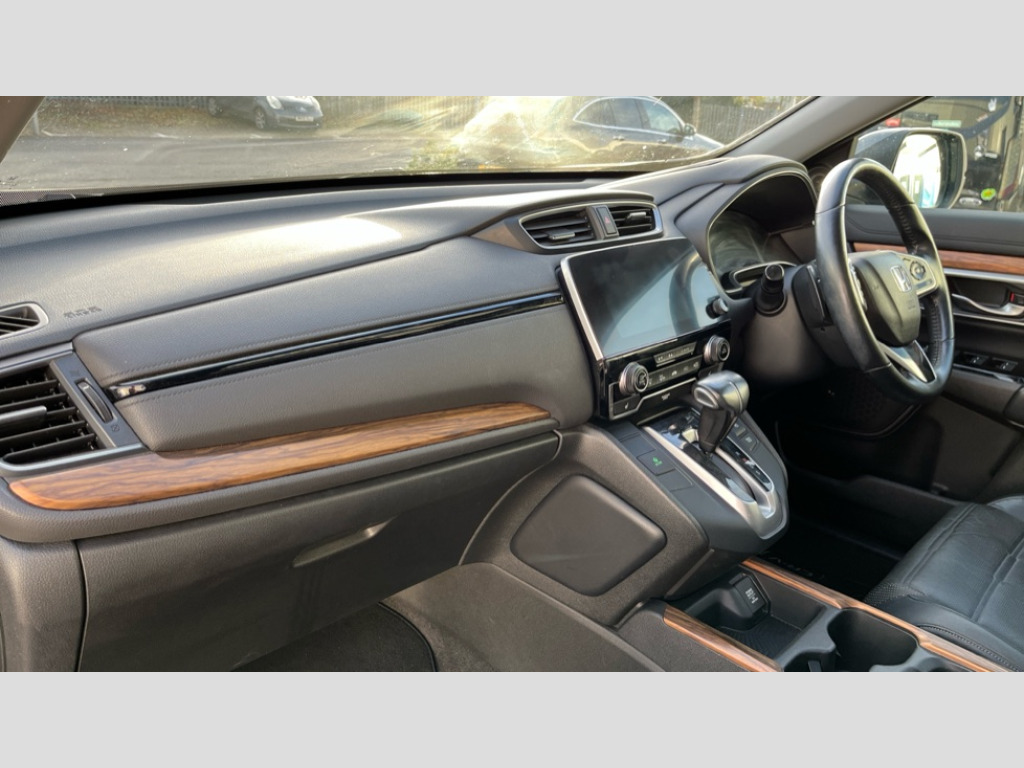 Honda CR-V 1.5 VTEC Turbo EX 5dr CVT Adaptive cruise control, BLIS (Blind Spot Information System) with dual power heated blind spot mirrors, Bluetooth hands free telephone connection, Connect with 7" touchscreen, Digital Radio, Mp3, Aha app integration, internet browsing, Economy mode, Electric power steering, Electric tailgate release, Emergency stop signalling system, Forward collision warning, Front and rear parking sensors, Head up Display, Intelligent multi info display, Lane departure warning system, Lane keep assist system, Rear view camera, Road departure mitigation, Service interval indicator, Speed limiter, Traffic sign recognition, Vehicle stability assist, 2 USB sockets in rear, 2x USB sockets in front, 9 speakers, DAB Digital radio, iPod connection, Steering wheel mounted controls, Subwoofer, Aspheric door mirrors, Auto dimming rear view mirror, Automatic headlights with dusk sensor, Body colour bumpers, Body colour door handles, Body colour roof rails, Chrome door sill plates, Chrome rear garnish, Cornering light, Daytime running lights, Door mirrors tilt when reversing, Electric front windows/one touch facility, Electric rear windows + one touch facility, Electrically adjustable and heated door mirrors, Electrically retractable door mirrors, Front windscreen de-icer, Headlight washers, HID Headlights, High beam assist, LED front fog lights, LED Headlights, LED rear lights, Panoramic opening glass sunroof, Privacy glass, Rain sensor, Rear wiper, Shark fin roof aerial, Trailer stability assist, Welcome home function, 60/40 split folding rear seat, 8 way electric adjustable drivers seat, Accessory sockets, Ambient interior lighting, AWD emblem rear, Boot light, Cargo hooks, Courtesy lights, Driver and passenger front seat pockets, Driver's electric adjustable lumbar support, Driver/passenger front seatback pockets, Driver/passenger sunvisors with illuminated vanity mirrors, Dual zone automatic climate control, Electric lumbar adjustment on passenger's seat, Footwell ambient lighting, Front centre armrest, Front map lights, Front passenger seat height adjust, Gear shift indicator, Glovebox light, Heated front seats, Heated rear seats, Heated steering wheel, Illuminated glovebox, Instrument panel with garnish wood film, Isofix child seat preparation, Leather gearknob, Leather upholstery, Paddle shift controls, Rear air vents, Rear centre armrest, Rear headrests, Rear reading lights, Silver interior door handles, Tilt/telescopic adjustable steering wheel, Tonneau cover, Trunk light, 5 x 3 point seatbelts, ABS/EBD, Anti-whiplash front headrests, Brake assist function, City safety braking system, Collision mitigation braking system, Deflation detection system, Driver airbag, Dual front SRS airbags, Electronic parking brake with auto hold, Front and rear curtain airbags, Front side airbags, Hill descent control, Hill start assist, Passenger airbag deactivate switch, Seatbelt warning, Honda super locks, Immobiliser, Remote keyless entry, Security alarm, Ultrasonic sensor and tilt sensor, Brushed alloy inlays, Temporary spare wheel