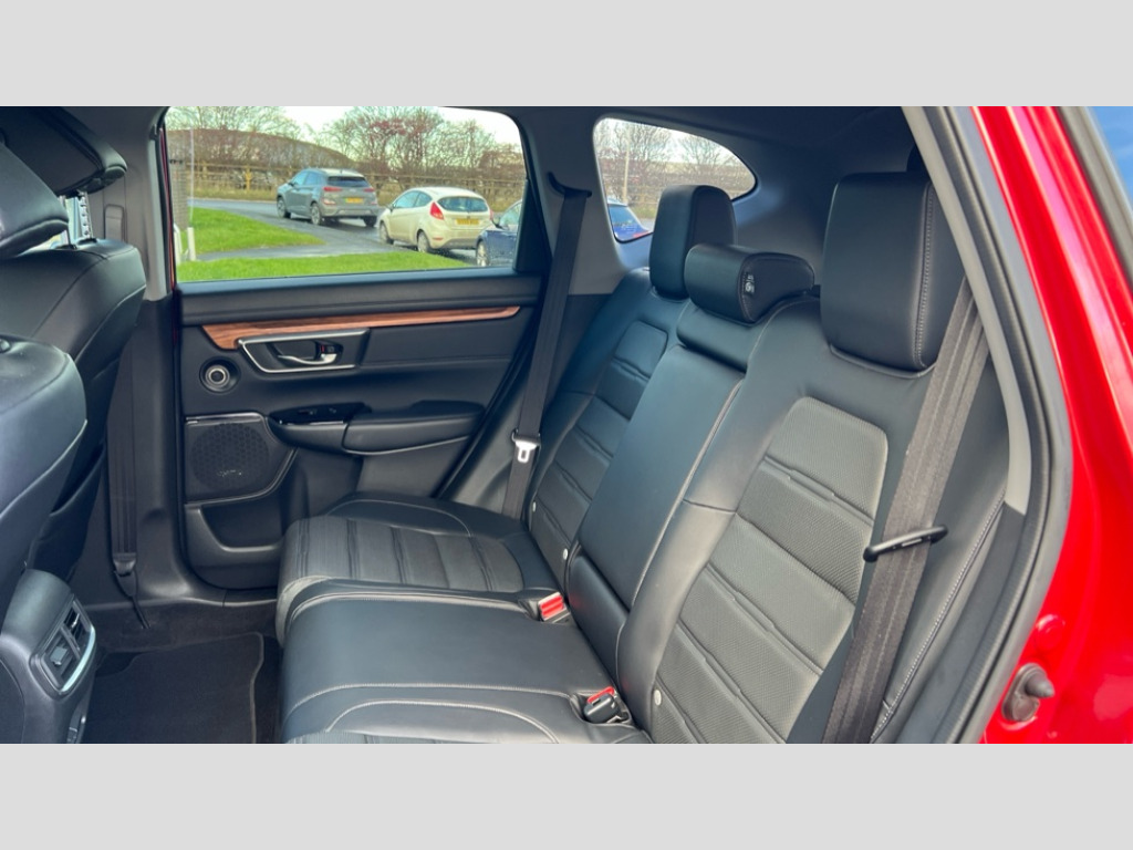 Honda CR-V 1.5 VTEC Turbo EX 5dr CVT Adaptive cruise control, BLIS (Blind Spot Information System) with dual power heated blind spot mirrors, Bluetooth hands free telephone connection, Connect with 7" touchscreen, Digital Radio, Mp3, Aha app integration, internet browsing, Economy mode, Electric power steering, Electric tailgate release, Emergency stop signalling system, Forward collision warning, Front and rear parking sensors, Head up Display, Intelligent multi info display, Lane departure warning system, Lane keep assist system, Rear view camera, Road departure mitigation, Service interval indicator, Speed limiter, Traffic sign recognition, Vehicle stability assist, 2 USB sockets in rear, 2x USB sockets in front, 9 speakers, DAB Digital radio, iPod connection, Steering wheel mounted controls, Subwoofer, Aspheric door mirrors, Auto dimming rear view mirror, Automatic headlights with dusk sensor, Body colour bumpers, Body colour door handles, Body colour roof rails, Chrome door sill plates, Chrome rear garnish, Cornering light, Daytime running lights, Door mirrors tilt when reversing, Electric front windows/one touch facility, Electric rear windows + one touch facility, Electrically adjustable and heated door mirrors, Electrically retractable door mirrors, Front windscreen de-icer, Headlight washers, HID Headlights, High beam assist, LED front fog lights, LED Headlights, LED rear lights, Panoramic opening glass sunroof, Privacy glass, Rain sensor, Rear wiper, Shark fin roof aerial, Trailer stability assist, Welcome home function, 60/40 split folding rear seat, 8 way electric adjustable drivers seat, Accessory sockets, Ambient interior lighting, AWD emblem rear, Boot light, Cargo hooks, Courtesy lights, Driver and passenger front seat pockets, Driver's electric adjustable lumbar support, Driver/passenger front seatback pockets, Driver/passenger sunvisors with illuminated vanity mirrors, Dual zone automatic climate control, Electric lumbar adjustment on passenger's seat, Footwell ambient lighting, Front centre armrest, Front map lights, Front passenger seat height adjust, Gear shift indicator, Glovebox light, Heated front seats, Heated rear seats, Heated steering wheel, Illuminated glovebox, Instrument panel with garnish wood film, Isofix child seat preparation, Leather gearknob, Leather upholstery, Paddle shift controls, Rear air vents, Rear centre armrest, Rear headrests, Rear reading lights, Silver interior door handles, Tilt/telescopic adjustable steering wheel, Tonneau cover, Trunk light, 5 x 3 point seatbelts, ABS/EBD, Anti-whiplash front headrests, Brake assist function, City safety braking system, Collision mitigation braking system, Deflation detection system, Driver airbag, Dual front SRS airbags, Electronic parking brake with auto hold, Front and rear curtain airbags, Front side airbags, Hill descent control, Hill start assist, Passenger airbag deactivate switch, Seatbelt warning, Honda super locks, Immobiliser, Remote keyless entry, Security alarm, Ultrasonic sensor and tilt sensor, Brushed alloy inlays, Temporary spare wheel