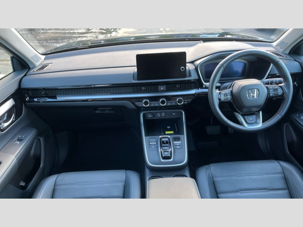 Honda CR-V 2.0 eHEV Advance 5dr eCVT 10.2" Multi information display, 4 x front and 4 x rear parking sensors, Active lane change assist, Adaptive cruise control with Cornering speed assist, Adjustable speed limiter, Agile handling assist, BLIS (Blind Spot Information System) with Cross Traffic Monitor, Bluetooth hands free telephone connection, Crossing traffic warning front, Drive mode (Econ, Normal, Snow, Sport), Driver attention monitoring system, E-call, eCall emergency call system, Electric power steering, Emergency stop signalling system, Forward collision warning, Handfree power tailgate with kick sensor and walk away close, Head up Display, HEV mode, Honda 360 sensing, Honda CONNECT with Navigation 9" touchscreen, AM/FM/DAB, Apple Carplay and Android Auto, live traffic info, Intelligent speed limiter, Lane change collision mitigation, Lane departure warning system, Lane keep assist system, Lane watch, Lead car departure notification system, Low speed following, Power meter, Road departure mitigation, Traffic jam assist, Traffic sign recognition, Wireless apple carplay, Wireless charging, Amplitude reactive damper, Vehicle stability assist, 12 speakers, 1X USB (A/2.5A) and 1x Charger (C/3A) on Front, Bose premium sound system, Centre speakers, DAB+ radio, Dashboard centre speaker, Front tweeters, Rear USB 2x Charger (C/3A), Steering wheel mounted controls, Subwoofer, Active cornering lights, Adaptive driving beam, Auto dimming rear view mirror, Auto headlight adjuster, Auto headlights, Auto wipers, Body colour bumpers, Body colour door handles, Body colour plus material colour roof spoiler, Body coloured shark fin antenna, Chrome + black paint grille, Electrically adjustable and heated door mirrors, Electrically folding door mirrors, Exhaust pipe finisher, Exterior mirror tilt for reverse, Front and rear electric windows, Front LED Indicator lights, Front turn type led with sequential, Headlight auto on/off timer, LED 3rd brake light, LED daytime running lights, LED front fog lights, LED Headlights, LED rear lights, Low gloss black window garnish, Multi view camera system in door mirrors, Panoramic opening glass sunroof, Privacy glass, Rain sensor, Rear side wing doors, Rear wiper, Roof rails, Trailer stability assist, Welcome home function, 3 seat bench in 2nd row, 4 way driver lumbar support, 4 way electrically adjustable passenger seat without height adjust, 60/40 split folding rear seat, 8 way electrically adjustable drivers seat + mirror memory, Accessory sockets in Front & Trunk, Air conditioning - Rear vent, Ambient light in roof, Cargo net hooks, Courtesy lights, Driver and front passenger seat armrests, Driver/passenger front seatback pockets, Driver/passenger sunvisors and vanity mirrors, Driver/passenger sunvisors with illuminated vanity mirrors, Dual zone automatic climate control, Film hairline interior panels, Footwell ambient interior light front and rear, Front and rear ambient light (door handle&door line) and front cup holder, Front centre armrest, Front map lights, Front ventilated seats, Genuine leather steering wheel, Heated front seats, Heated rear seats, Heated steering wheel, Hybrid emblem, I-Size ISO Fix Points, Instrument panel with garnish wood film, Leather upholstery, Light roof lining, Luggage floor box, Meter illumination, Normal pedals, Platinum chrome interior door handles, Rear centre armrest, Rear headrests, Rear reading lights, Reclining rear seats, Single front passenger seat, Sunglasses holder with mirror, Synthetic headrest, Tilt/telescopic adjustable steering wheel, Tonneau cover, Trunk light, Exclusive styling pack - CR-V, 5 x 3 point seatbelts, ABS/EBD, Anti-whiplash front headrests, Brake assist function, Collision mitigation braking system, Deflation detection system, Driver airbag, Driver SRS airbag (single stage inflation), Electronic parking brake with auto hold, Front and rear collision mitigation throttle control, Front and rear curtain airbags, Front and rear seat belts with emergency locking retractor (ELR), Front centre airbag, Front passenger airbag, Front side airbags, Hill descent control, Hill start assist, Knee airbags (DR) and (AS), Low speed brake system, Manual child lock in rear doors, Paddle deceleration control, Passenger SRS airbag with cut off switch, Rear side airbags, Honda super locks, Immobiliser, Mirrors and windows key fob operation, Remote central locking with 2 key fobs, Security alarm, Selectable door unlock, Smart entry + Smart start, Tilt sensors, Ultrasonic security sensor, Flat tyre solution temper tyre/repair kit