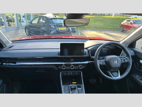 Honda CR-V 2.0 eHEV Advance 5dr eCVT 10.2" Multi information display, 4 x front and 4 x rear parking sensors, Active lane change assist, Adaptive cruise control, Adjustable speed limiter, Agile handling assist, BLIS (Blind Spot Information System) with Cross Traffic Monitor, Bluetooth hands free telephone connection, Crossing traffic warning front, Drive mode (Econ, Normal, Snow, Sport), Driver attention monitoring system, E-call, Electric power steering, Emergency stop signalling system, Forward collision warning, Handfree power tailgate with kick sensor and walk away close, Head up Display, HEV mode, Honda 360 sensing, Honda CONNECT with Navigation 9" touchscreen, AM/FM/DAB, Apple Carplay and Android Auto, live traffic info, Intelligent speed limiter, Lane change collision mitigation, Lane departure warning system, Lane keep assist system, Lane watch, Lead car departure notification system, Low speed following, Power meter, Road departure mitigation, Traffic jam assist, Traffic sign recognition, Unintented acceleration mitigation, Wireless apple carplay, Wireless charging, Amplitude reactive damper, Vehicle stability assist, 12 speakers, 1X USB (A/2.5A) and 1x Charger (C/3A) on Front, Bose premium sound system, Centre speakers, DAB+ radio, Dashboard centre speaker, Front tweeters, Rear USB 2x Charger (C/3A), Steering wheel mounted controls, Subwoofer, Active cornering lights, Adaptive driving beam, Auto dimming rear view mirror, Auto headlight adjuster, Auto headlights, Auto wipers, Body colour bumpers, Body colour door handles, Body colour plus material colour roof spoiler, Body coloured shark fin antenna, Chrome + black paint grille, Electrically adjustable and heated door mirrors, Electrically folding door mirrors, Exhaust pipe finisher, Exterior mirror tilt for reverse, Front and rear electric windows, Front LED Indicator lights, Front turn type led with sequential, Headlight auto on/off timer, LED 3rd brake light, LED daytime running lights, LED front fog lights, LED Headlights, LED rear lights, Low gloss black window garnish, Multi view camera system in door mirrors, Panoramic opening glass sunroof, Privacy glass, Rain sensor, Rear side wing doors, Rear wiper, Roof rails, Trailer stability assist, Welcome home function, 3 seat bench in 2nd row, 4 way driver lumbar support, 4 way electrically adjustable passenger seat without height adjust, 60/40 split folding rear seat, 8 way electrically adjustable drivers seat + mirror memory, Accessory sockets in Front & Trunk, Air conditioning - Rear vent, Ambient light in roof, Cargo net hooks, Courtesy lights, Driver and front passenger seat armrests, Driver/passenger front seatback pockets, Driver/passenger sunvisors and vanity mirrors, Driver/passenger sunvisors with illuminated vanity mirrors, Dual zone automatic climate control, Film hairline interior panels, Footwell ambient interior light for driver and passenger, Front and rear ambient light (door handle&door line) and front cup holder, Front centre armrest, Front map lights, Front ventilated seats, Heated front seats, Heated rear seats, Heated steering wheel, Hybrid emblem, I-Size ISO Fix Points, Instrument panel with garnish wood film, Leather steering wheel, Leather upholstery, Light roof lining, Luggage floor box, Meter illumination, Normal pedals, Platinum chrome interior door handles, Rear centre armrest, Rear headrests, Rear reading lights, Reclining rear seats, Single front passenger seat, Sunglasses holder with mirror, Synthetic headrest, Tilt/telescopic adjustable steering wheel, Tonneau cover, Trunk light, Exclusive styling pack - CR-V, 5 x 3 point seatbelts, ABS/EBD, Anti-whiplash front headrests, Brake assist function, Collision mitigation braking system, Deflation detection system, Driver airbag, Driver SRS airbag (single stage inflation), Electronic parking brake with auto hold, Front and rear collision mitigation throttle control, Front and rear curtain airbags, Front and rear seat belts with emergency locking retractor (ELR), Front centre airbag, Front passenger airbag, Front side airbags, Hill descent control, Hill start assist, Knee airbags (DR) and (AS), Low speed brake system, Manual child lock in rear doors, Paddle deceleration control, Passenger SRS airbag with cut off switch, Rear side airbags, Honda super locks, Immobiliser, Mirrors and windows key fob operation, Remote central locking with 2 key fobs, Security alarm, Selectable door unlock, Smart entry + Smart start, Tilt sensors, Ultrasonic security sensor, Flat tyre solution temper tyre/repair kit
