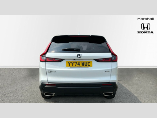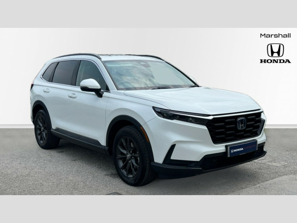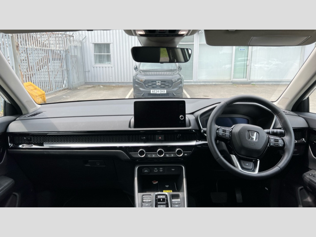 Honda CR-V 2.0 eHEV Elegance 5dr eCVT 10.2" Multi information display, 4 x front and 4 x rear parking sensors, Active lane change assist, Adaptive cruise control with Cornering speed assist, Adjustable speed limiter, Agile handling assist, BLIS (Blind Spot Information System) with Cross Traffic Monitor, Bluetooth hands free telephone connection, Crossing traffic warning front, Drive mode (Econ, Normal, Snow, Sport), Driver attention monitoring system, E-call, eCall emergency call system, Electric power steering, Emergency stop signalling system, Forward collision warning, Handfree power tailgate with kick sensor and walk away close, HEV mode, Honda 360 sensing, Honda CONNECT with Navigation 9" touchscreen, AM/FM/DAB, Apple Carplay and Android Auto, live traffic info, Intelligent speed limiter, Lane change collision mitigation, Lane departure warning system, Lane keep assist system, Lane watch, Lead car departure notification system, Low speed following, Power meter, Rear view camera, Road departure mitigation, Traffic jam assist, Traffic sign recognition, Wireless apple carplay, Wireless charging, Amplitude reactive damper, Vehicle stability assist, 1X USB (A/2.5A) and 1x Charger (C/3A) on Front, 8 Speakers, DAB+ radio, Dashboard centre speaker, Front tweeters, Premium audio speakers, Rear USB 2x Charger (C/3A), Steering wheel mounted controls, Auto dimming rear view mirror, Auto headlights, Auto wipers, Body colour bumpers, Body colour door handles, Body colour plus material colour roof spoiler, Body coloured shark fin antenna, Chrome + black paint grille, Electrically adjustable and heated door mirrors, Electrically folding door mirrors, Exhaust pipe finisher, Exterior mirror tilt for reverse, Front and rear electric windows, Front LED Indicator lights, Front turn type led with sequential, Headlight auto on/off timer, High beam assist, LED 3rd brake light, LED daytime running lights, LED front fog lights, LED Headlights, LED rear lights, Low gloss black window garnish, Panoramic opening glass sunroof, Privacy glass, Rain sensor, Rear side wing doors, Rear wiper, Roof rails, Trailer stability assist, Welcome home function, 3 seat bench in 2nd row, 4 way driver lumbar support, 4 way electrically adjustable passenger seat without height adjust, 60/40 split folding rear seat, 8 way electrically adjustable drivers seat, Accessory sockets in Front & Trunk, Air conditioning - Rear vent, Ambient light in roof, Cargo net hooks, Courtesy lights, Driver and front passenger seat armrests, Driver/passenger front seatback pockets, Driver/passenger sunvisors and vanity mirrors, Driver/passenger sunvisors with illuminated vanity mirrors, Dual zone automatic climate control, Film hairline interior panels, Footwell ambient interior light front and rear, Front and rear ambient light (door handle&door line) and front cup holder, Front centre armrest, Front map lights, Genuine leather steering wheel, Heated front seats, Heated steering wheel, Hybrid emblem, I-Size ISO Fix Points, Instrument panel with garnish wood film, Leather upholstery, Light roof lining, Luggage floor box, Meter illumination, Normal pedals, Platinum chrome interior door handles, Rear centre armrest, Rear headrests, Rear reading lights, Reclining rear seats, Single front passenger seat, Sunglasses holder, Synthetic headrest, Tilt/telescopic adjustable steering wheel, Tonneau cover, Trunk light, Exclusive styling pack - CR-V, 5 x 3 point seatbelts, ABS/EBD, Anti-whiplash front headrests, Brake assist function, Collision mitigation braking system, Deflation detection system, Driver airbag, Driver SRS airbag (single stage inflation), Electronic parking brake with auto hold, Front and rear collision mitigation throttle control, Front and rear curtain airbags, Front and rear seat belts with emergency locking retractor (ELR), Front centre airbag, Front passenger airbag, Front side airbags, Hill descent control, Hill start assist, Knee airbags (DR) and (AS), Low speed brake system, Manual child lock in rear doors, Paddle deceleration control, Passenger SRS airbag with cut off switch, Rear side airbags, Honda super locks, Immobiliser, Mirrors and windows key fob operation, Remote central locking with 2 key fobs, Security alarm, Selectable door unlock, Smart entry + Smart start, Tilt sensors, Ultrasonic security sensor, Flat tyre solution temper tyre/repair kit