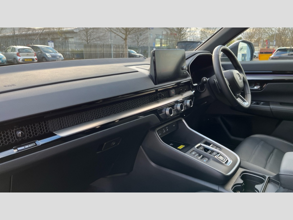 Honda CR-V 2.0 ePHEV Advance Tech 5dr eCVT 10.2" Multi information display, 4 x front 4 x rear 4 x side parking sensors, Active lane change assist, Adaptive cruise control, Adjustable speed limiter, Agile handling assist, BLIS (Blind Spot Information System) with Cross Traffic Monitor, Bluetooth hands free telephone connection, Crossing traffic warning front, Drive Mode (EV,Econ,Sport,Normal,Snow,Tow), Driver attention monitoring system, E-call, Electric power steering, Emergency stop signalling system, Forward collision warning, Handfree power tailgate with kick sensor and walk away close, Head up Display, HEV mode, Honda 360 sensing, Honda CONNECT navigation with My Honda+ 9" touchscreen, AM/FM/DAB, Apple Carplay and Android Auto, live traffic info, Honda parking pilot, Intelligent speed limiter, Lane change collision mitigation, Lane departure warning system, Lane keep assist system, Lane watch, Lead car departure notification system, Low speed following, Power meter, Road departure mitigation, Traffic jam assist, Traffic sign recognition, Unintented acceleration mitigation, Wireless apple carplay, Wireless charging, Adaptive performance damper, Vehicle stability assist, 12 speakers, 1X USB (A/2.5A) and 1x Charger (C/3A) on Front, Bose premium sound system, Centre speakers, DAB+ radio, Dashboard centre speaker, Front tweeters, Rear USB 2x Charger (C/3A), Steering wheel mounted controls, Subwoofer, Active cornering lights, Adaptive driving beam, Auto dimming rear view mirror, Auto headlight adjuster, Auto headlights, Auto wipers, Black door mirror caps, Black paint + exculsive grille, Black Shark-fin antenna, Body colour bumpers, Body colour door handles, Body colour plus black colour roof spoiler, Electrically adjustable and heated door mirrors, Electrically folding door mirrors, Exhaust pipe finisher, Exterior mirror tilt for reverse, Front and rear electric windows, Front LED Indicator lights, Front turn type led with sequential, Headlight auto on/off timer, High gloss black window garnish, LED 3rd brake light, LED daytime running lights, LED front fog lights, LED Headlights, LED rear lights, Multi view camera system in door mirrors, Panoramic opening glass sunroof, Privacy glass, Rain sensor, Rear side wing doors, Rear wiper, Roof rails, Trailer stability assist, Welcome home function, 3 seat bench in 2nd row, 4 way driver lumbar support, 4 way electrically adjustable passenger seat without height adjust, 60/40 split folding rear seat, 8 way electrically adjustable drivers seat + mirror memory, Accessory sockets in Front & Trunk, Air conditioning - Rear vent, Ambient light in roof, Cargo net hooks, Courtesy lights, Dark roof lining, Driver and front passenger seat armrests, Driver/passenger front seatback pockets, Driver/passenger sunvisors and vanity mirrors, Driver/passenger sunvisors with illuminated vanity mirrors, Dual zone automatic climate control, Film layered honeycomb metal interior panels, Footwell ambient interior light for driver and passenger, Front and rear ambient light (door handle&door line) and front cup holder, Front centre armrest, Front map lights, Front ventilated seats, Heated front seats, Heated rear seats, Heated steering wheel, Hybrid emblem, I-Size ISO Fix Points, Instrument panel with garnish wood film, Leather steering wheel, Leather upholstery, Luggage floor box, Meter illumination, Platinum chrome interior door handles, Rear centre armrest, Rear headrests, Rear reading lights, Reclining rear seats, Single front passenger seat, Sport pedals, Sunglasses holder with mirror, Synthetic headrest, Tilt/telescopic adjustable steering wheel, Tonneau cover, Trunk light, Exclusive styling with sport paint pack - CR-V, 5 x 3 point seatbelts, ABS/EBD, Anti-whiplash front headrests, Brake assist function, Collision mitigation braking system, Deflation detection system, Driver airbag, Driver SRS airbag (single stage inflation), Electronic parking brake with auto hold, Front and rear collision mitigation throttle control, Front and rear curtain airbags, Front and rear seat belts with emergency locking retractor (ELR), Front centre airbag, Front passenger airbag, Front side airbags, Hill descent control, Hill start assist, Knee airbags (DR) and (AS), Low speed brake system, Manual child lock in rear doors, Paddle deceleration control, Passenger SRS airbag with cut off switch, Rear side airbags, Honda super locks, Immobiliser, Mirrors and windows key fob operation, Remote central locking with 2 key fobs, Security alarm, Selectable door unlock, Smart entry + Smart start, Tilt sensors, Ultrasonic security sensor, Flat tyre solution temper tyre/repair kit