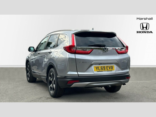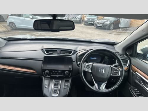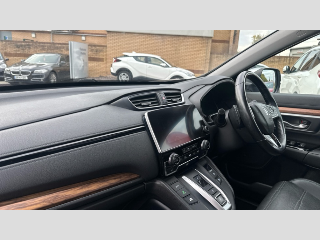 Honda CR-V 2.0 i-MMD Hybrid EX 5dr eCVT Adaptive cruise control, Agile handling assist, BLIS (Blind Spot Information System) with dual power heated blind spot mirrors, Bluetooth hands free telephone connection, Economy mode, Electric power steering, Emergency stop signalling system, Forward collision warning, Front and rear parking sensors, Hands free tailgate, Head up Display, Honda CONNECT with GARMIN Navigation + 7" touchscreen, DAB radio, Apple CarPlay, Android Auto, Aha app integration and internet browsing, Intelligent multi info display, Lane departure warning system, Lane keep assist system, Low speed following, Rear view camera, Road departure mitigation, Speed limiter, Traffic sign recognition, Vehicle stability assist, 2 USB sockets in rear, 2x USB sockets in front, 8 Speakers, DAB Digital radio, Steering wheel mounted controls, Subwoofer, Aspheric door mirrors, Auto dimming rear view mirror, Automatic headlights with dusk sensor, Body colour bumpers, Body colour door handles, Cornering light, Door mirrors tilt when reversing, Electric front windows/one touch facility, Electric rear windows + one touch facility, Electrically adjustable and heated door mirrors, Electrically retractable door mirrors, Front windscreen de-icer, High beam assist, LED daytime running lights, LED front fog lights, LED Headlights, LED rear lights, Panoramic opening glass sunroof, Rain sensor, Rear privacy glass, Rear wiper, Roof rails, Shark fin roof aerial, Welcome home function, 60/40 split folding rear seat, 8 way electrically adjustable drivers seat + mirror memory, Accessory sockets, Ambient interior lighting, Ambient light in roof, AWD emblem rear, Cargo hooks, Courtesy lights, Driver's electric adjustable lumbar support, Driver/passenger front seatback pockets, Driver/passenger sunvisors with illuminated vanity mirrors, Dual zone automatic climate control, Electric lumbar adjustment on passenger's seat, Footwell ambient lighting, Front centre armrest, Front map lights, Front passenger seat height adjust, Heated front seats, Heated rear seats, Heated steering wheel, Hybrid emblem, Illuminated glovebox, Instrument panel with garnish wood film, Isofix child seat preparation, Leather steering wheel, Leather upholstery, Paddle shift controls, Rear air vents, Rear centre armrest, Rear headrests, Rear reading lights, Silver interior door handles, Sunglasses holder with mirror, Tilt/telescopic adjustable steering wheel, Tonneau cover, Trunk light, 5 x 3 point seatbelts, ABS/EBD, Anti-whiplash front headrests, Brake assist function, Collision mitigation braking system, Deflation detection system, Driver airbag, Electronic parking brake with auto hold, Front and rear curtain airbags, Front side airbags, Hill start assist, Passenger airbag deactivate switch, Honda super locks, Immobiliser, Remote keyless entry, Security alarm, Ultrasonic sensor and tilt sensor, Tyre repair kit