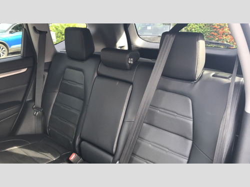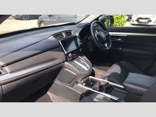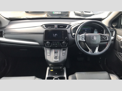 Honda CR-V 2.0 i-MMD Hybrid EX 5dr eCVT Adaptive cruise control, Agile handling assist, BLIS (Blind Spot Information System) with dual power heated blind spot mirrors, Bluetooth hands free telephone connection, E-call, Economy mode, Electric power steering, Emergency stop signalling system, Forward collision warning, Front parking sensors, Hands free tailgate, Head up Display, Honda CONNECT with GARMIN Navigation + 7" touchscreen, DAB radio, Apple CarPlay, Android Auto, Aha app integration and internet browsing, Intelligent multi info display, Lane departure warning system, Lane keep assist system, Low speed following, Rear parking sensors, Rear view camera, Road departure mitigation, Speed limiter, Traffic sign recognition, Wireless charging, Vehicle stability assist, 2 USB sockets in rear, 2x USB sockets in front, 9 speakers, DAB Digital radio, Dashboard centre speaker, Front tweeters, Steering wheel mounted controls, Subwoofer, Aspheric door mirrors, Auto dimming rear view mirror, Automatic headlights with dusk sensor, Body colour bumpers, Body colour door handles, Cornering light, Door mirrors tilt when reversing, Electric front windows/one touch facility, Electric rear windows + one touch facility, Electrically adjustable and heated door mirrors, Electrically retractable door mirrors, Front windscreen de-icer, High beam assist, LED daytime running lights, LED front fog lights, LED Headlights, LED rear lights, Panoramic opening glass sunroof, Rain sensor, Rear privacy glass, Rear side wing doors, Rear wiper, Roof rails, Shark fin roof aerial, Third brake light, Welcome home function, 3 seat bench in 2nd row, 60/40 split folding rear seat, 8 way electrically adjustable drivers seat + mirror memory, Accessory sockets, Ambient interior lighting, Ambient light in roof, AWD emblem rear, Cargo hooks, Courtesy lights, Driver's electric adjustable lumbar support, Driver/passenger front seatback pockets, Driver/passenger sunvisors with illuminated vanity mirrors, Dual zone automatic climate control, Electric lumbar adjustment on passenger's seat, Front centre armrest, Front map lights, Front passenger seat height adjust, Heated front seats, Heated rear seats, Heated steering wheel, Hybrid emblem, Illuminated glovebox, Instrument panel with garnish wood film, Isofix child seat preparation, Leather steering wheel, Leather upholstery, Paddle shift controls, Rear air vents, Rear centre armrest, Rear headrests, Rear reading lights, Silver interior door handles, Single front passenger seat, Sunglasses holder with mirror, Tilt/telescopic adjustable steering wheel, Tonneau cover, Trunk light, 5 x 3 point seatbelts, ABS/EBD, Anti-whiplash front headrests, Brake assist function, Collision mitigation braking system, Deflation detection system, Driver airbag, Electronic parking brake with auto hold, Front and rear curtain airbags, Front and rear seat belts with emergency locking retractor (ELR), Front side airbags, Hill start assist, Manual child lock in rear doors, Passenger airbag deactivate switch, Honda super locks, Immobiliser, Security alarm, Smart entry + Smart start, Ultrasonic security sensor, Tyre repair kit